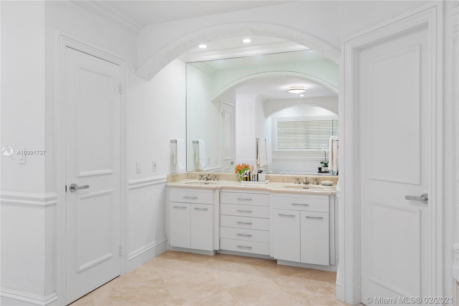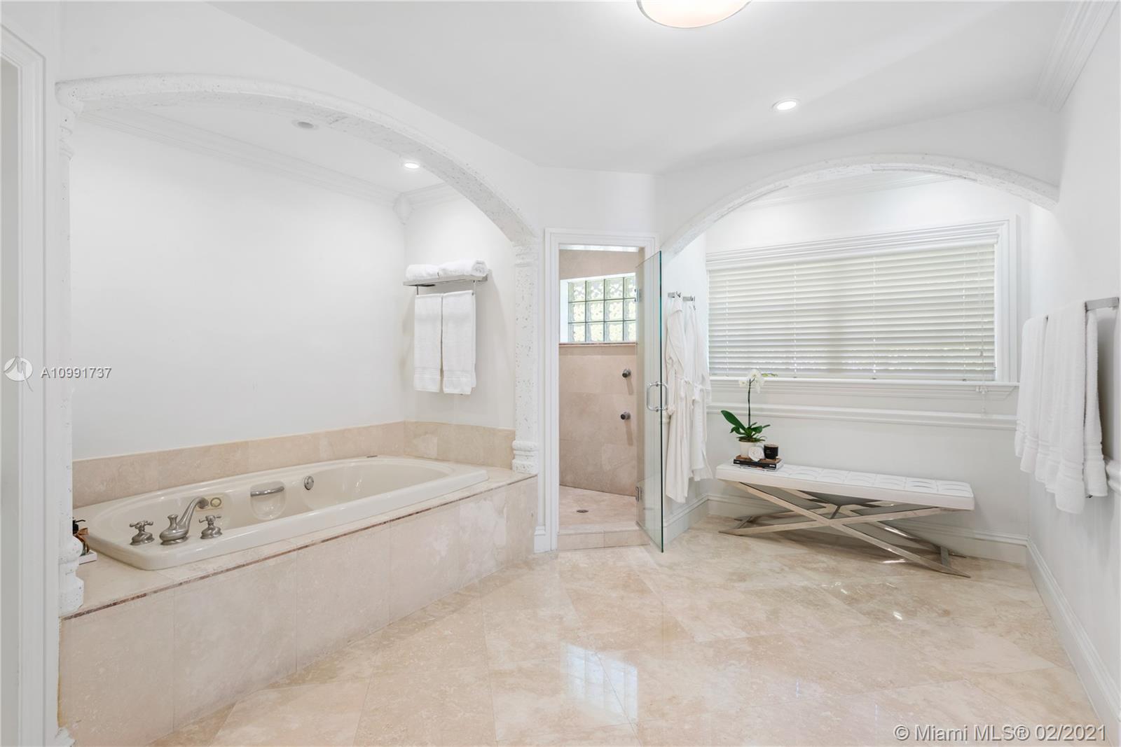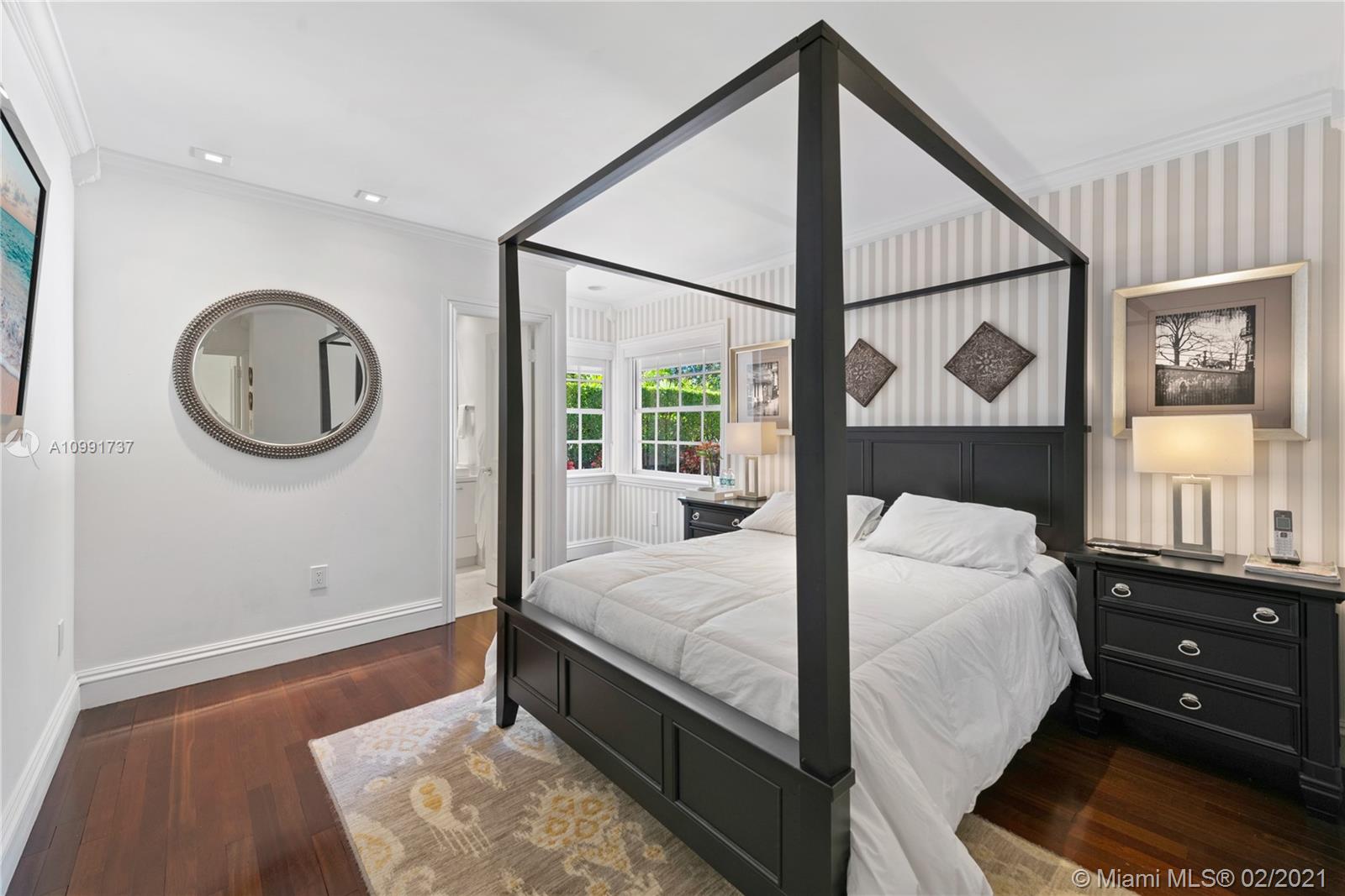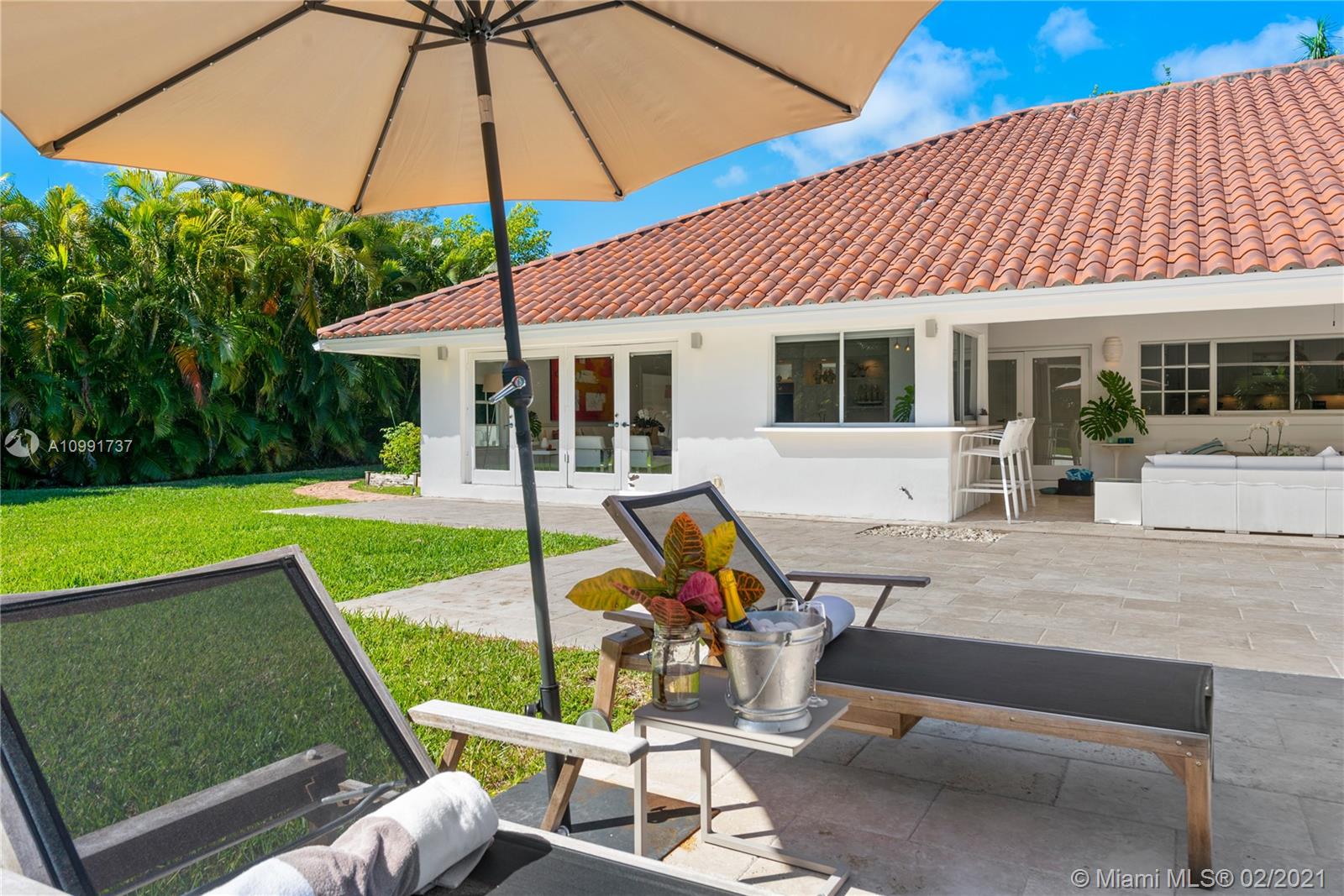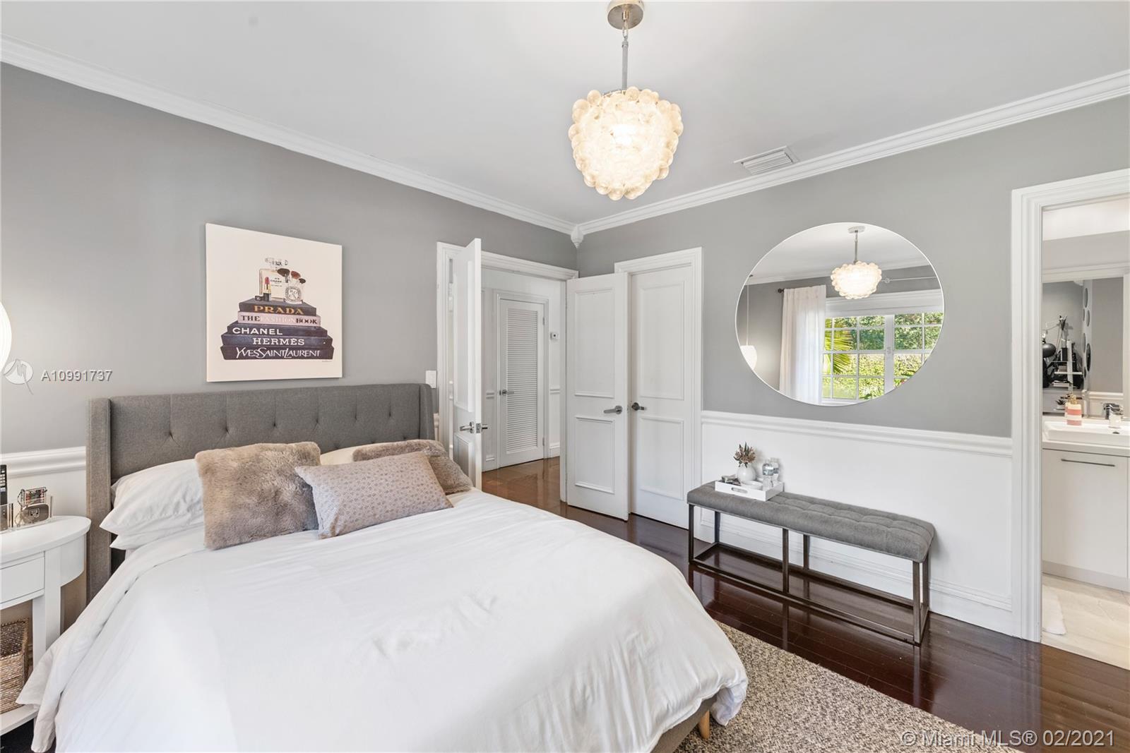 Tucked off historic Old Cutler Road, a tree-lined prestigious street in Coral Gables, a veritable paradise awaits. Here, sunlight dances across each room, lush greenery invigorates, and life unveils its most beautiful moments. Enter your gated drive with interlocking brickwork, yielding a spacious, private acre lot dotted with palms. An expansive foyer welcomes, while beyond, the one-story open plan offers endless room to play. Enjoy walk-through access to your immense backyard and inground pool, where you can cool off and sip champagne poolside. Living spaces reveal richly veined marble flooring in eye-catching contrast to bedrooms lined in lustrous dark hardwood. Decorative molding elevates crisp white walls, and drop lighting becomes a work of art in iridescent tones. Welcome home.