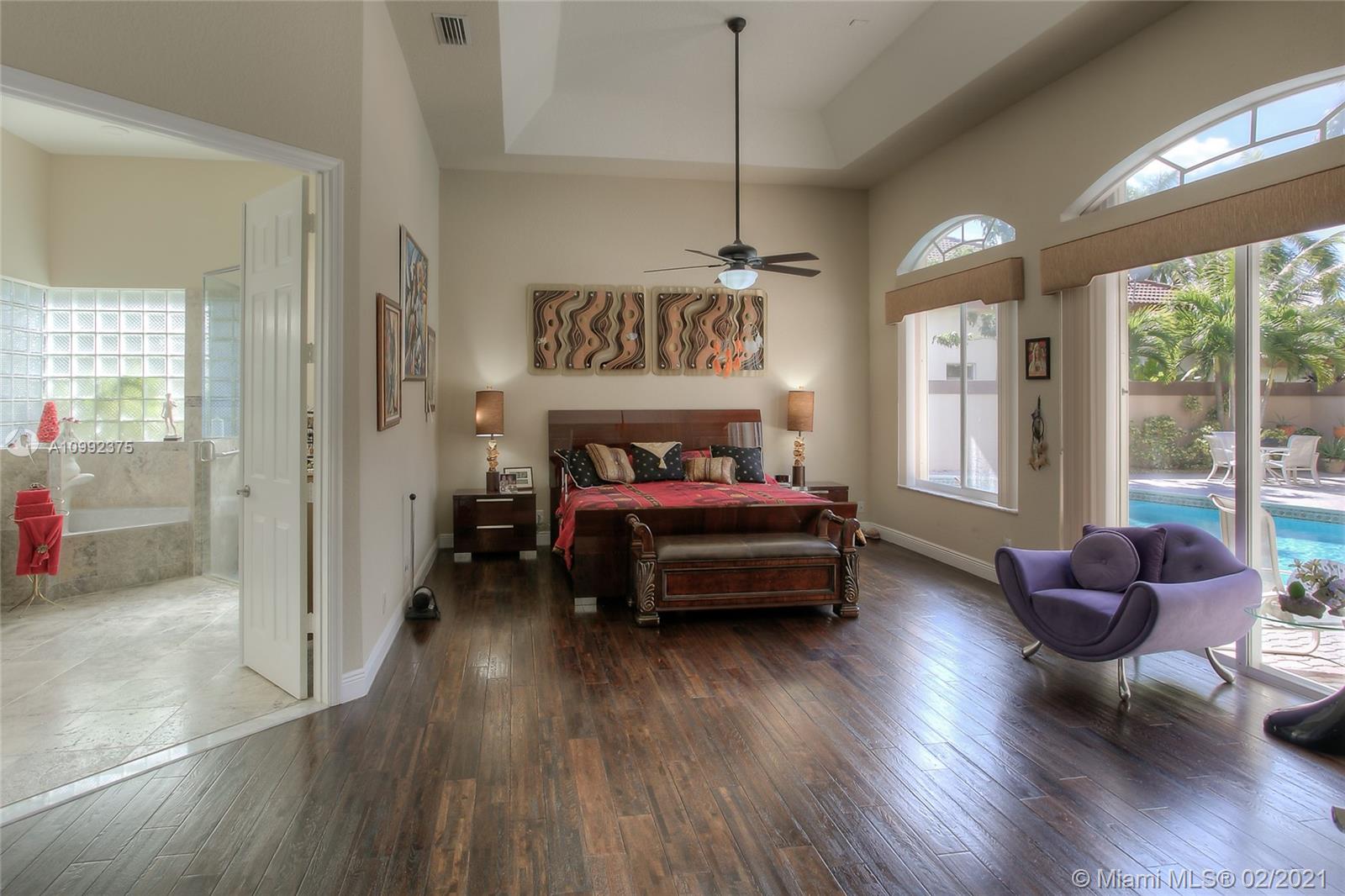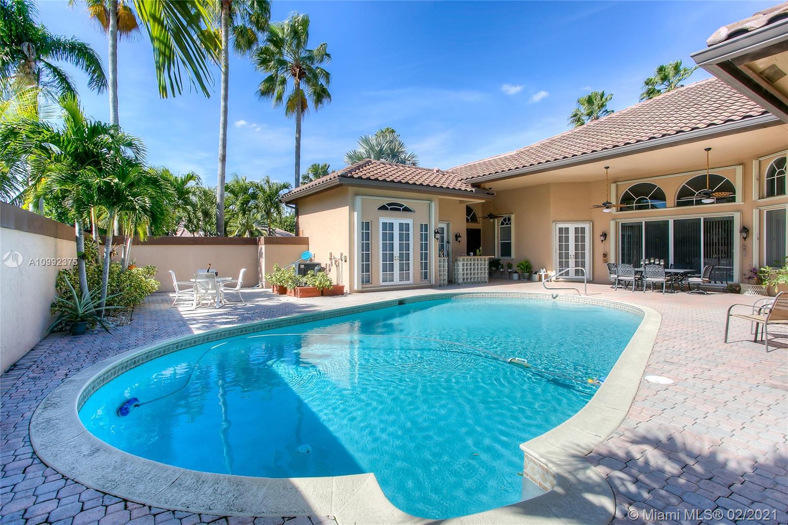 " Look No Further " This Extremely Beautiful Corner Lot Home is a Dream come True and includes: 4 Bedrooms and 4 Bathrooms as follow: Main House is a 3 Bedrooms and 3 Bathrooms with a separate Guest House of 1 Bedroom and 1 Bathroom. Spectacular Open Floor Plan, Split Bedrooms, Master Sitting Suite, Junior Master Suite, Double High Ceilings, Remodeled Kitchen, Laundry Room, An Amazing Courtyard and Pool, Hug by this Home makes it a Perfect Place for Family Reunion, Meditation, Creativity or Business Gathering. An over size 3 Car Garage enough to park your Golf Cart. And Don't forget the Breath Taken Surrounding Golf Course and Lagoons. Call Today for a Private Showing.