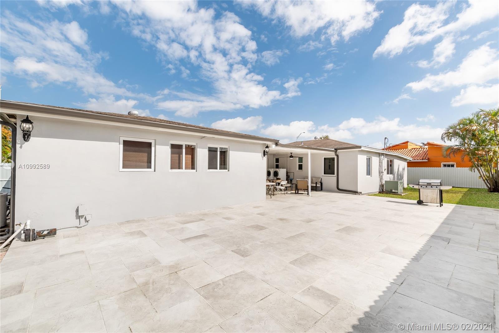 Beautiful corner single family home, located in east Hialeah, fully renovated with porcelain floors in leaving area and laminated floors in all rooms, updated kitchen with white Quartz Counter Top and wine cooler, Florida Room with high ceilings, Impact windows and doors through out the house, big back yard with terrace with enough space for a boat and a pool. White aluminum fence and renovated circular drive way. A must see will not last!.