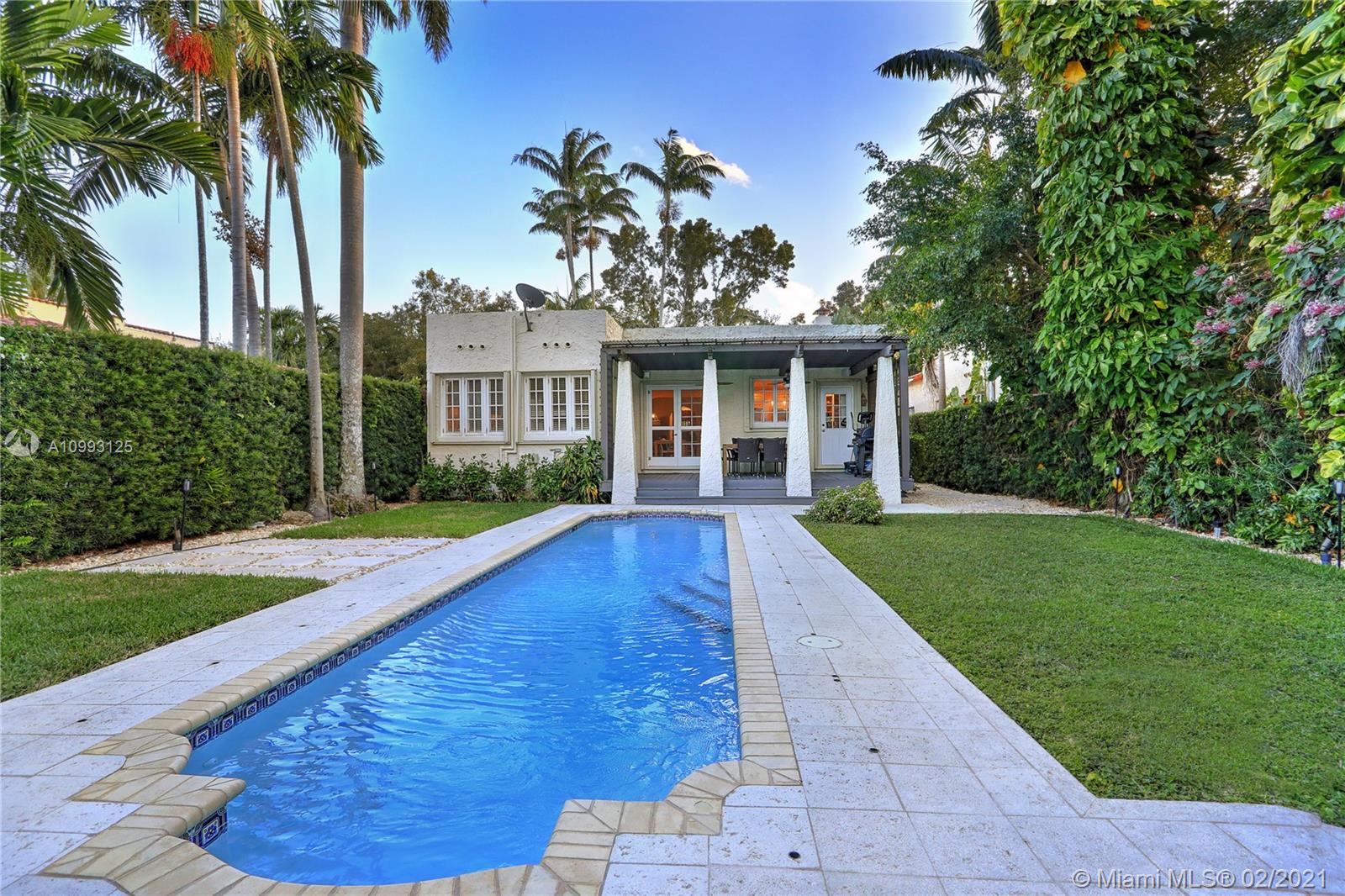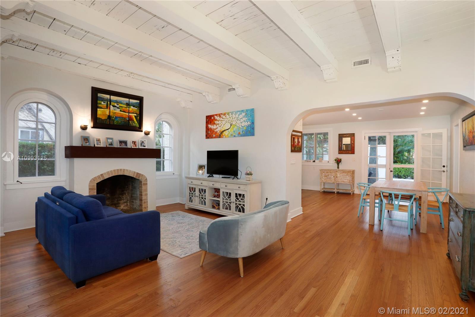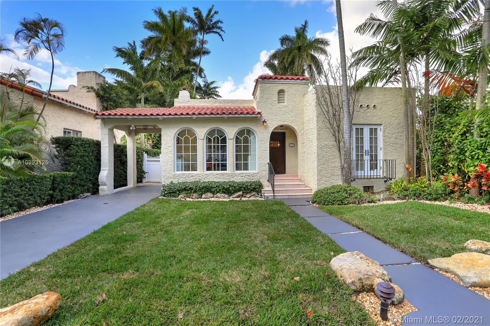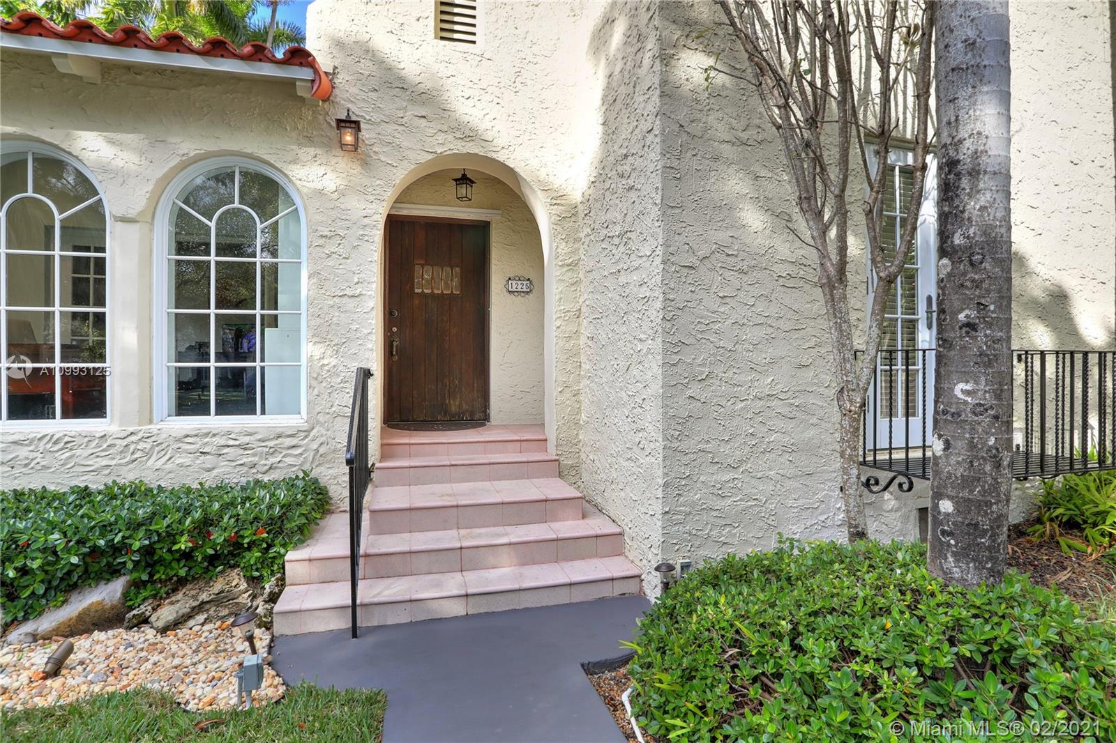This absolutely charming Old Spanish home is perfectly updated and sits on a deep, private lot with lap pool and gorgeous palm trees. The main home features a new spa-like master bath and walk in closet (what was a 3rd bedroom), large second bedroom & bath, new kitchen w/ lovely details & new appliances that opens to dining and living rooms, functioning fireplace, Florida room perfect for your home office flooding the house with natural light, newly refinished wood floors, new a/c, carport, partial impact glass, new roof. The back patio overlooks the yard, newly refinished pool & guest house. This quaint guest house offers a small liv room, bedroom, bath and efficiency kitchen. Just steps from the Granada golf course on prestigious Alhambra Circle with large median.