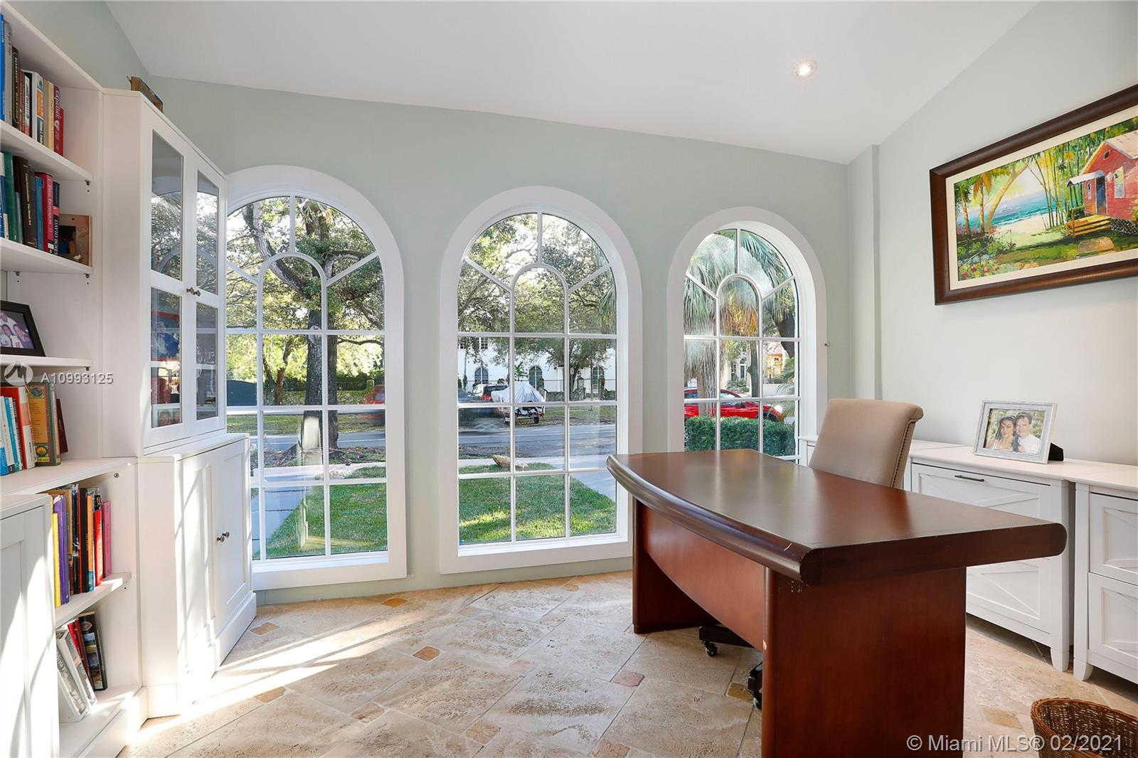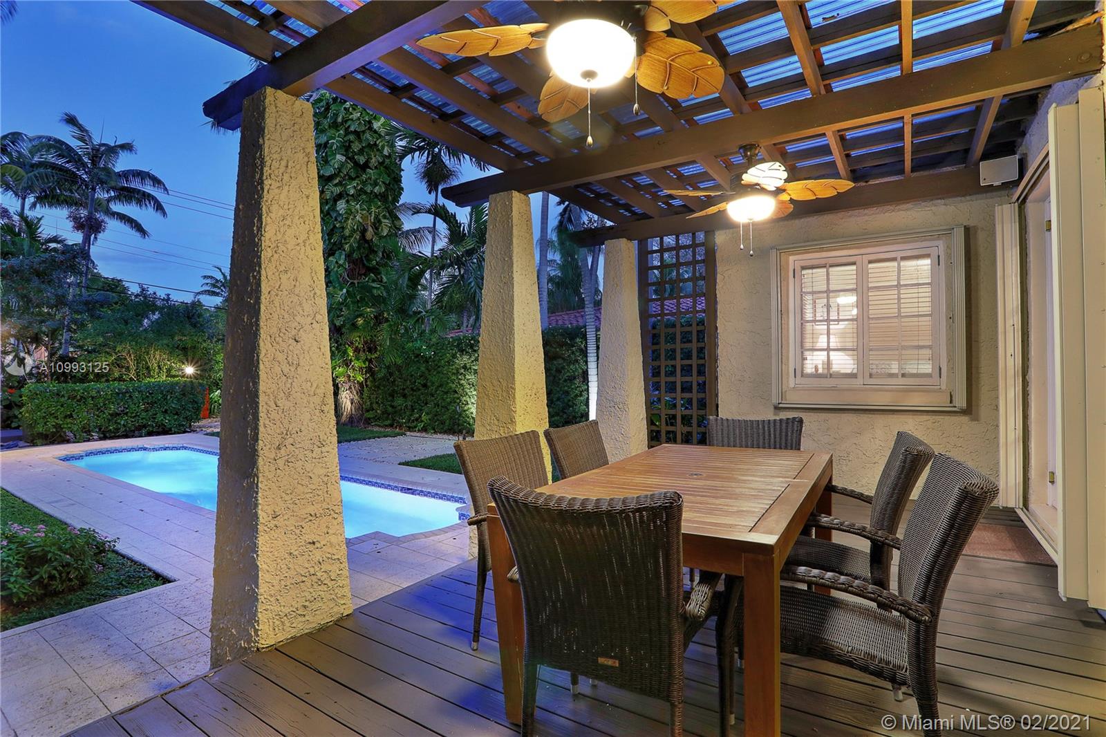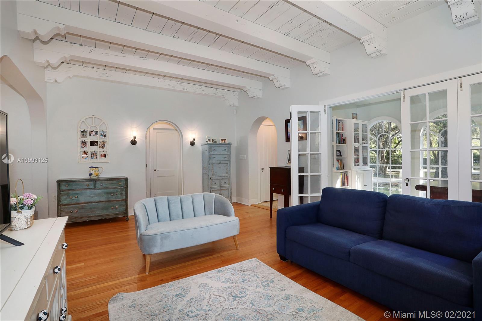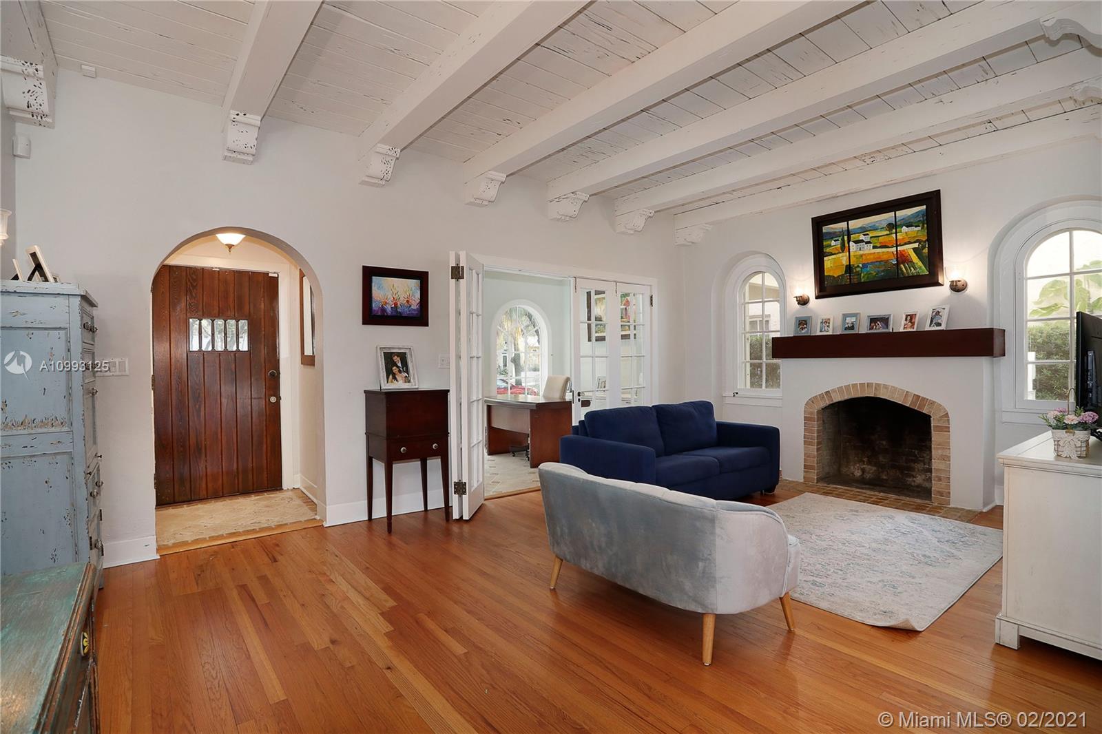 This absolutely charming Old Spanish home is perfectly updated and sits on a deep, private lot with lap pool and gorgeous palm trees. The main home features a new spa-like master bath and walk in closet (what was a 3rd bedroom), large second bedroom & bath, new kitchen w/ lovely details & new appliances that opens to dining and living rooms, functioning fireplace, Florida room perfect for your home office flooding the house with natural light, newly refinished wood floors, new a/c, carport, partial impact glass, new roof. The back patio overlooks the yard, newly refinished pool & guest house. This quaint guest house offers a small liv room, bedroom, bath and efficiency kitchen. Just steps from the Granada golf course on prestigious Alhambra Circle with large median.