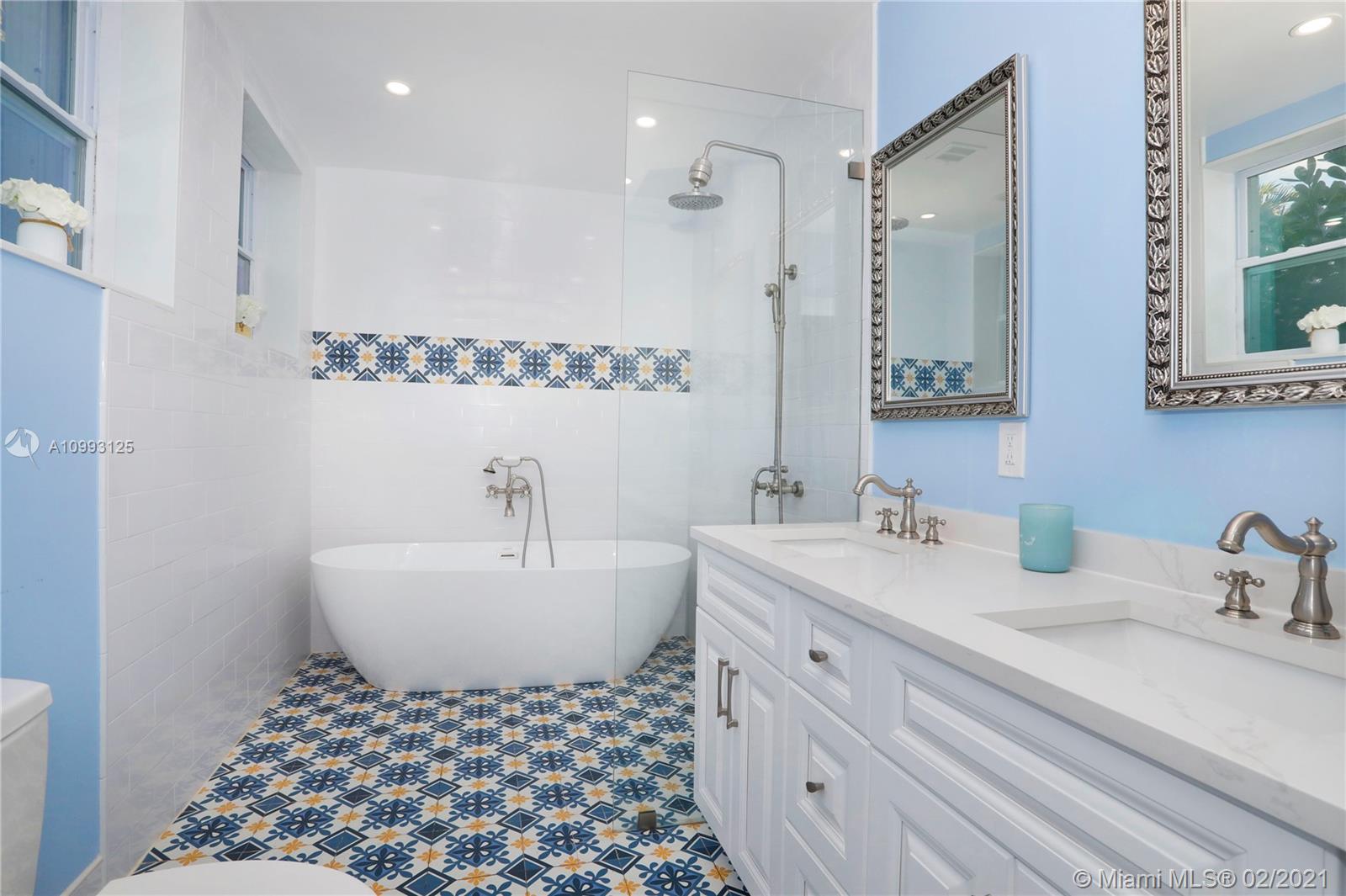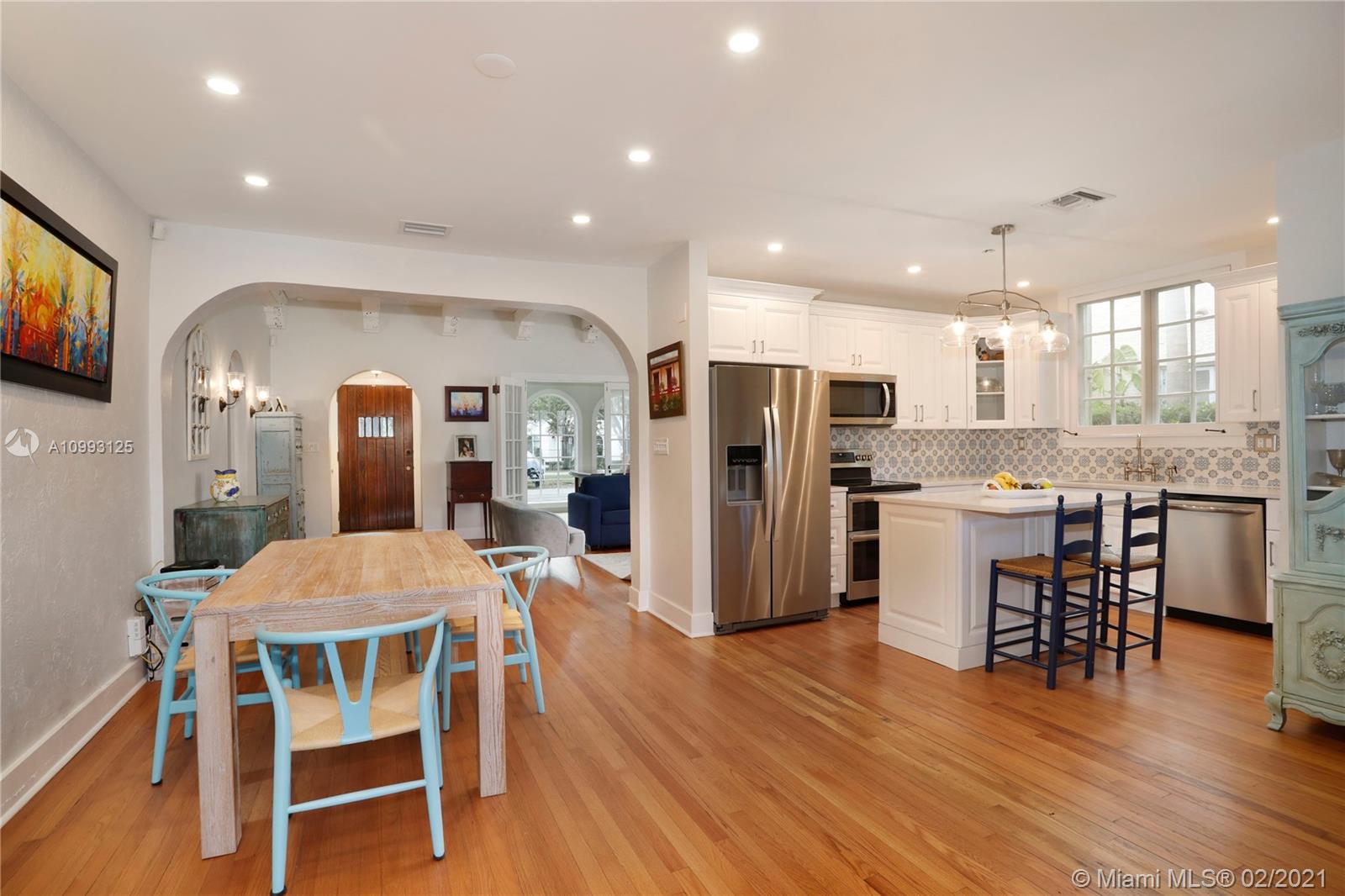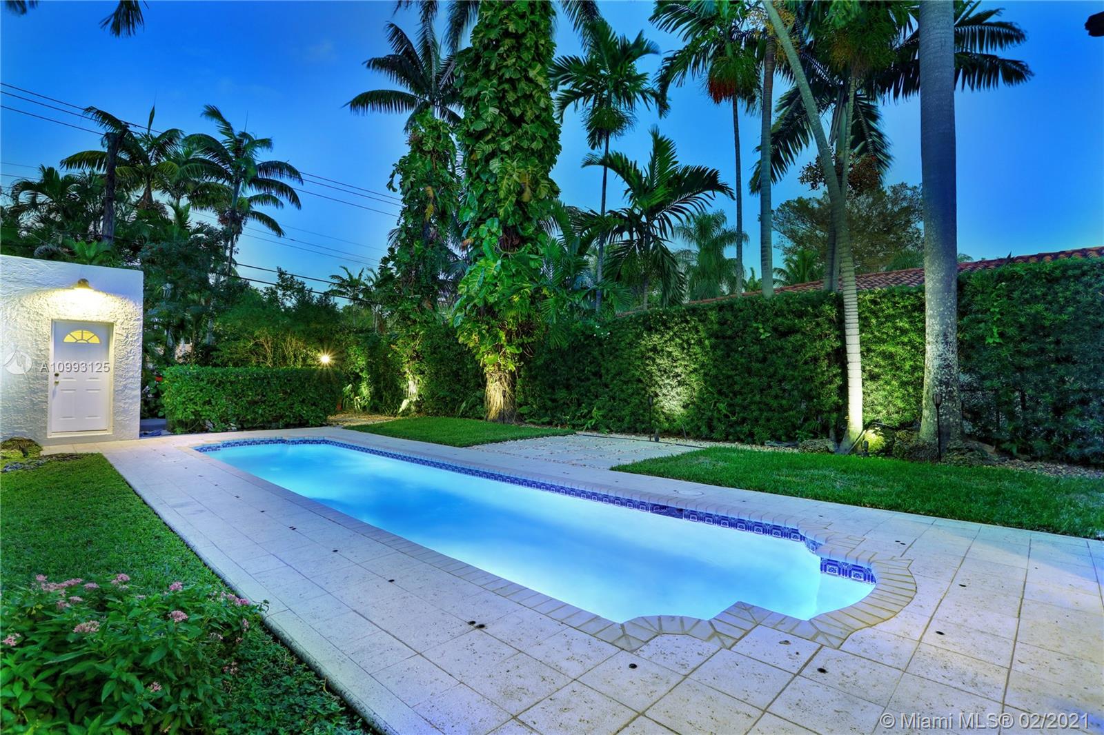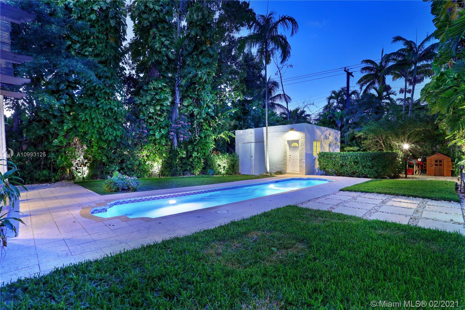 This absolutely charming Old Spanish home is perfectly updated and sits on a deep, private lot with lap pool and gorgeous palm trees. The main home features a new spa-like master bath and walk in closet (what was a 3rd bedroom), large second bedroom & bath, new kitchen w/ lovely details & new appliances that opens to dining and living rooms, functioning fireplace, Florida room perfect for your home office flooding the house with natural light, newly refinished wood floors, new a/c, carport, partial impact glass, new roof. The back patio overlooks the yard, newly refinished pool & guest house. This quaint guest house offers a small liv room, bedroom, bath and efficiency kitchen. Just steps from the Granada golf course on prestigious Alhambra Circle with large median.