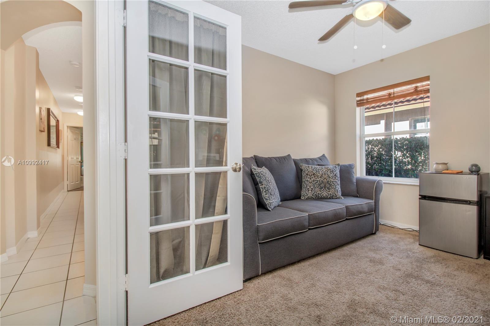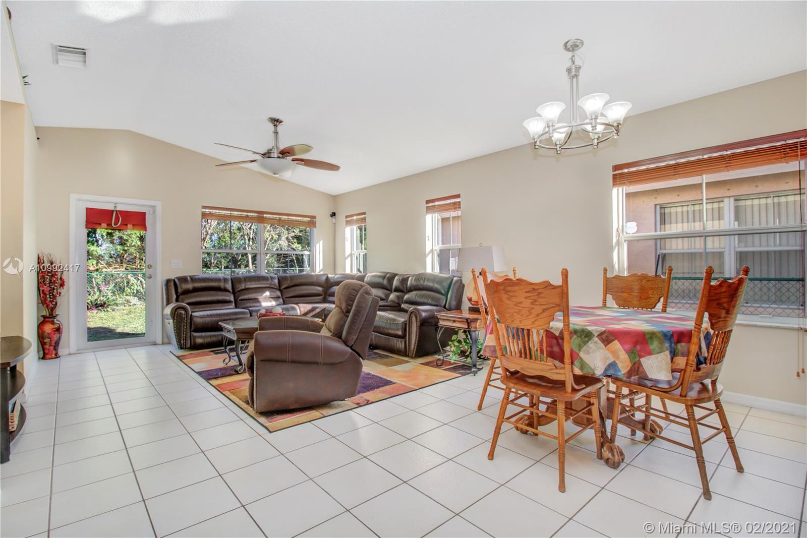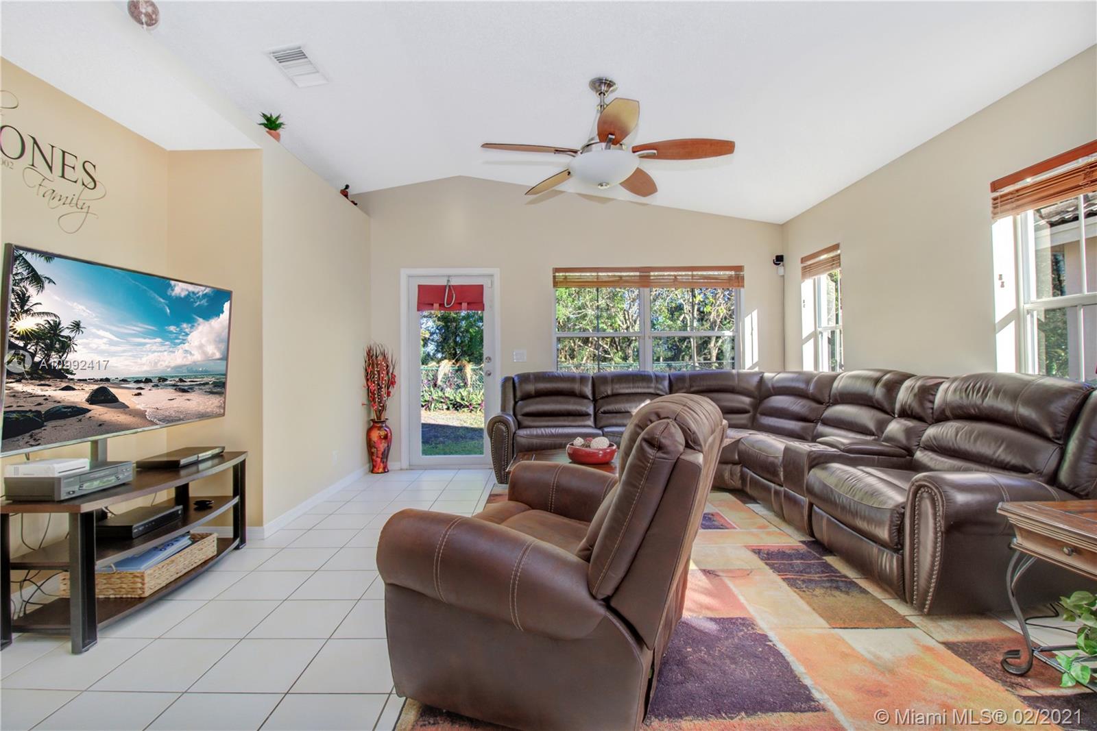Spacious and Bright home in sought after Chapel Trail in Pembroke Pines. The pristine 4-bed/2-bath model features: paved driveway lined by tropical foliage, 2 car garage, utility room, with ceramic tile in the living spaces, and plush carpet in the bedrooms. Upon entering this home you will discover a great open room with lots of natural sunlight. The kitchen space is lined w/ wall-to-wall cabinets, SS appliances, granite countertops, back-splash, and a 3-seater breakfast counter. In close proximity to A+ public schools, public parks, shopping & dining, you have the awesome option to choose your days in town or indoors. Schedule a tour today.