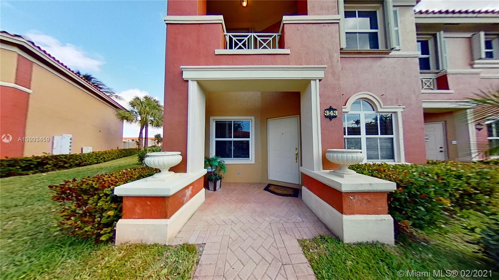 GEORGEOUS TWO STORY TOWNHOUSE IN THE GATE AT DORAL, THIS UNIT CORNER FEAUTURES AN OPEN AND LIGHT FILLED FLOOR PLAN WITH A GREAT LIVING AREA, DINING, 3 BEDROOMS, 2.5 BATHS, OPEN KITCHEN WITH WHITE WOOD CABINETRY AND ELEGANT BLACK GRANITE COUNTERTOP, THE HOME HAS CERAMIC ON FIRST FLOOR, ON SECOND FLOOR AND STAIR HAS CARPET COLOR CHAMPAGNE. ENJOY A BEAUTIFUL LAKEFRONT VIEW FROM YOUR PRIVATE PATIO. THE AC WAS REPLACED IN 2018, IMPACT PATIO DOORS, SECURITY CAMERA SYSTEAM. MANY GUEST PARKING IN FRONT OF THE PROPERTY. THE PROPERTY IS IN AMAZING CONDITIONS, GREAT SCHOOLS DISTRICT LOCATION. " ALL FURNITURE IS FOR SALE SEPARATELY FROM THE PROPERTY."