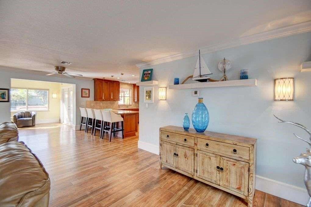 Wake up to your private, sunny, canal front backyard and feel like you’re on vacation in your own tropical paradise, yet close to Mizner, Palm Plaza & the beach! This beautifully redone ocean access home features amazing curb appeal with an inviting travertine courtyard, wide open floorplan, gourmet kitchen , cherry cabinets, granite counters and stainless appliances, and recently renovated baths. Enjoy the outdoors year round with an amazing tiki hut, complete with new travertine bar, amazing grill and high end / high powered remote controlled fan. Enjoy the sunset from the dock, then watch the game under the tiki on the oversized outdoor TV. The 80” of canal has a new batter piled seawall along with a new dock. There is a boat lift as well. All windows, doors and garage door are impact.