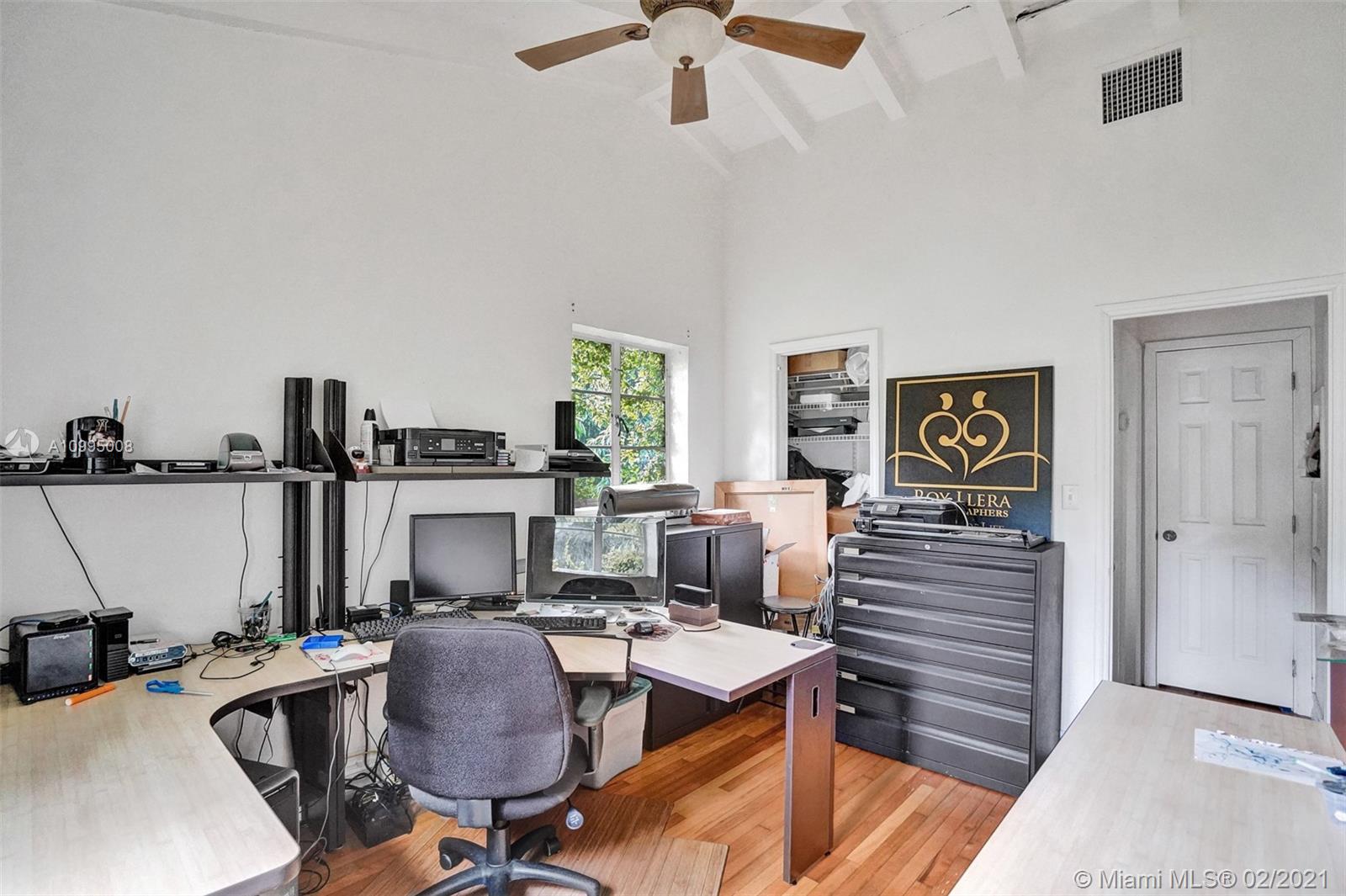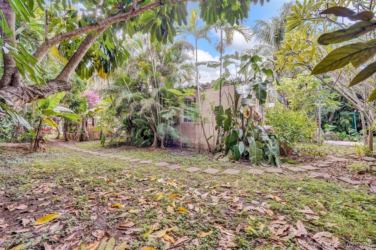 Extraordinary 1930's home with tons of beauty, sitting on an oversized lot of 14,300 sq ft. Located in the very desirable Miami Shores, this home features 3 bedrooms and 2 bathrooms in the main house, and a separate 1/1 living Guest House that is detached, and filled with charm. The main house offers original oak floors, spacious floor plan with a large family room and sun room, volume ceilings, wood burning fireplace, and much more. Very ideal detached guest house, with a 2 car garage on the first floor and a very comfortable 1/1 on the second floor, with an office. Guest house is currently vacant. Fenced yard with an abundance of trees, flowers and butterfly garden. Fruit trees include:avocado, mango, lychee, papaya, mamey and banana trees. Update plumbing and Electrical.