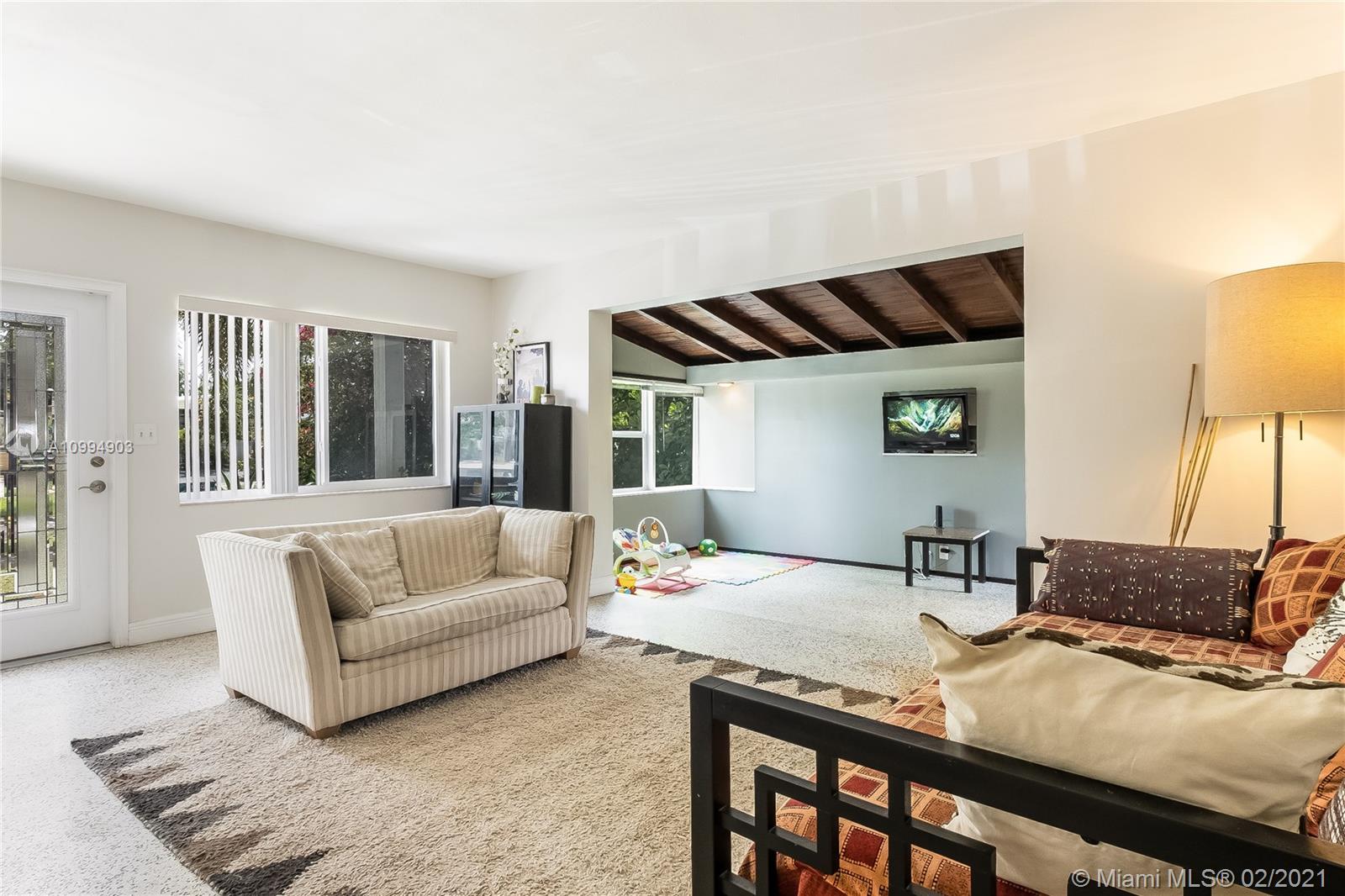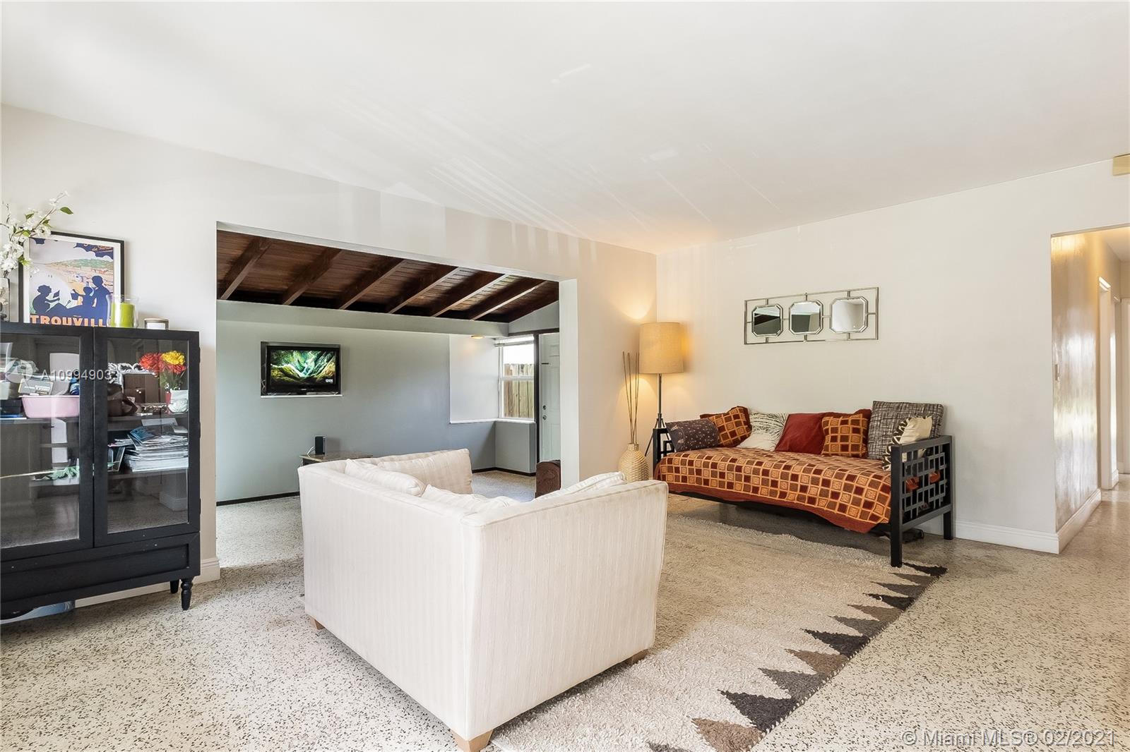 Gorgeous mid-century masterpiece sited on a wide street with bay breezes. 3 bed/2 baths. New Impact Windows & doors. Stunning original terrazzo floors. New kitchen & stainless appliances with abundant cabinetry. Entertain in the formal living room or in the adjacent den with doors to a private side courtyard. A few steps from the Normandy pool & park. Gigantic fenced backyard is a tranquil haven with room for a pool or to build in-law quarters. Covered porte-cochere in the MiMo style. Live the Normandy Isle Village lifestyle with great restaurants, shops and access to the bay, parks & fabulous beaches within steps of your new home. Normandy Isle is the trendy place to live in 2021!