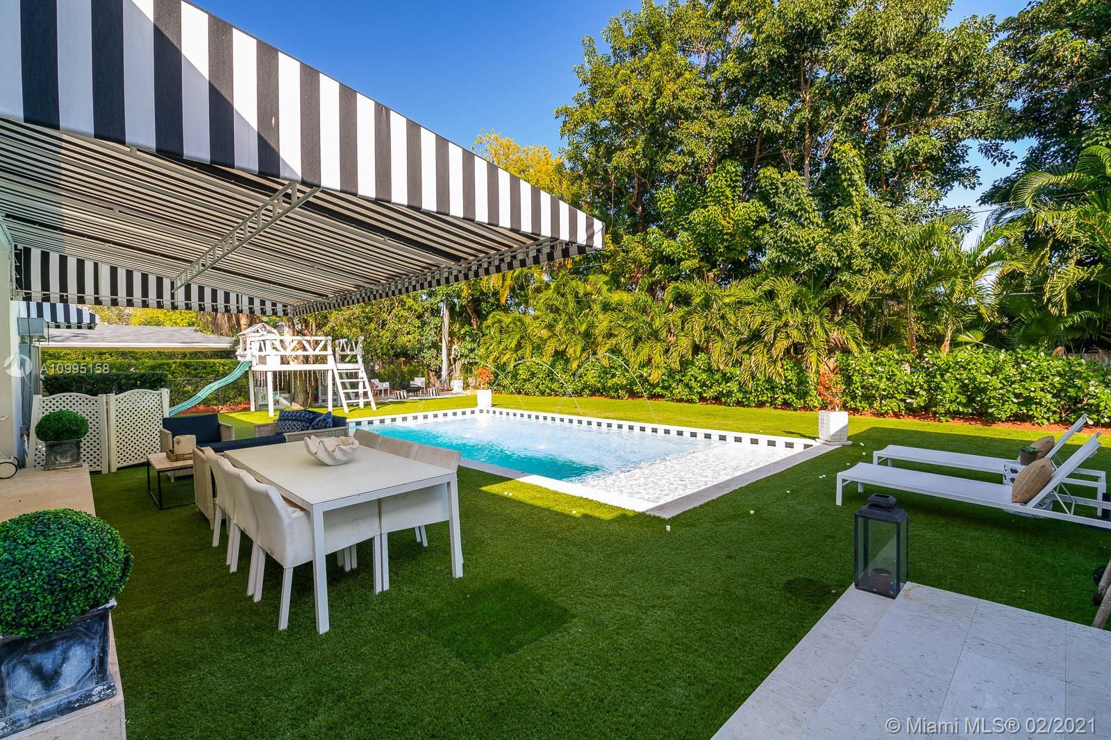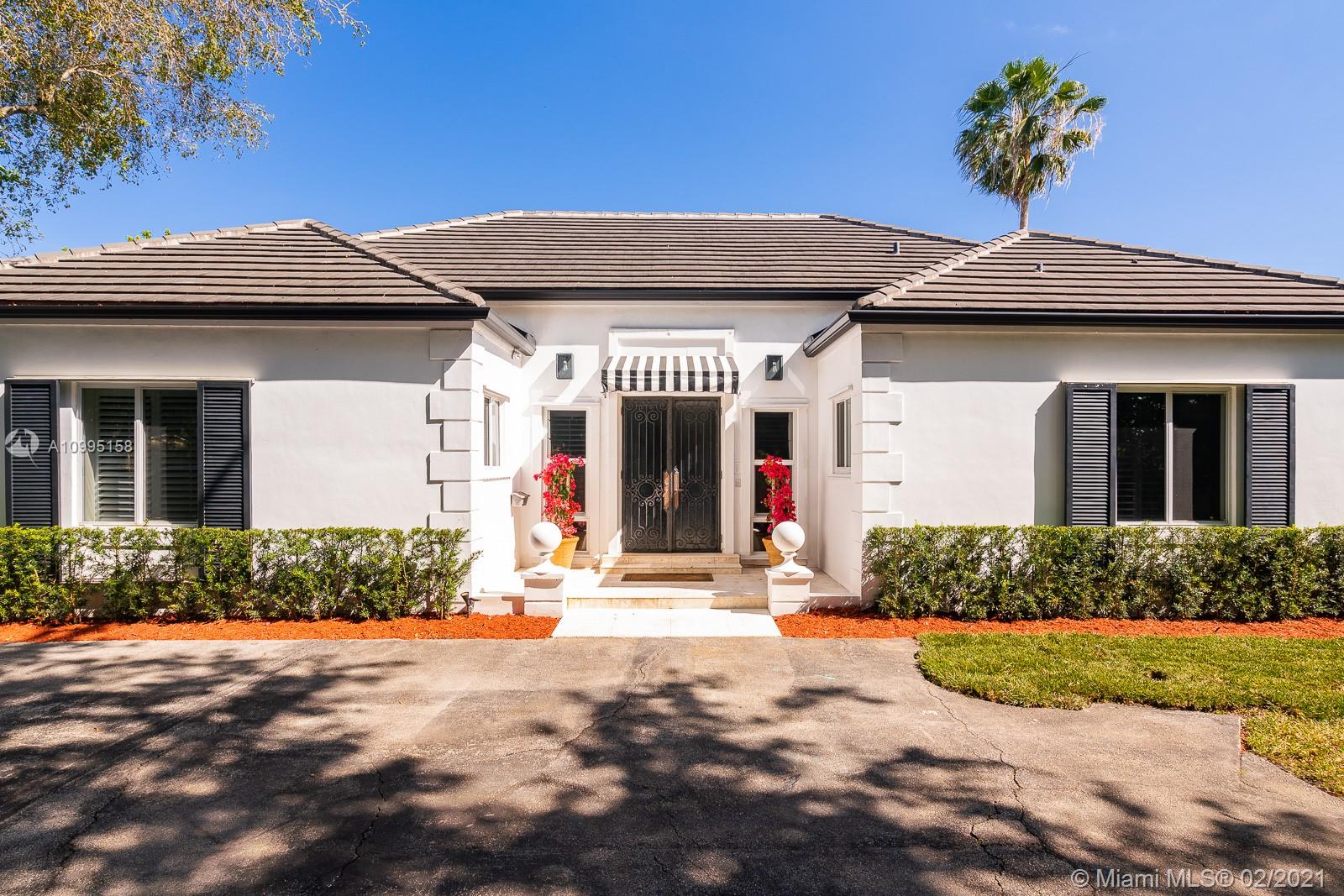 Exceptional, walled & gated one story home on a tranquil Pinecrest street. 5 bedrooms, 3.5 baths. Beautiful foyer entry, original millwork & crown moldings. Living room with stunning original wood flooring. Vaulted ceilings. French doors bring in abundant natural light. Newly remodeled, modern farmhouse kitchen with exposed brick & eat-in breakfast nook. Converted garage to a family/playroom complete w/ built-in wall unit. Amazing master suite with large walk-in closet complete with custom cabinetry. Oversized En-suite master retreat, marble tiles, large tub & separate shower. Turfed backyard full of lounging/entertaining areas, a treehouse, & stunning pool w/beach-style entry. A true Oasis!! Both master suite addition & pool completed in 2016! This home is a Must-See! More photos to come!