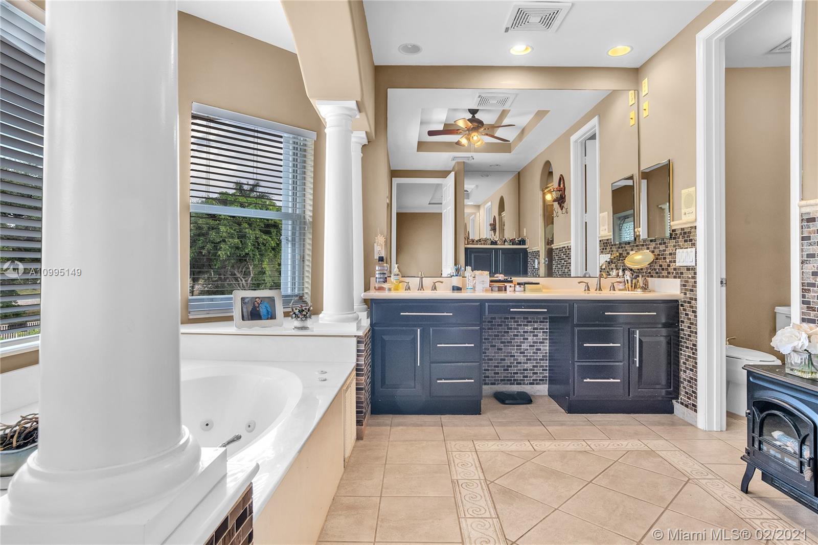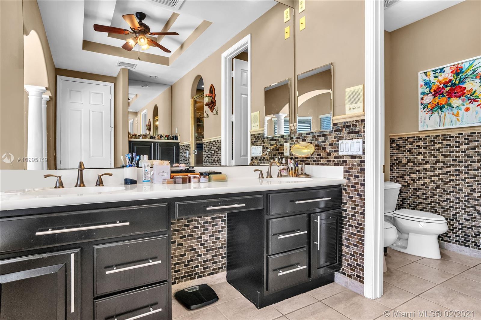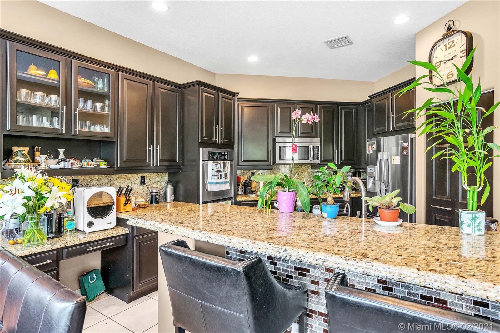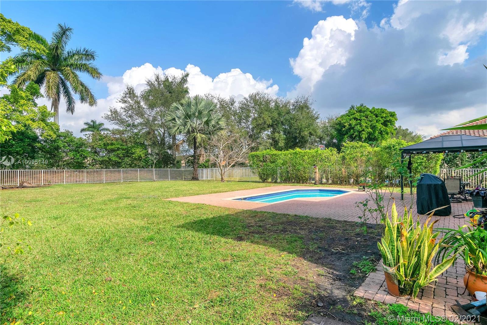 Stunning home@Sunset Lakes exclusive community to the West of Miramar Parkway. Over 12,674 sq ft lot, garden view. Your dream home is located just before a cul de sac, with almost 3,000 sq ft under a/c, 4 beds 3.5 baths, vaulted high ceilings, spiral staircase, ceramic & wood floors, accordion shutters, security system & lighting, 2 master bedrooms (1st floor with private entrance) original master on the 2nd-floor, kitchen with granite countertops, eat-in area, stainless steel appliances, pool + garden. The community offers an awesome clubhouse 18600 Sunrise Ave. Includes room for events, tennis, basketball, gym, pool, playground. $219.00 p/m. No HOA pre-approval needed. By appointment-only/Listing Agent to open door. water heater 2109/AC 2019-2020.