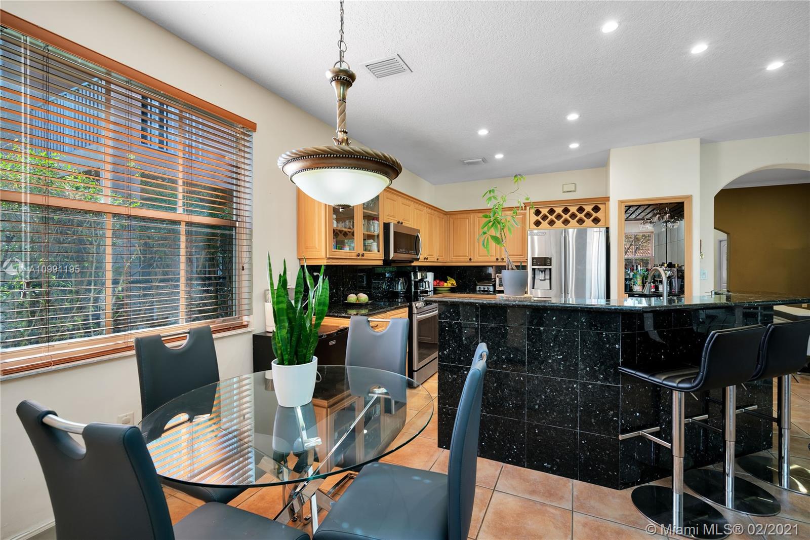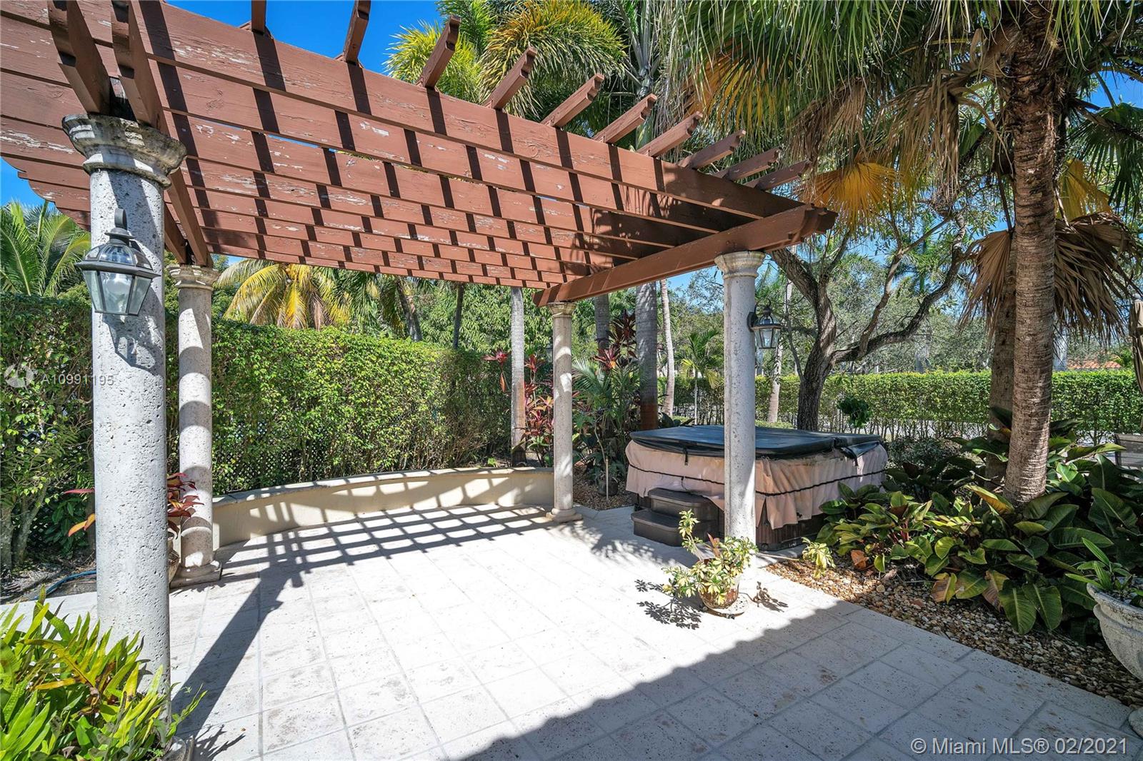 Beautiful 3/2.5 Home on Cul-de-sac. Formal Dining. Master Bathroom Shower Tub with double faucet. Bedroom w/French Door. Walk-in Closet. Open Kitchen with stainless steel appliances, mini-bar w/wine cooler & granite countertops, backsplash, kitchen island. Totally remodeled bathroom w/frameless glass showers enclosure & master bath w/jacuzzi. Crown moldings, elegant light fixtures, tile flooring, surround sound, LED hi-hats thru-out. Garage converted, used as 4th bed, that unit A/C is 2018. One in the main house & another one in the garage. Fenced backyard, stylish patio w/custom pergola & jacuzzi for 6 people, Keystone tile on the terrace, stone veneer on columns/walls & professional landscaping, perfect for entertaining. Great location, close to Shopping Plazas, Restaurants, Highways.