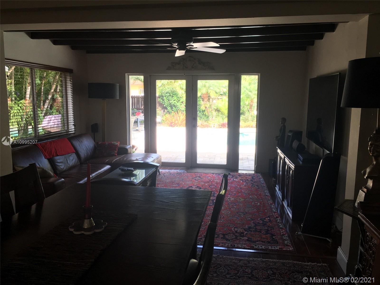 This can be your new dream home! 3 bedroom, 2 bath split plan with huge swimming pool and eat in kitchen. also has impact windows, jacuzzi , wood floors and travertine floors. Doors in family room leads outside into a very lovely & private backyard with swimming pool and mature lush tropical landscaping. Beautiful back porch made out of travertine. Great space for enterteining. The whole house is surrounded by luscious green landscaping. This property is centrally located between Miami and Fort Lauderdale, less than two miles from both Downtown Hollywood and Hollywood Beach. Close to tons of dining and shopping options at both Gulfstream Park and Aventura Mall.