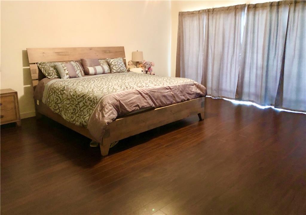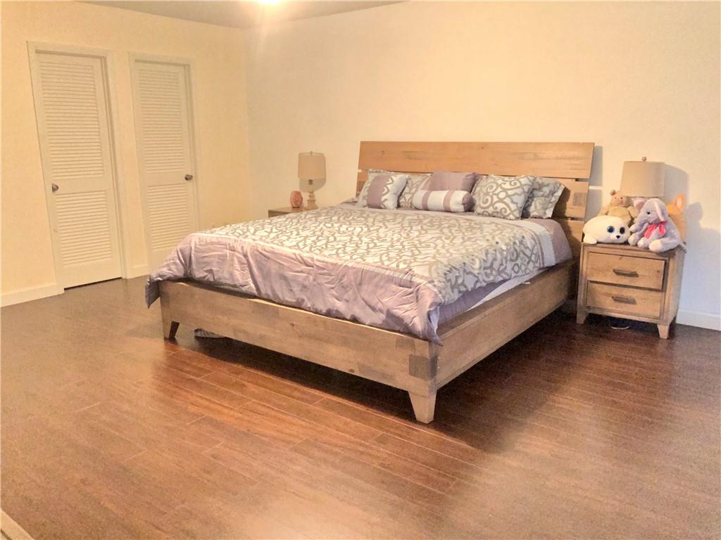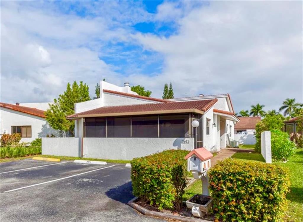 All Ages...A hidden gem! HUGE Master Bedroom with a huge walk in closet. Wood laminate flooring throughout home. Gorgeous wood finishes in enormous family room with soaring vaulted ceiling and a wood burning fireplace make this room feel so cozy. Inside laundry room. Two assigned and one guest parking space right in front of the home. This Home is only one of three that is a single family home in this beautiful golf course community. Rentals permitted.