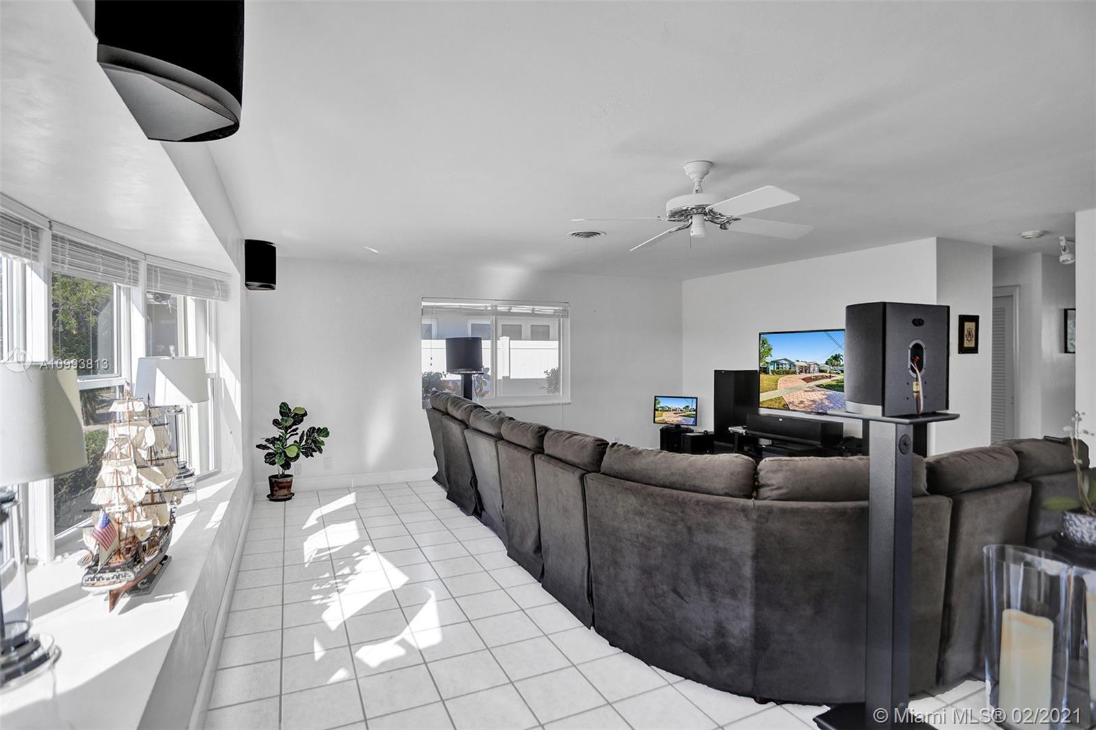 Captivating & spacious waterfront, pool home in highly desired Coral Ridge Isles. Ocean access in minutes, 4 fixed bridges. Boasting 75ft of waterfront this impeccable cul' de sac home has it all. Bright, spacious & open living concept floor plan, 2 large bedrooms, 2 baths & bonus (office/den space), inviting crystal clear pool & waterfront views from almost every room in the house & 1 car attached garage. All Miami Dade rated impact windows & doors, accordion shutters for additional protection, environmentally conscious EcoSmarte Ozone pool system (C02 +UV Sterilizer). Tech upgrade to whole house surge suppressor system, ultra low loss coax + CAT6 in bedrooms/living room, 16 channel security system w/ DVR, 14 night vision cameras with infrared LED's. 40 Panel solar grid system (optional)