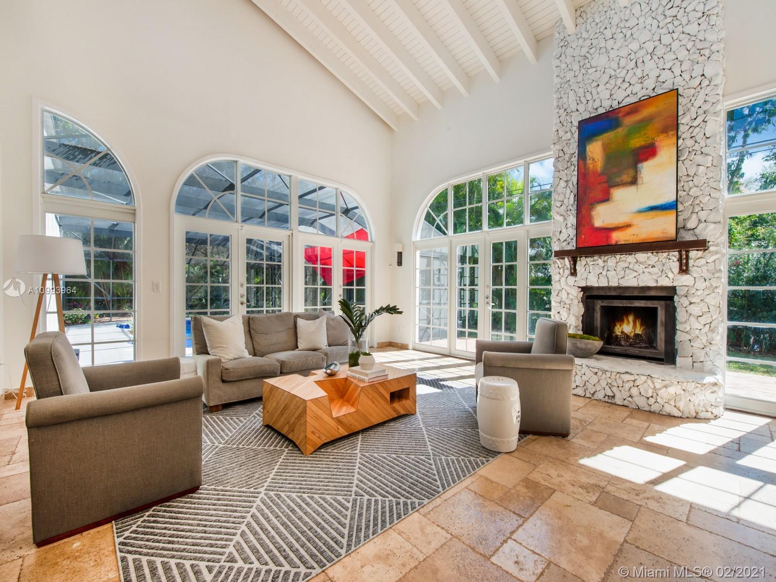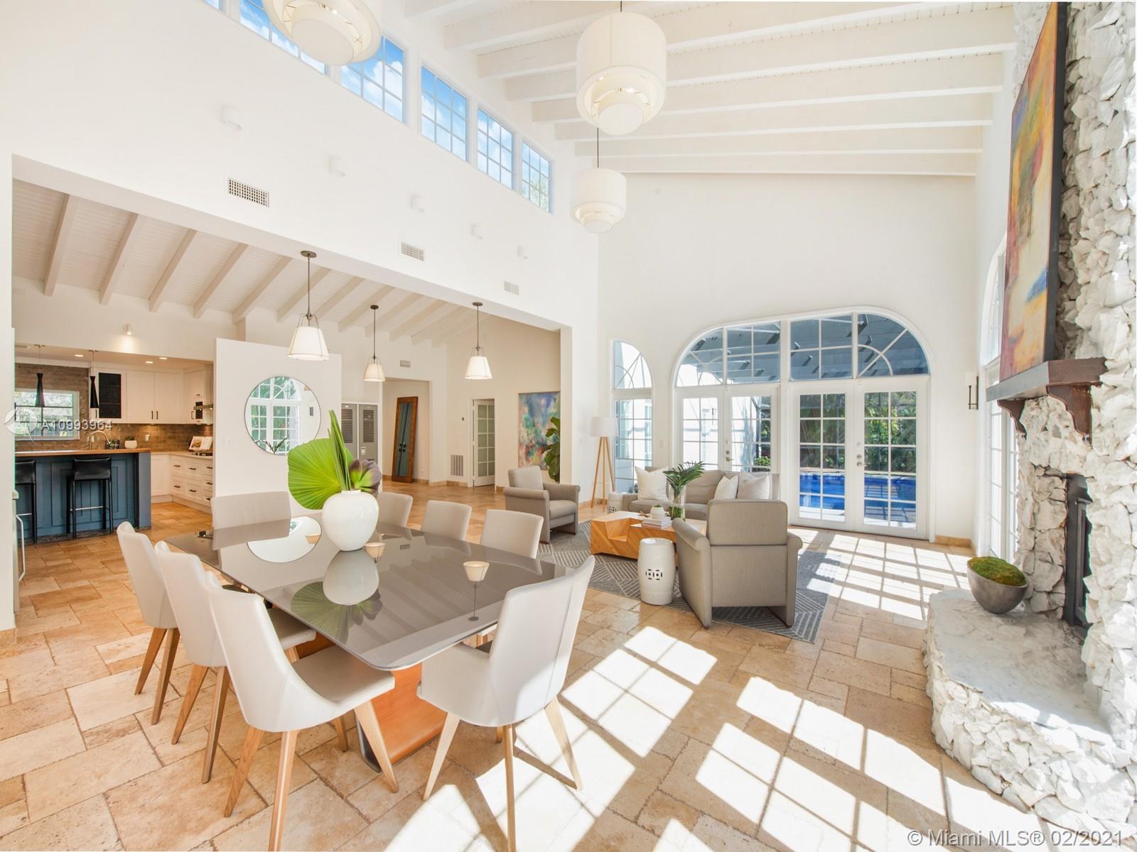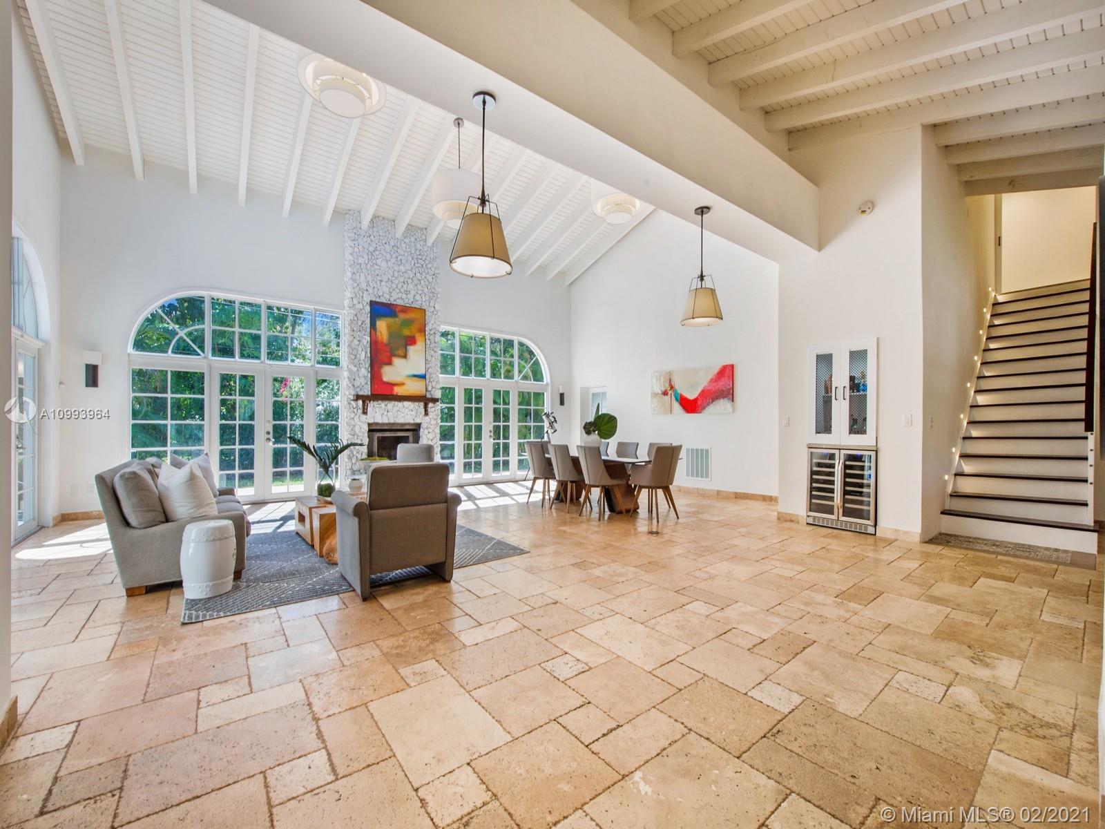 Gorgeous and completely renovated estate located in North Pinecrest. This 2-story tranquil residence offers the ultimate in South FL living with 6 bedrooms & 5 bathrooms. Residents are welcomed by a spacious open floorplan living room/dining room with volume ceilings & an elegant stone fireplace. Custom kitchen w/top of the line appliances, wine cooler and bar. Master suite is situated in ground floor, offering a spa-like bath w/ freestanding tub & walk-in closet. Discover endless space to entertain with a large family room, guest quarters, cabana bath, maid’s room, and bonus room. Outdoors living awaits with a heated screened pool, jacuzzi & 2 carports. Additional Features: New roof, Plumbing, Electrical system panel, Lighting, HVAC, AC ductwork. Pinecrest Elite Schools nearby.