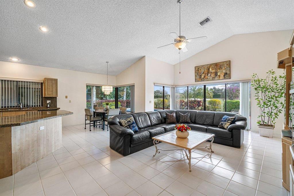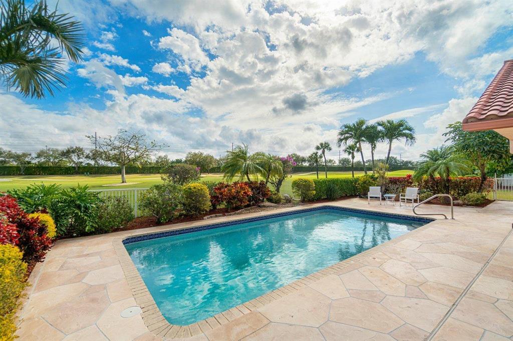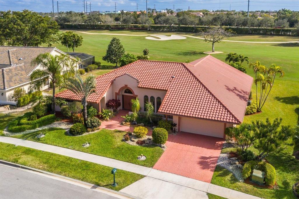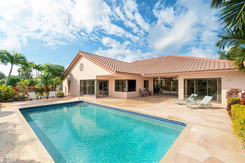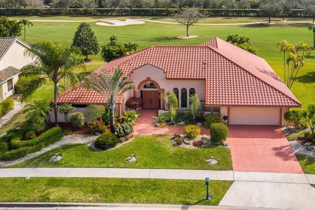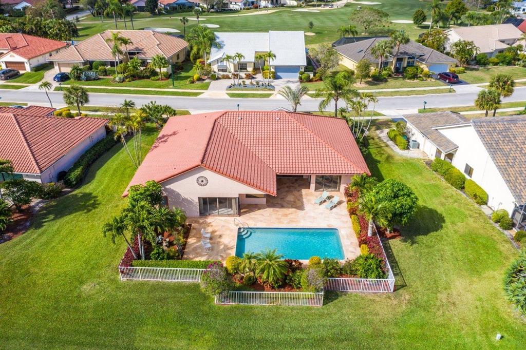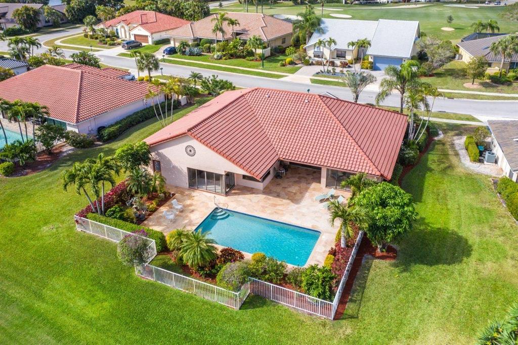Light, bright, and spacious 3 bedroom, 3 full bath single family pool home with a 2 car garage plus a golf cart garage on a spacious 1/3 acre lot overlooking the golf course. This beautiful home with an open floor plan has vaulted ceilings, lots of windows, high hats throughout, an open kitchen with wood cabinets and granite countertops, 2005 roof, new hot water heater and much more. Formal living room, large family room, formal dining room, breakfast area, and a 3 way split floor plan. Fabulous outdoor oasis with large pool and lots of entertaining and greenspace. Come and enjoy Boca Woods Country Club and all that it has to offer. Supplements attached with membership information.