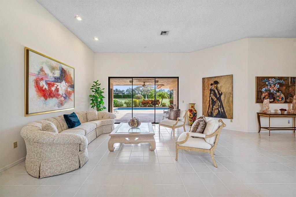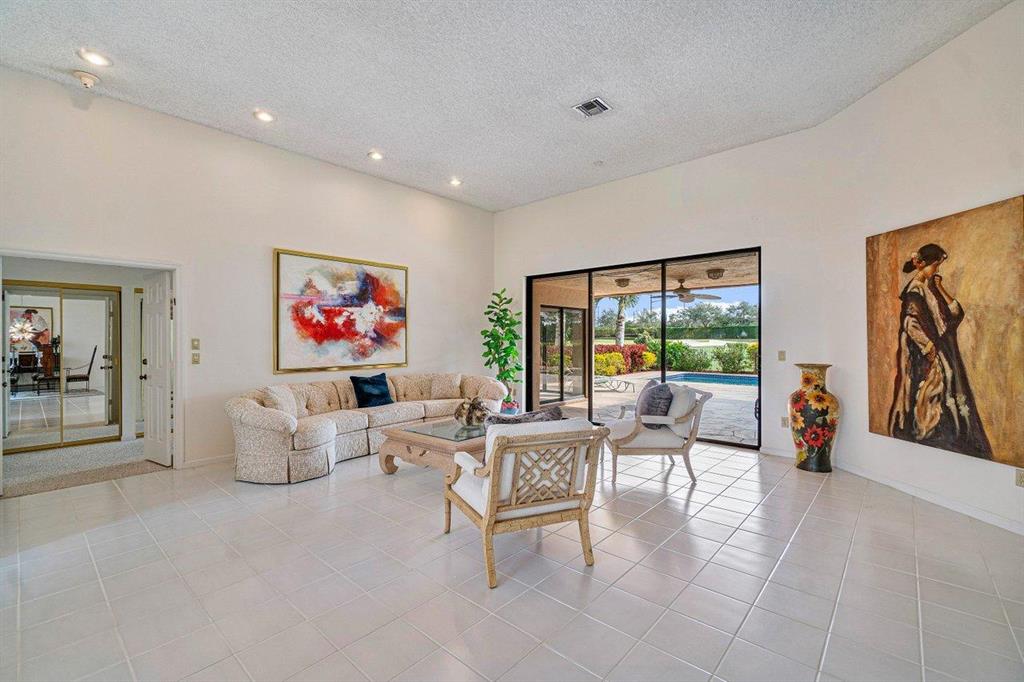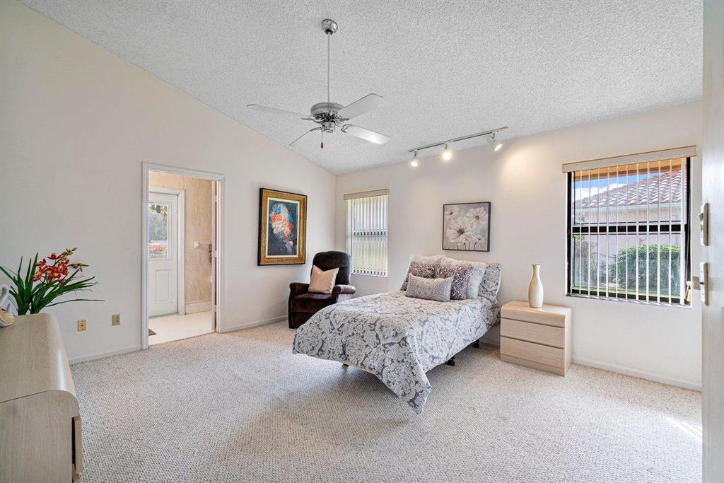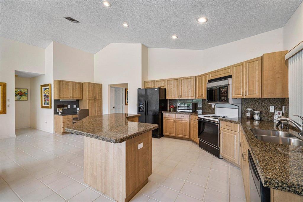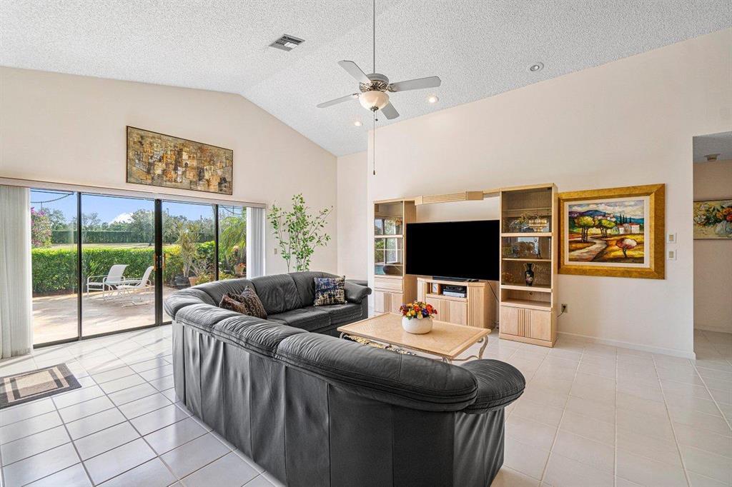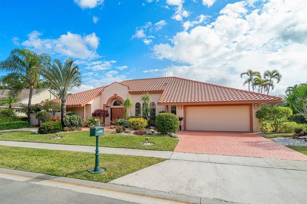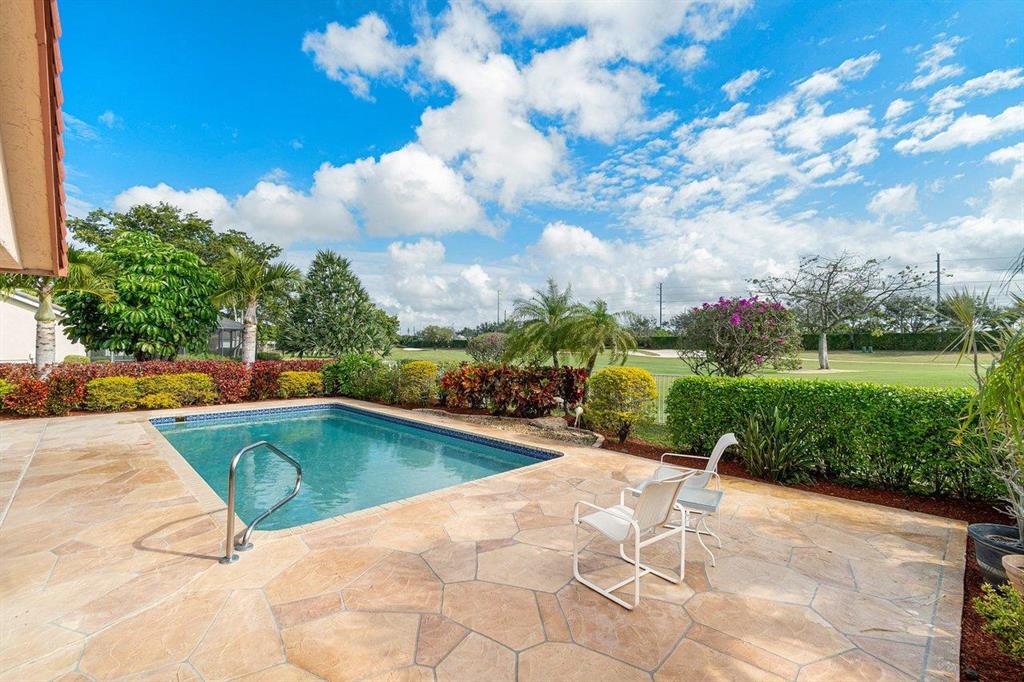 Light, bright, and spacious 3 bedroom, 3 full bath single family pool home with a 2 car garage plus a golf cart garage on a spacious 1/3 acre lot overlooking the golf course. This beautiful home with an open floor plan has vaulted ceilings, lots of windows, high hats throughout, an open kitchen with wood cabinets and granite countertops, 2005 roof, new hot water heater and much more. Formal living room, large family room, formal dining room, breakfast area, and a 3 way split floor plan. Fabulous outdoor oasis with large pool and lots of entertaining and greenspace. Come and enjoy Boca Woods Country Club and all that it has to offer. Supplements attached with membership information.