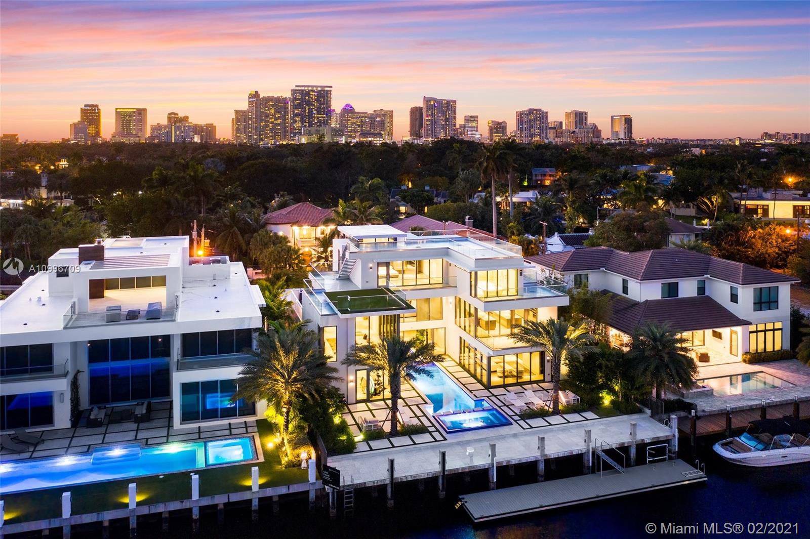 Post Minimalist Modern where sleek art meets architecture! This elegant tri-level home with a brand new roof has exciting new finishes, automated shades throughout and top of the line entertainment system. Breathtaking 35ft ceiling entry foyer overlooks a sheer glass wall to the vertical pool & canal. Spacious 2nd floor living area open chef's kitchen & great room, large loggias & expansive views. The entire 3rd floor master suite, including a high-end custom walk-in closet. Lounge in luxury, while relaxing on your generous terrace or private roof gardens.