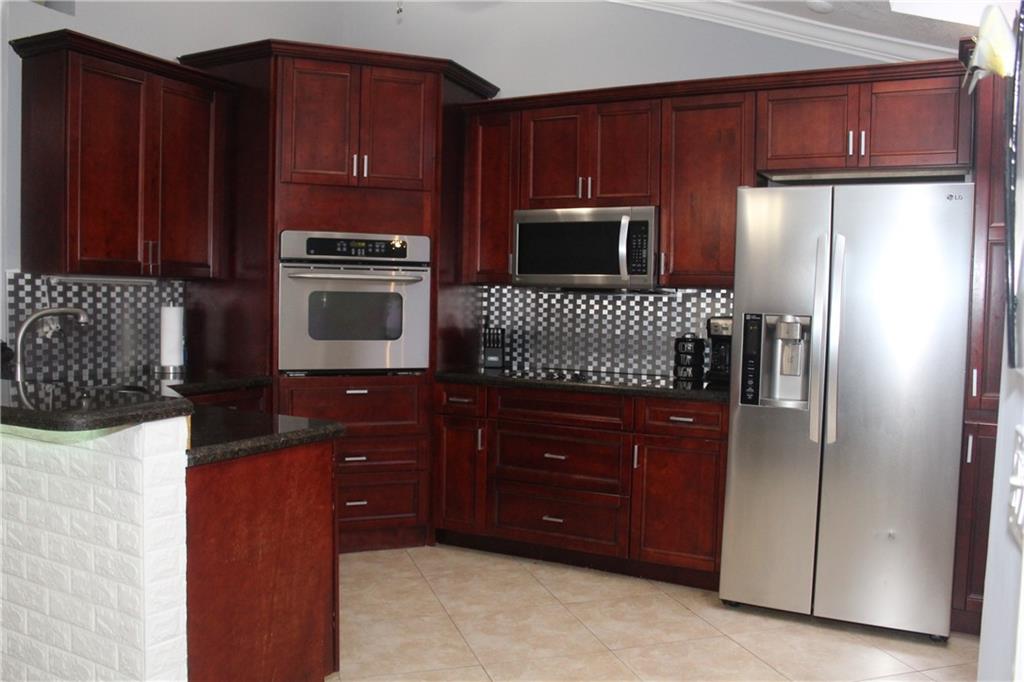 WOW!! Beautiful 3/2 home 1900sf under air with garage converted to a 4th BR in the desirable neighborhood of TRENDS Community boasting a fully remodeled home including kitchen and bathrooms, cherry wood cabinets new ss appliances w granite counter top. Open concept living area includes living room, dining area and family room crown molding throughout, vaulted ceilings, all impact windows including french doors, porcelain tiles throughout, double paved driveway and paved backyard throughout! This home is perfect for people who love to entertain. Professionally custom built BBQ grill 16x16 covered area w travertine pavers to be proud of and a huge completely private white PVC fenced back yard fun for the whole family.Definitely a rare opportunity, will not last!