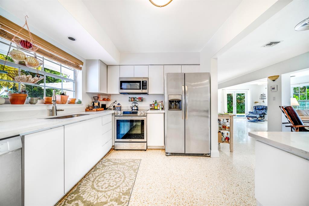 RARE FIND! Beautiful 3 bed / 2 bath single family pool home with tons of character and upgrades in a prime East Boca Raton neighborhood situated on a premium oversized corner lot with no HOA fees or restrictions!!! This charming residence is ideally located within a top A-rated Boca Raton school district and only 1 mile from the beach! Notable home features, upgrades and improvements that buyers will appreciate include: a newer roof (3 years old), an updated electrical panel (3 years old), impact rated front French door and side door, an open floor plan flooded with natural light coming from large windows all around and 2 sets of french doors opening to back patio, original terrazzo floors throughout most of home