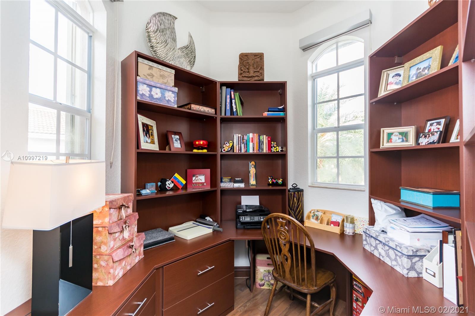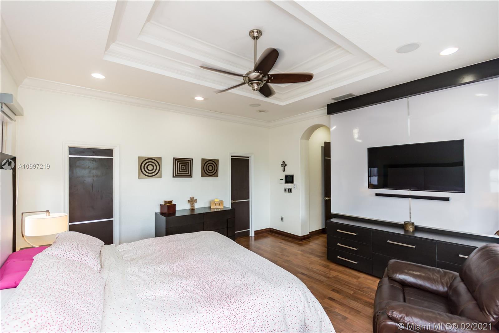 BEAUTIFUL SINGLE FAMILY HOME IN DORAL ISLES' MEDITERRANEA. CONTEMPORARY UPDATES INCLUDE: QUARTZ KITCHEN COUNTERTOP, BUILT-IN INTEGRATED REFRIGERATOR, WINE CELLAR, AND MIELE APPLIANCES. BUILT-IN ENTERTAINMENT CENTERS IN FAMILY ROOM AND BEDROOMS. MARBLE FLOORING ON 1ST FLOOR, WOOD FLOORING ON 2ND FLOOR. UPDATED BATHROOMS W/ FLOOR TO CEILING GLASS. TWO BEDROOMS CONVERTED INTO SINGLE LARGER ROOM, CAN BE EASILY REVERTED. LARGE WOOD AWNING IN BACKYARD, 3 CAR GARAGE, LED LIGHTING THROUGHOUT HOME, LOTS OF NATURAL LIGHT, ELECTRIC BLINDS IN BEDROOMS, ACCORDION SHUTTERS, ADDITIONAL LOFT WITH OFFICE ON 2ND FLOOR. AMENITIES INCLUDE: 2 POOLS, FULL GYM, BASKETBALL AND TENNIS COURTS, BEACH VOLLEYBALL, BALL ROOM, AND MORE. ONE OF DORAL'S MOST PRESTIGIOUS DEVELOPMENTS.