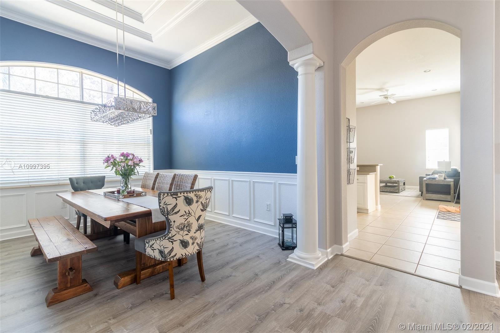 Stunning one-story residence located inside of the prestigious community of Sunset Lakes. Enjoy the privacy of living in a corner lot home that is situated on an oversized 11,889 sq. ft. lot. As you walk inside, you will be amazed by the 12' volume ceilings in all living areas of the property, and the privacy of having a split bedroom floor-plan that separates the master bedroom from the rest of the bedrooms in the home. New roof installed June 2020, freshly painted in August 2020, New carpet and new vinyl flooring in living area, hallway, and dining room., the pool has a heating and cooling system. Water filtration system, open family room with access to the outdoor screened-in terrace, 1/2 bathroom that serves as a cabana bath with direct access to the patio/pool area.