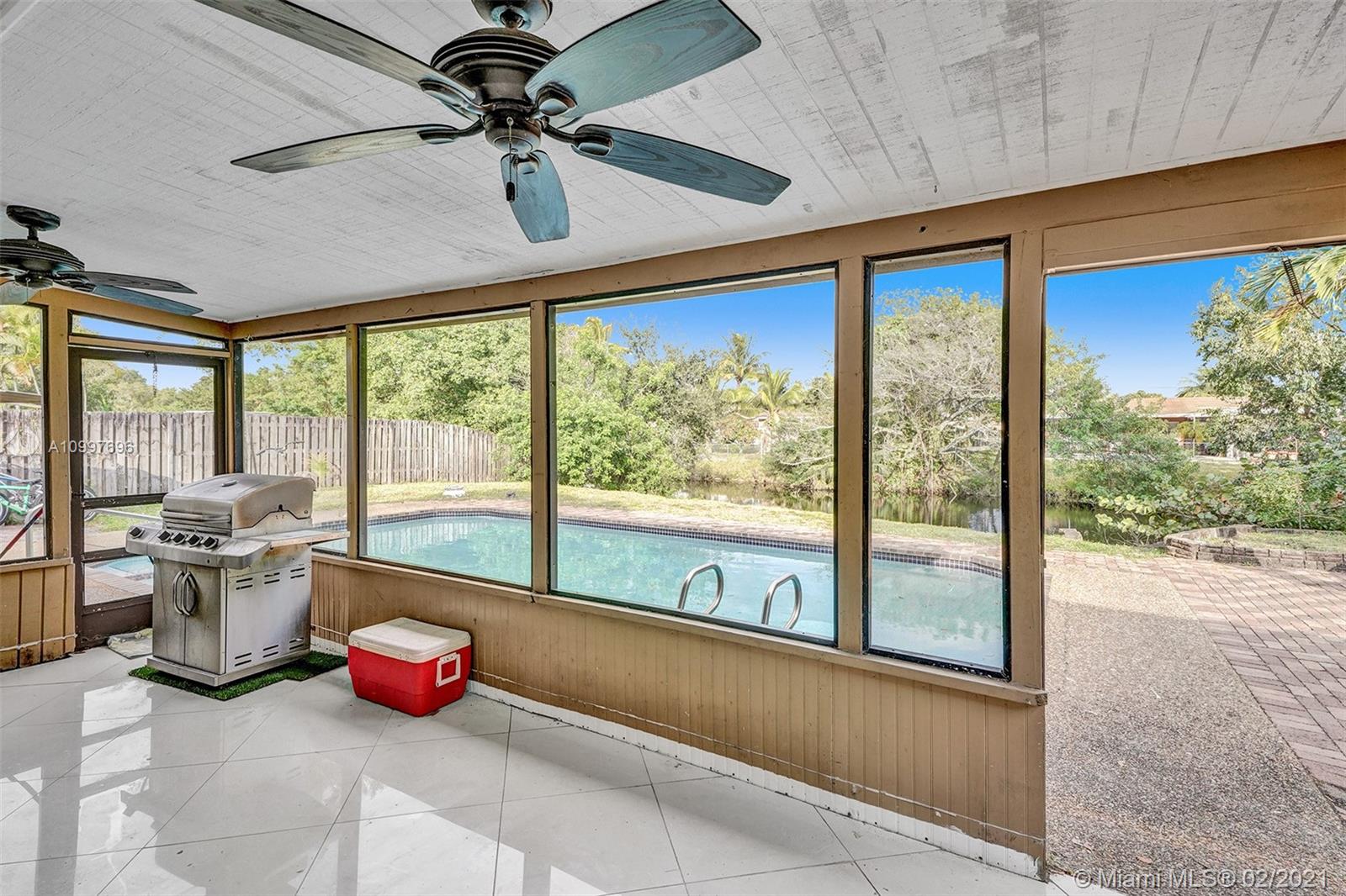 Beautiful house in Sunrise Golf Village! This 1,274 sq ft home has 3 bedrooms & 2 full bathrooms, a huge backyard with a pool, a beautiful canal view and a large driveway with carport. The inside of the home features tile floors throughout, wood cabinets in the kitchen and ceiling fans throughout the house. The Bathrooms, plumbing, electrical and roof were recently redone. There is No HOA. Property is currently tenant occupied on a month-to-month lease which can be renewed or terminated upon purchase of the home. 24 hour advance notice for all showings. For Showing confirmation please send Pre-approval letter or DU (no exception). Property will sell AS IS. Hablamos español.