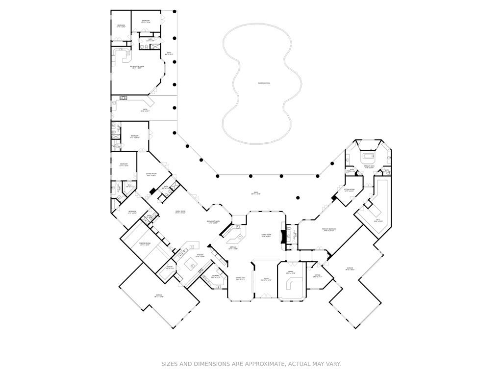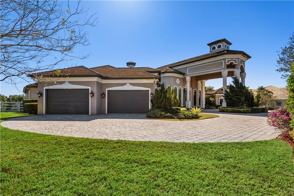 Gorgeous residence in exclusive Landmark Ranch Estates! Beautiful landscaping adorns this 2.33 acre lot, lining the long driveway & surrounding the resort-style pool. This estate is perfect for entertaining with a covered summer kitchen, expansive patio, sound-proof theater, Nuvo sound system, sophisticated bar with custom millwork & separate guest house. Car enthusiasts will appreciate the porte-cochere & 9 car garage! Luxurious primary suite complete with one-of-a-kind custom closet, bonus room (perfect for exercise room or nursery), sitting area & spacious bathroom with tons of natural light. The chef's kitchen features 4 ovens, 6 burner gas range, 2 dishwashers & walk-in pantry. Main house has 4 bedrooms, 5.5 bathrooms & guest house has 2 bedrooms, 1 bathroom. Impact glass & generator.