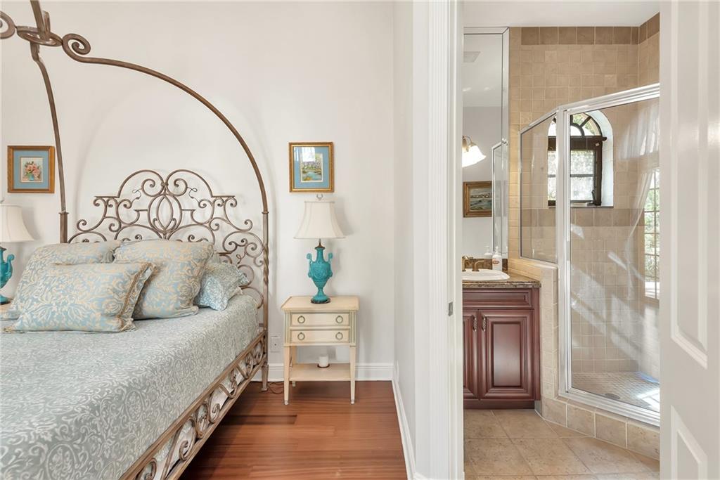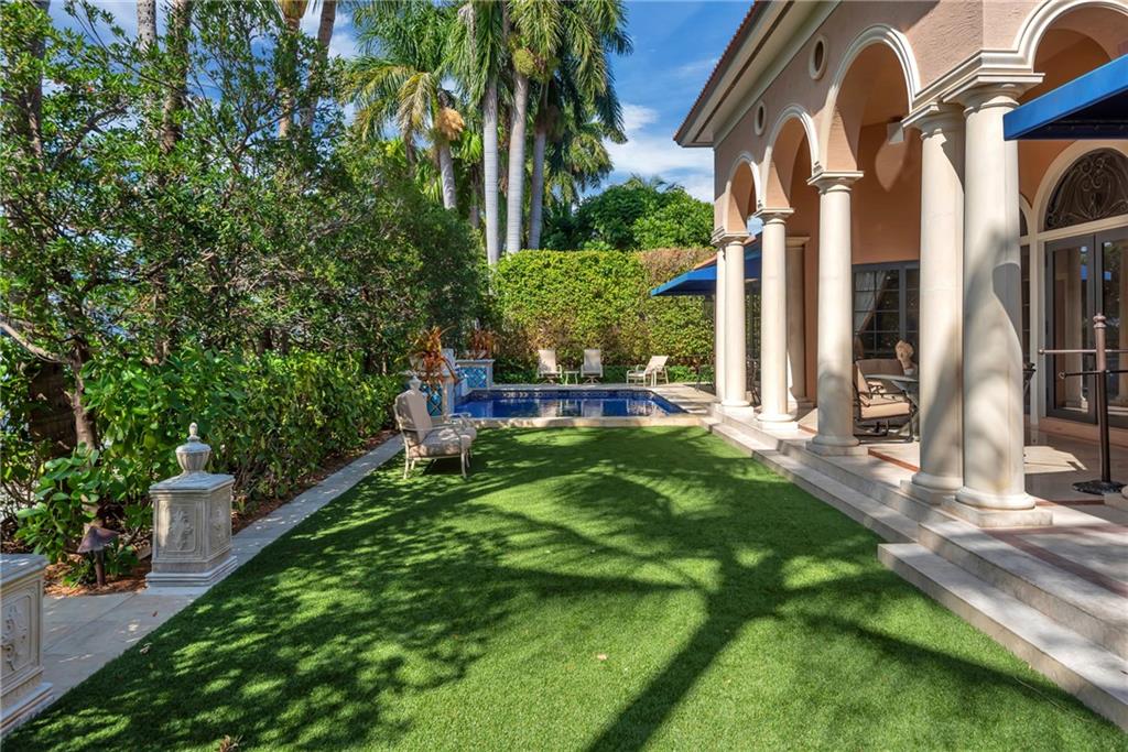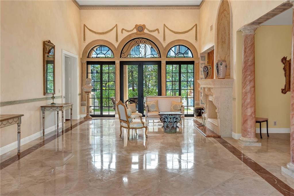 Elegant Mediterranean waterfront estate. E-Gated property features volume ceilings and architectural detail, with a light filled, warm ambiance. Marble and wood floors, granite countertops, chef's kitchen with Subzero Refrigerator and Wolfe gas range open to family room, beautiful Main Suite on 1st floor with expansive walk in closet and bath, separate entrance for Guest/In-Law Suite or Maids Quarters, UG propane tank, Gas Generator, 7 beds per County Records, one bed converted into large laundry/maids workplace, one bed used as Guest Suite's sitting area. Furniture negotiable.