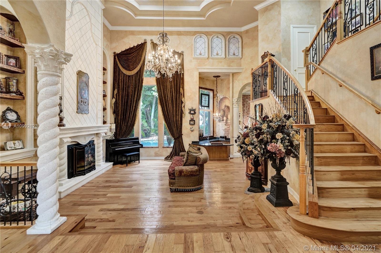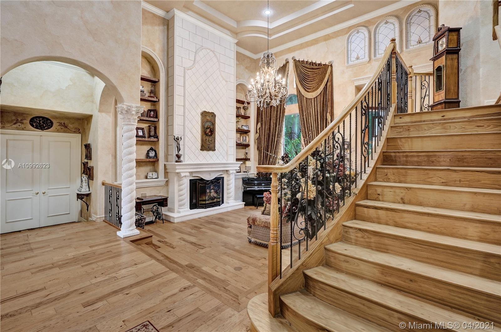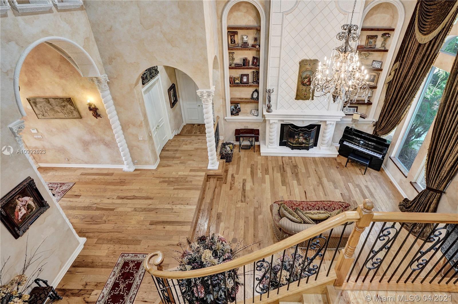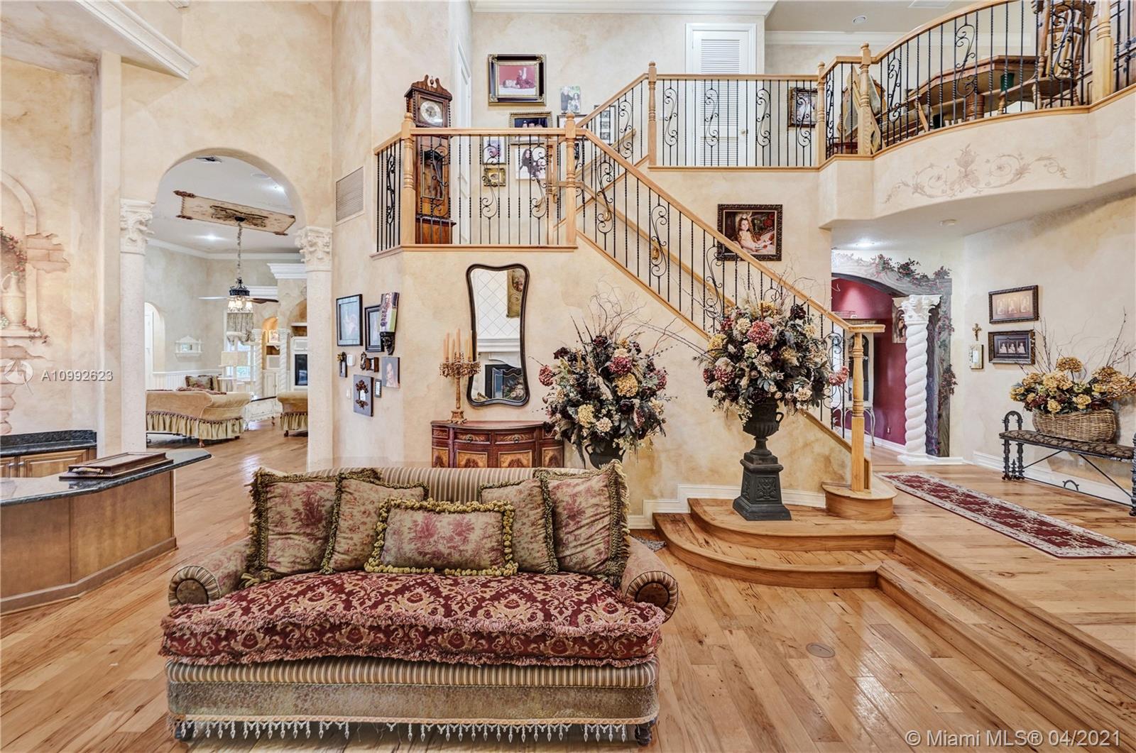 See the most unique triple split 5BR/6BA home in Stonebrook Estates, a 24-hour guard gated community. A hidden treasure nestled among mature oak trees; this custom Vanderbilt offers ultimate privacy. Meander down Old Chicago brick pathways & secret gardens w/hidden stone patios, perfect for wine sipping. The grand foyer has a hand-painted ceiling & coral rock. Upgrades: enlarged hearth, wrought iron staircase, distressed birch wood floors, custom drapes, crafted millwork, custom window seats, water filtration & more. Fully equipped chef’s kitchen w/hand painted wood cabinetry & extra-large walk-in pantry. 1st Fl encompasses a master BR w/versatile gym/nursery, a 2nd BR suite w/sitting room & BA, & a home office w/built-in cabinetry. 2nd Fl has large loft w/3 additional BR & 3 private BA.
