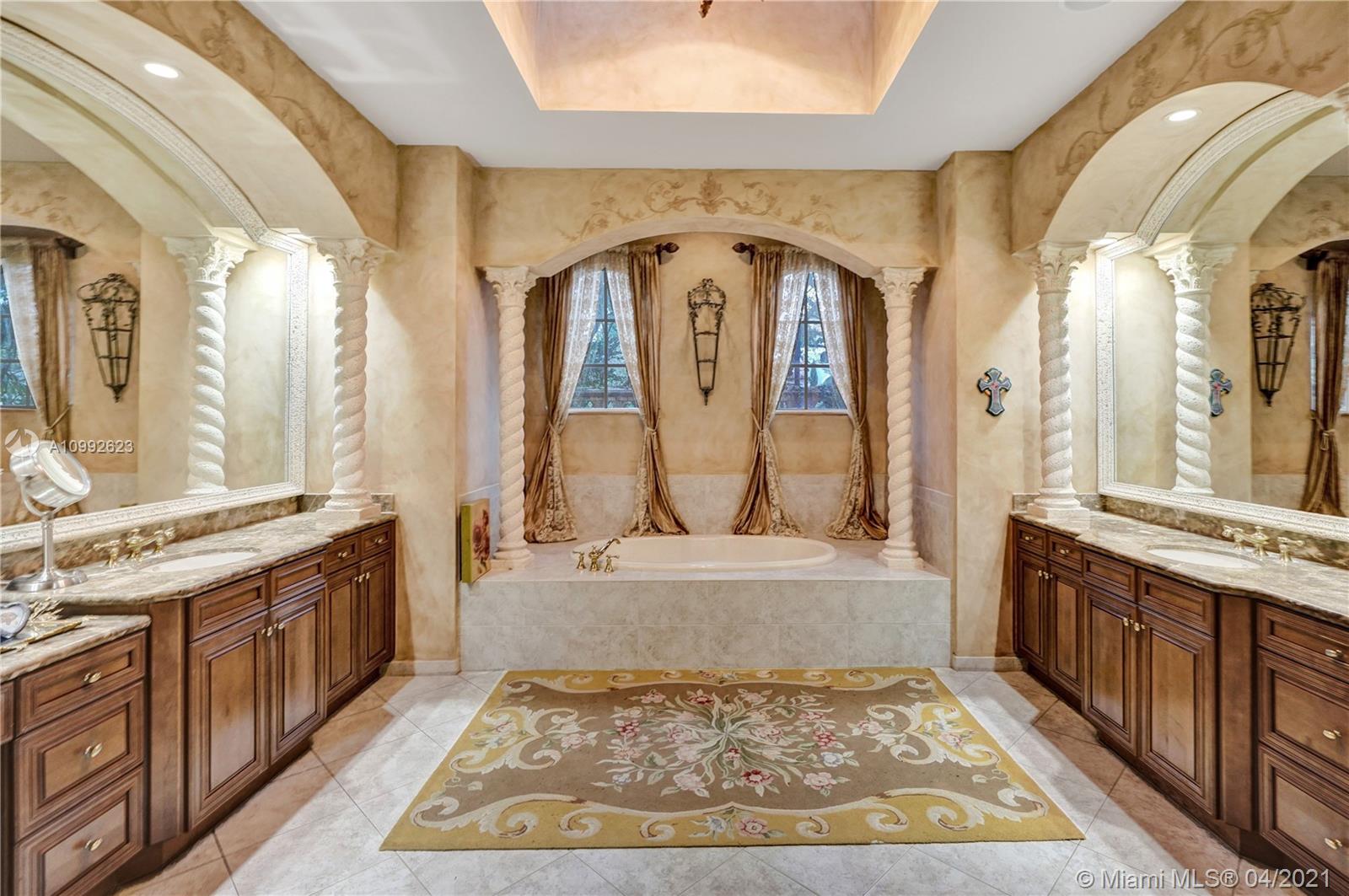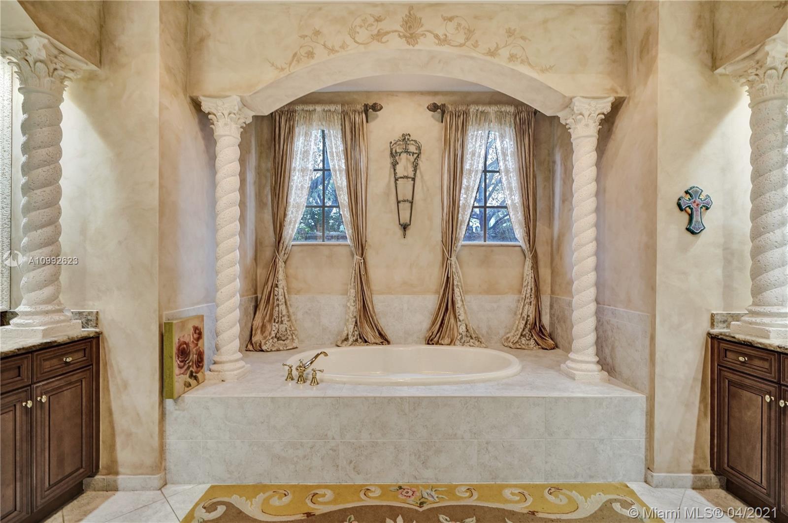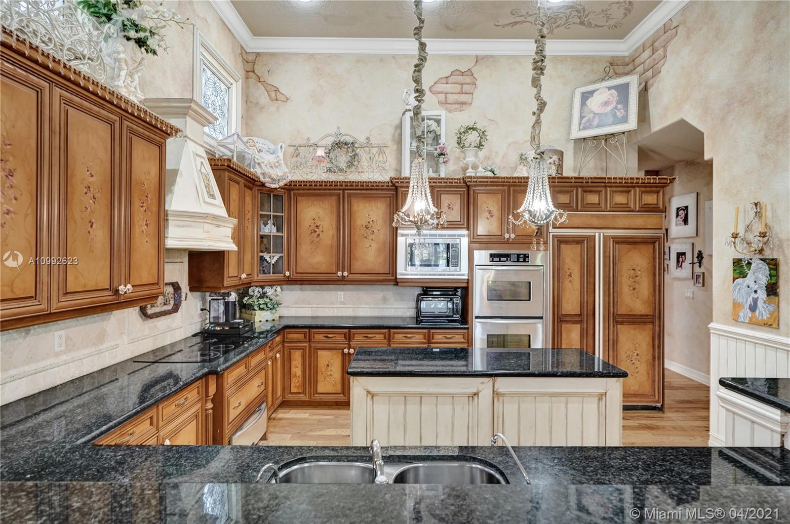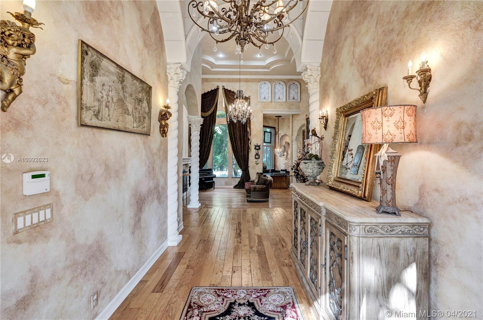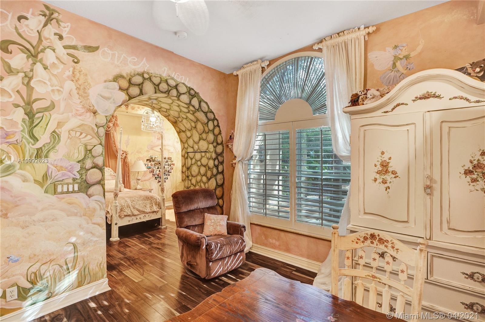 See the most unique triple split 5BR/6BA home in Stonebrook Estates, a 24-hour guard gated community. A hidden treasure nestled among mature oak trees; this custom Vanderbilt offers ultimate privacy. Meander down Old Chicago brick pathways & secret gardens w/hidden stone patios, perfect for wine sipping. The grand foyer has a hand-painted ceiling & coral rock. Upgrades: enlarged hearth, wrought iron staircase, distressed birch wood floors, custom drapes, crafted millwork, custom window seats, water filtration & more. Fully equipped chef’s kitchen w/hand painted wood cabinetry & extra-large walk-in pantry. 1st Fl encompasses a master BR w/versatile gym/nursery, a 2nd BR suite w/sitting room & BA, & a home office w/built-in cabinetry. 2nd Fl has large loft w/3 additional BR & 3 private BA.