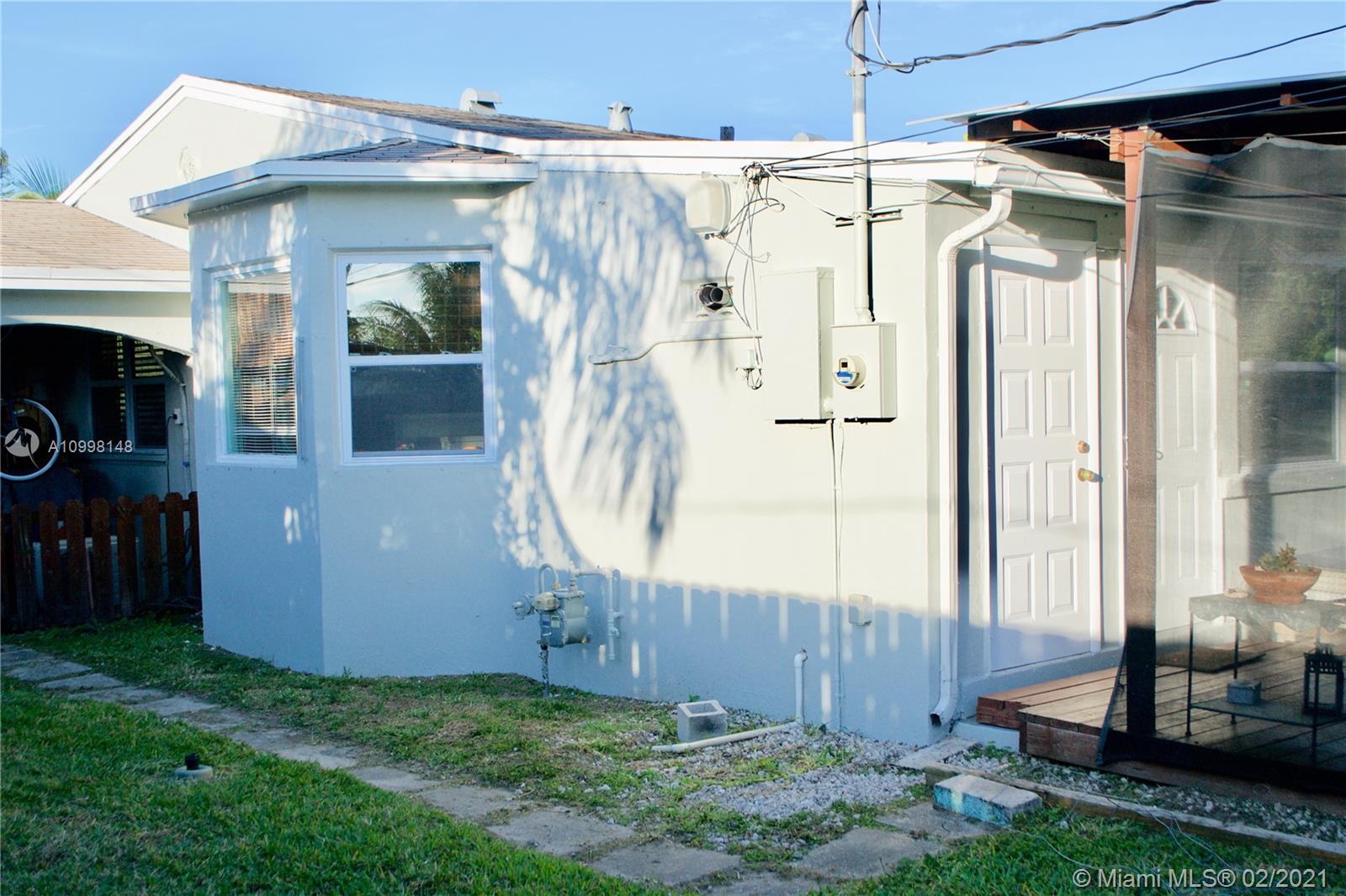 Delightful, Mid century charmer sitting on over 8000sq ft, a stones throw from downtown Hollywood! Terrazzo floors, open kitchen, high end S.S. appliances & sparkling white quartz counters, adorable, bay window bump out, eat in dinning area. Bonus florida room/den! large carport that is part of the original roof line for ez conversion to third bedroom or garage. Newer Windows and A/C, roof replaced 2007, septic system and drain field replaced 2011. New Gas stove and hot water heater, impact doors, hurricane rated shutters for all windows, hip roof (insurance discount) Super efficient mini split a/c, system with heat and dehumidifier! *LOW FPL bill* ground water fed sprinkler system with electric well pump (free water for landscaping and garden) *FLOOD ZONE X* No flood insurance needed!