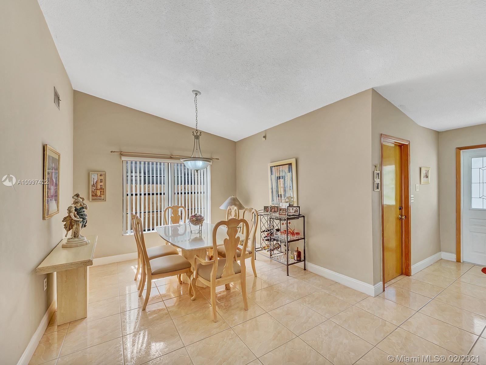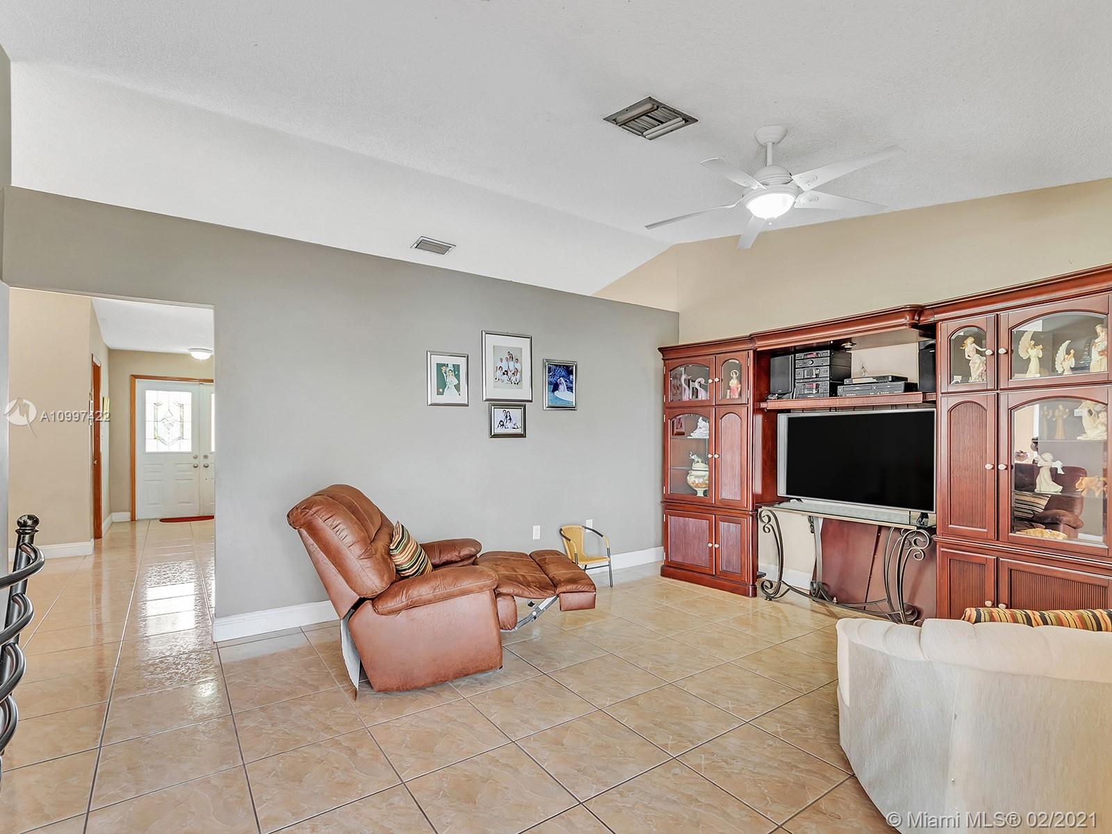 Watch sunsets from the front porch in this move-in ready home located minutes away from the Gratigny, shops & Miami Lakes. Home is located in a quite dead-end street, safe for children to play outside. Features new tile roof, freshly painted exterior, covered back patio into the yard, updated kitchen & appliances, master walk-in closet, & tile throughout the home. Large living & dining room. New Roof & AC is 4 years old. Drive-way fits 3 to 6 cars & has a one car garage. Laundry located inside garage that includes a side door to the exterior. Water/Sewer is from City of Hialeah & has new plumbing-no cast iron. Electricity is underground. Accordion shutters. Owner Occupied, showings by appointment only with 24 hour notice. Please book using ShowingTime. Buyers Realtor must accompany Buyer.