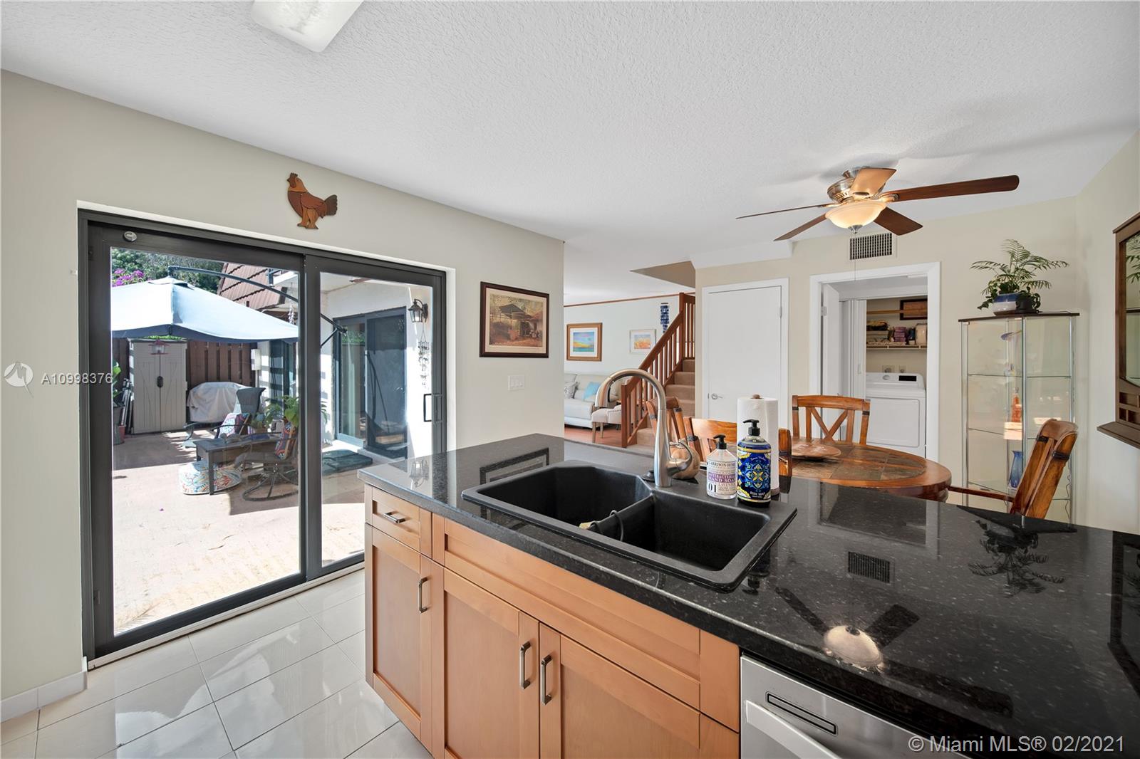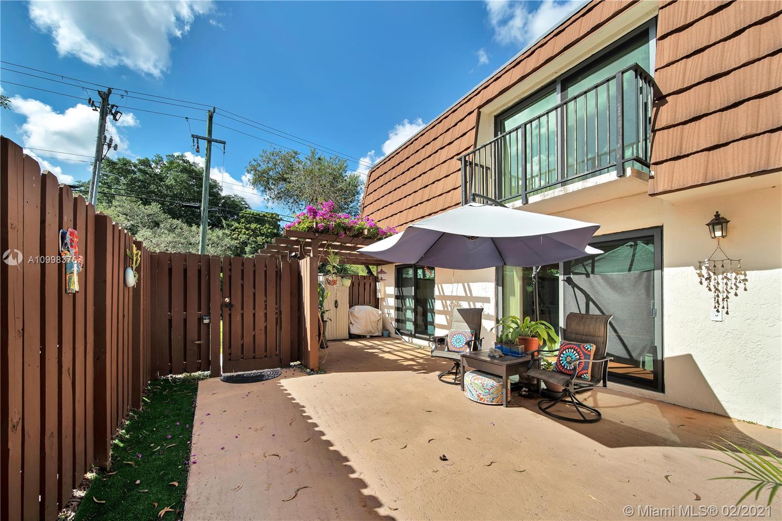 Impeccable townhouse in a well-maintained, conveniently located Davie community. Beautifully updated kitchen with granite counters & stainless appliances. Huge master suite with two organized closets, updated master bathroom, and balcony. First floor bedroom currently used as office. Newer full size heavy duty washer & dryer. Under stairs storage closet. Newer A/C with ultraviolet light and wifi thermostat. Newer water heater. IMPACT windows/doors throughout townhouse. Enclosed patio for private relaxation. Corner unit with open exterior space ideal for play. EXCELLENT SCHOOLS. Easy access to I-595, shopping, restaurants, airport. Community pool. Equal housing opportunity.