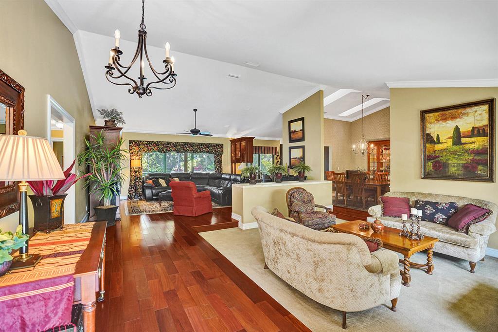 Don't miss your chance to live in the highly sought after Pine Ridge. This home has it all starting with a large oversized open concept living space that has Brazilian Cherry wood floors throughout the living areas. A gourmet cook dream kitchen with custom built cabinets granite counters and Jenn-Aire appliances. Hurricane impact windows & doors that open onto a large screened in patio and pool with stunning travertine pavers & custom built Summer Kitchen. Need time to relax? Enjoy the amazing garden areas in the front & back of the home ! Schedule your appointment today before it's gone!