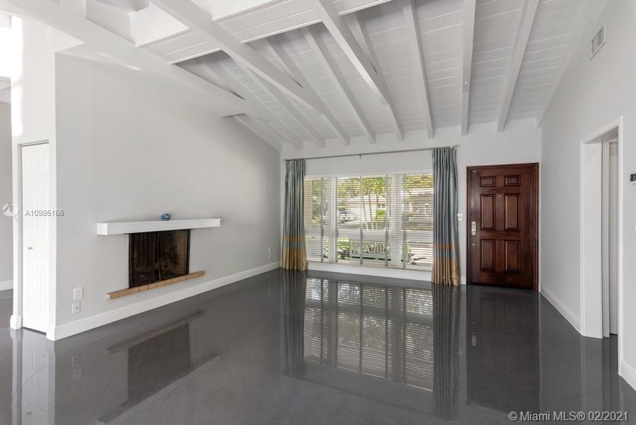 This beautiful light-filled home in the Platinum Triangle with arbor canopied streets is move-in ready for its new Buyer. Open great room concept features large front windows, high beamed ceilings, and a wood-burning fireplace accented with porcelain tile floors. Tall dining room windows and a bank of sliding glass doors open to a full deck overlooking a newly landscaped yard with plenty of room for a pool. White bright kitchen, newer appliances, neutral baths, expanded primary bedroom closets and bathroom with double sinks, and separate shower & tub complete this lovely picture. Whole house impact doors & windows, 2015 roof, 2016 A/C. Top-rated schools by urban centers of Coral Gables, Coconut Grove, and South Miami, just 2 blocks West of Old Cutler Road.