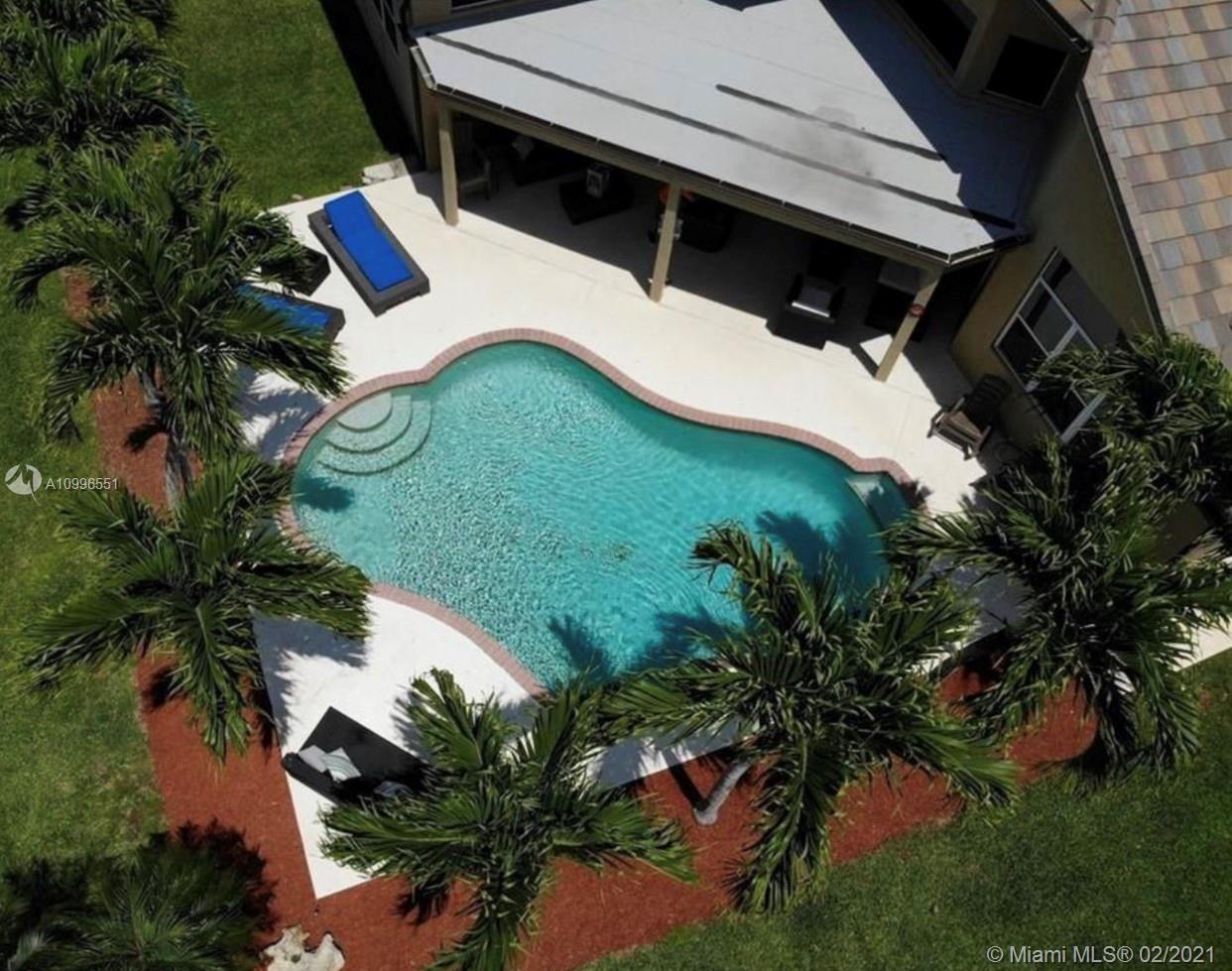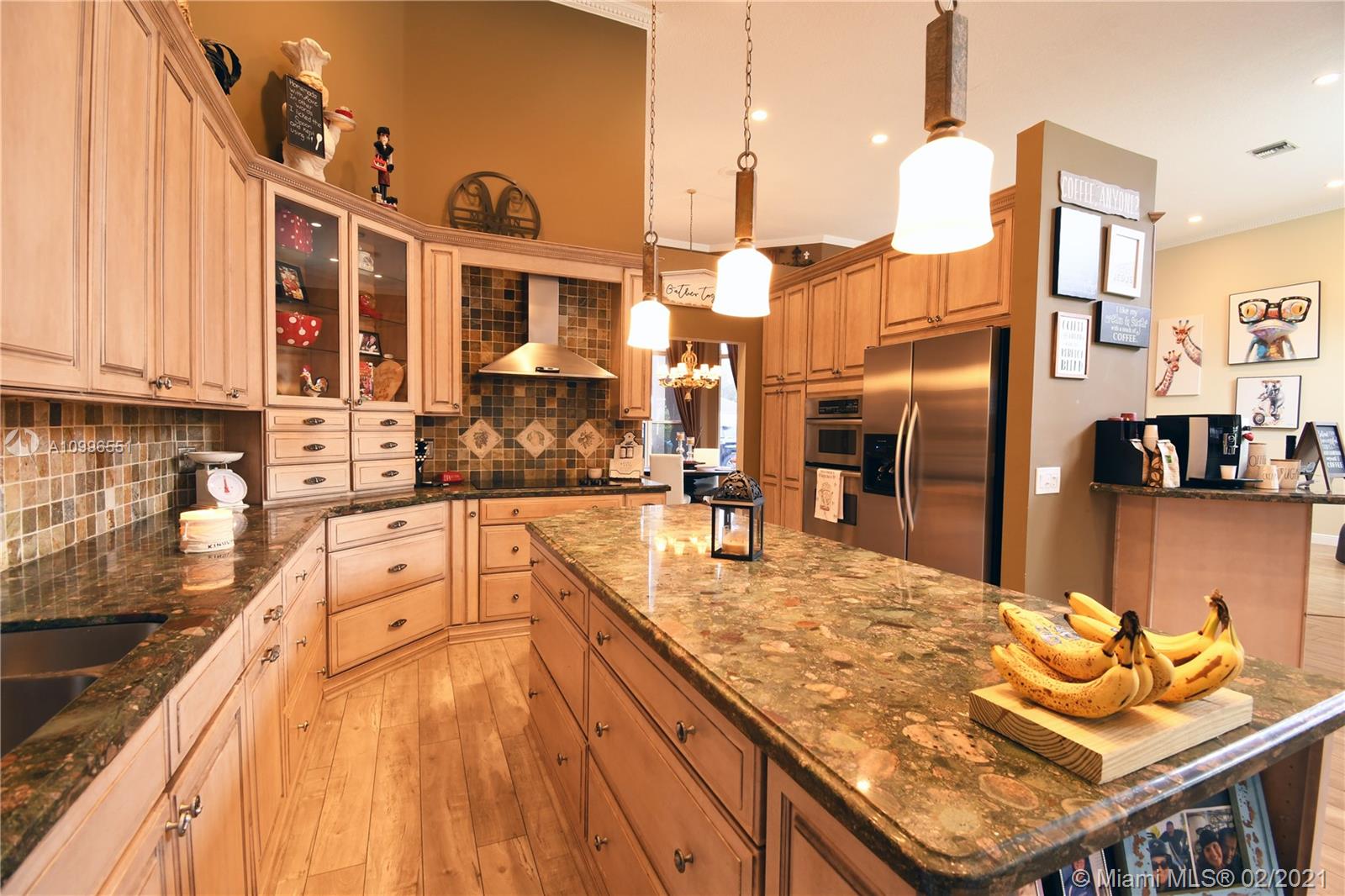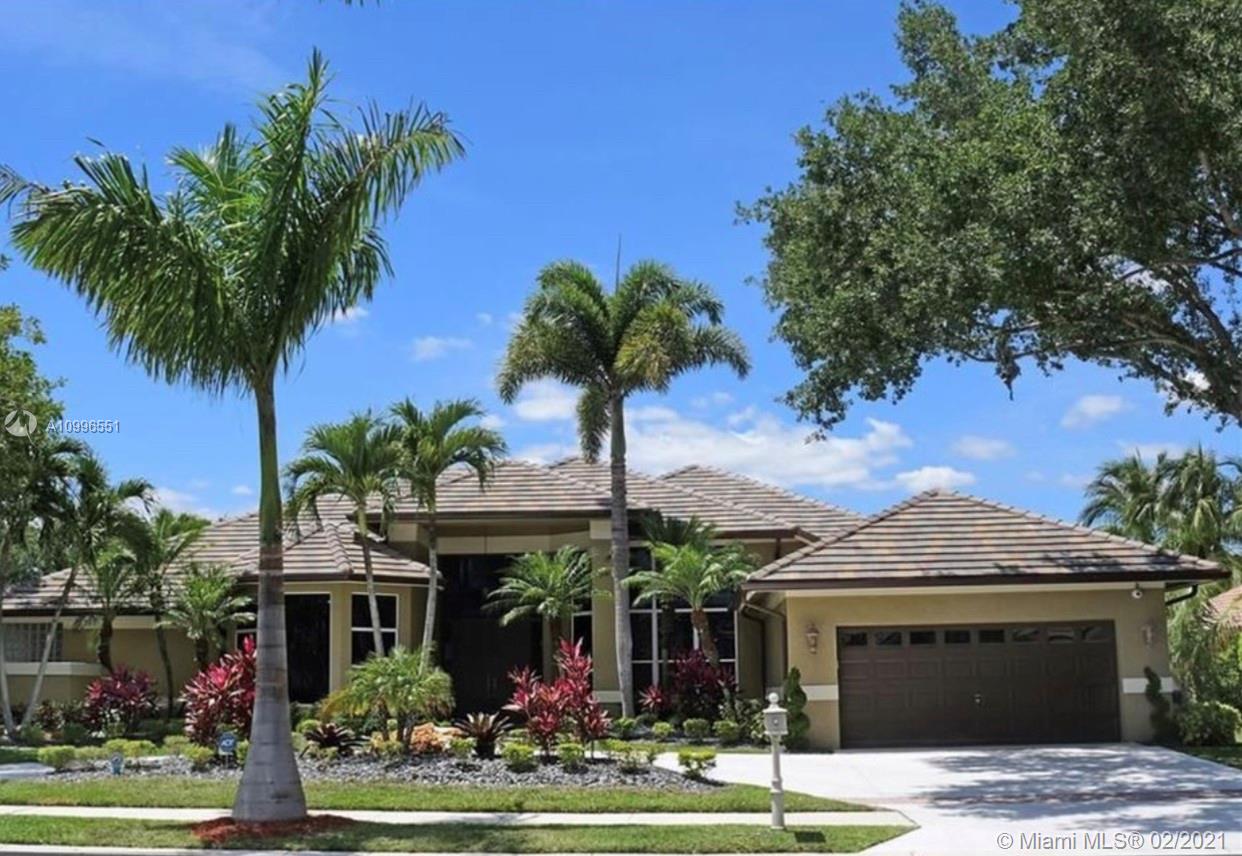 Gorgeous home in the heart of Weston's Palm Island. This spacious 4 bedroom 3 bathroom palace with 3 way split floor plan that screams pride of ownership. Large picture windows allows tons of natural light to shine in. Beautiful separate office with useful built-in cabinetry and sunken living room area with wet bar. Kitchen features wood cabinets/tile back-splash/granite/stainless appliances and useful cooking island for gourmet creations.Tremendous family room/vaulted ceilings and newer roof is only 2 yrs old young. 2 car garage. Sparkling pool area with covered patio, 3 ceiling fans and partial water view of the lake from back yard make this gem a special place to call home. Secure guard gated community with walking distance to A rated schools. Call for private screenings.