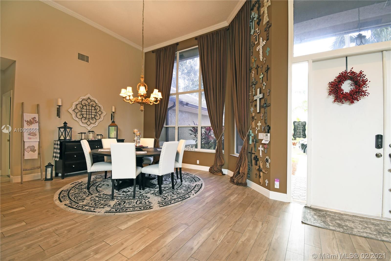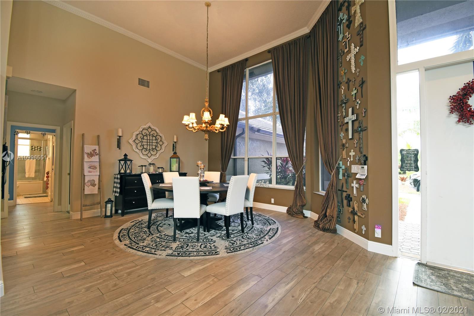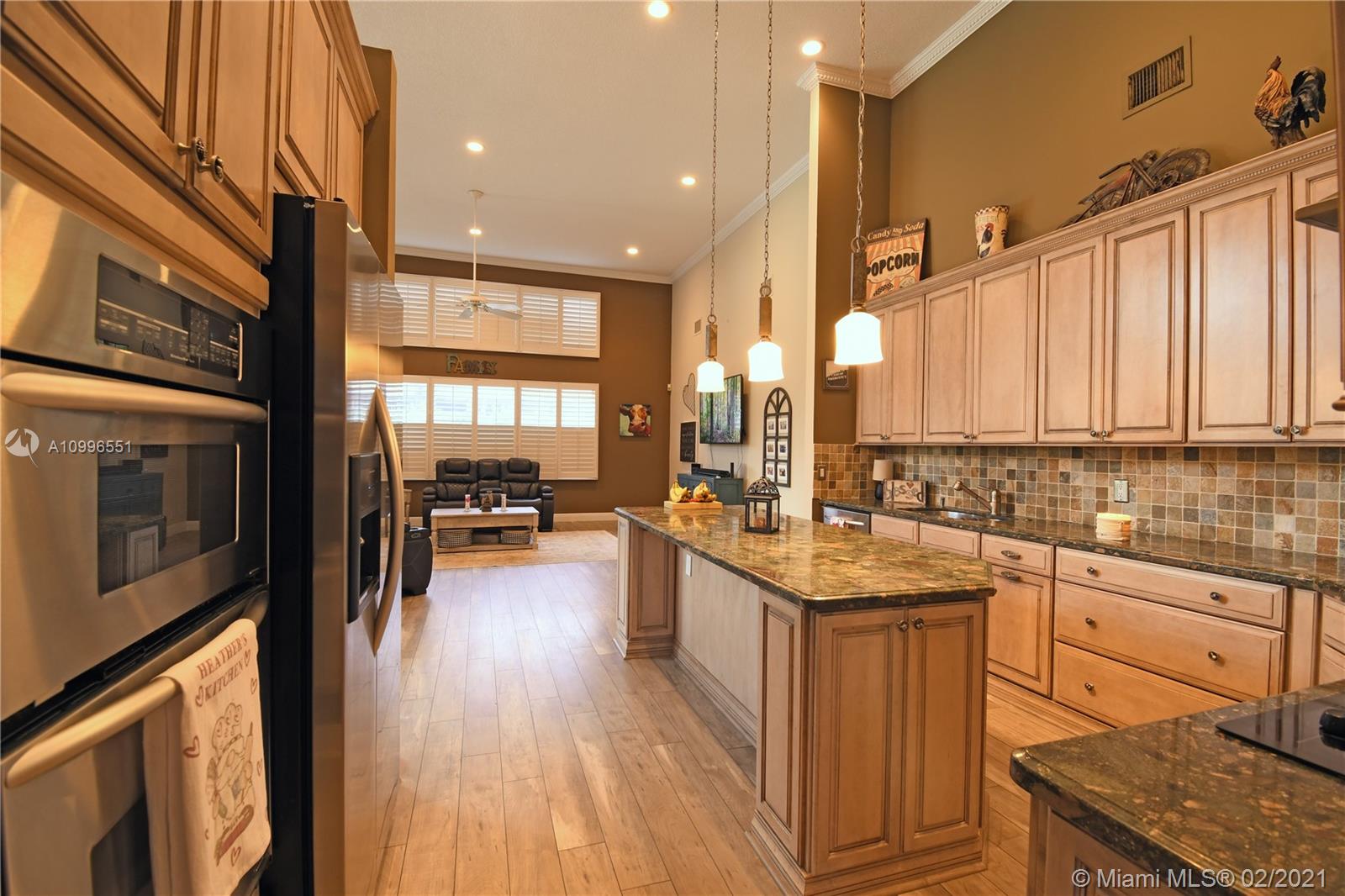 Gorgeous home in the heart of Weston's Palm Island. This spacious 4 bedroom 3 bathroom palace with 3 way split floor plan that screams pride of ownership. Large picture windows allows tons of natural light to shine in. Beautiful separate office with useful built-in cabinetry and sunken living room area with wet bar. Kitchen features wood cabinets/tile back-splash/granite/stainless appliances and useful cooking island for gourmet creations.Tremendous family room/vaulted ceilings and newer roof is only 2 yrs old young. 2 car garage. Sparkling pool area with covered patio, 3 ceiling fans and partial water view of the lake from back yard make this gem a special place to call home. Secure guard gated community with walking distance to A rated schools. Call for private screenings.