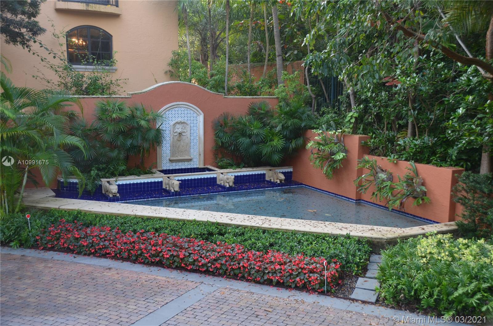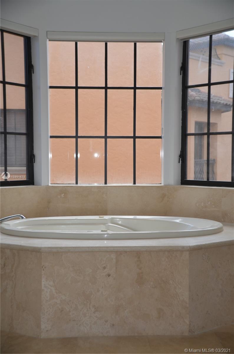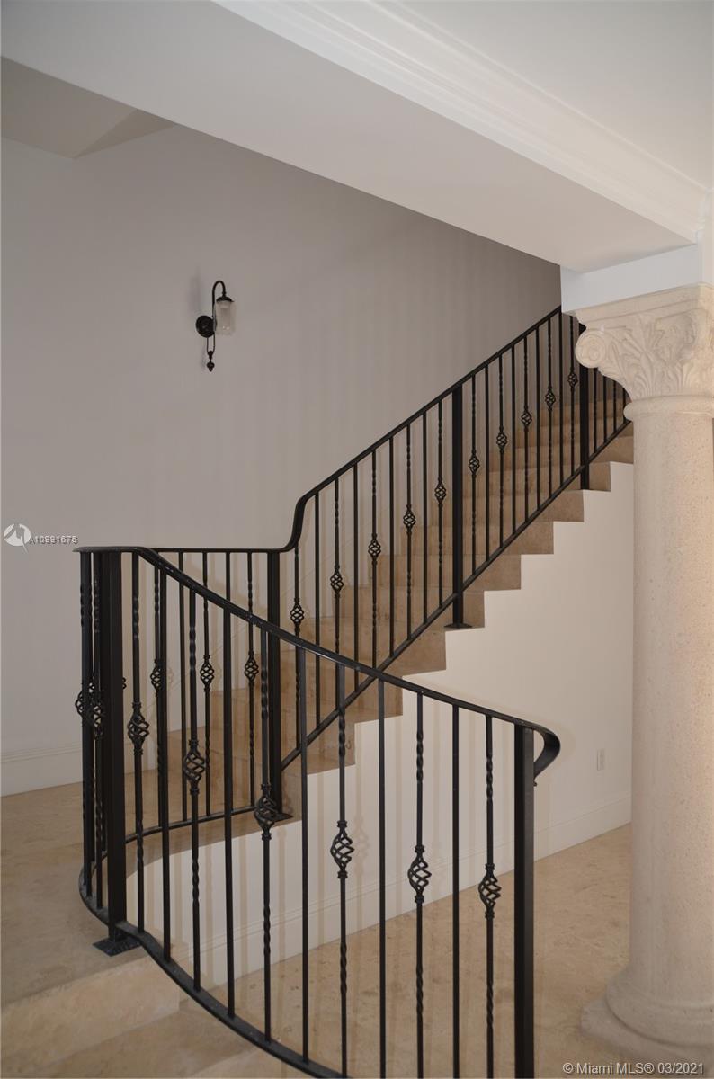 Completely re-finished 4beds/4.5 baths/2 car garage with Tesla charging station. Cloisters on the Bay. 5860sf. End unit with numerous windows and doors. Lots of sunlight. Views of Peacock Park from living room. Travertine floors and wood floors. All new Kohler plumbing fixtures and wall sconces. 3 new AC systems. Brand new Sub-Zero Fridge and double ovens and Wolf gas cooktop. All new interior and exterior door hardwares. Private elevator. Roof top hot tub. Gas on roof terrace for grill. Rooftop views of Sailboat Bay and visible Downtown Miami Skyline.