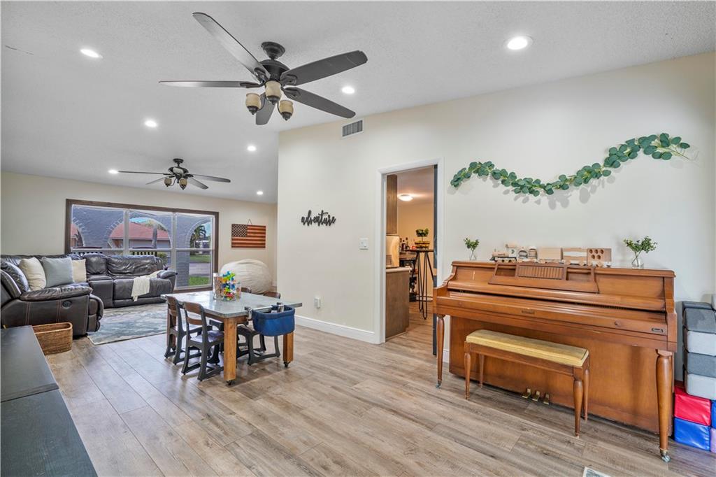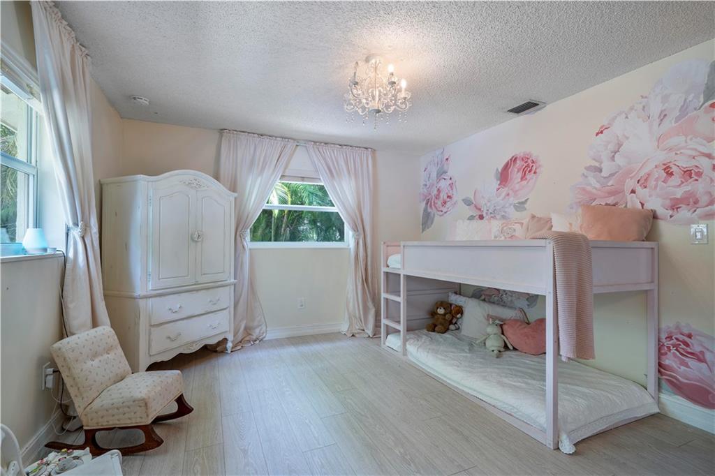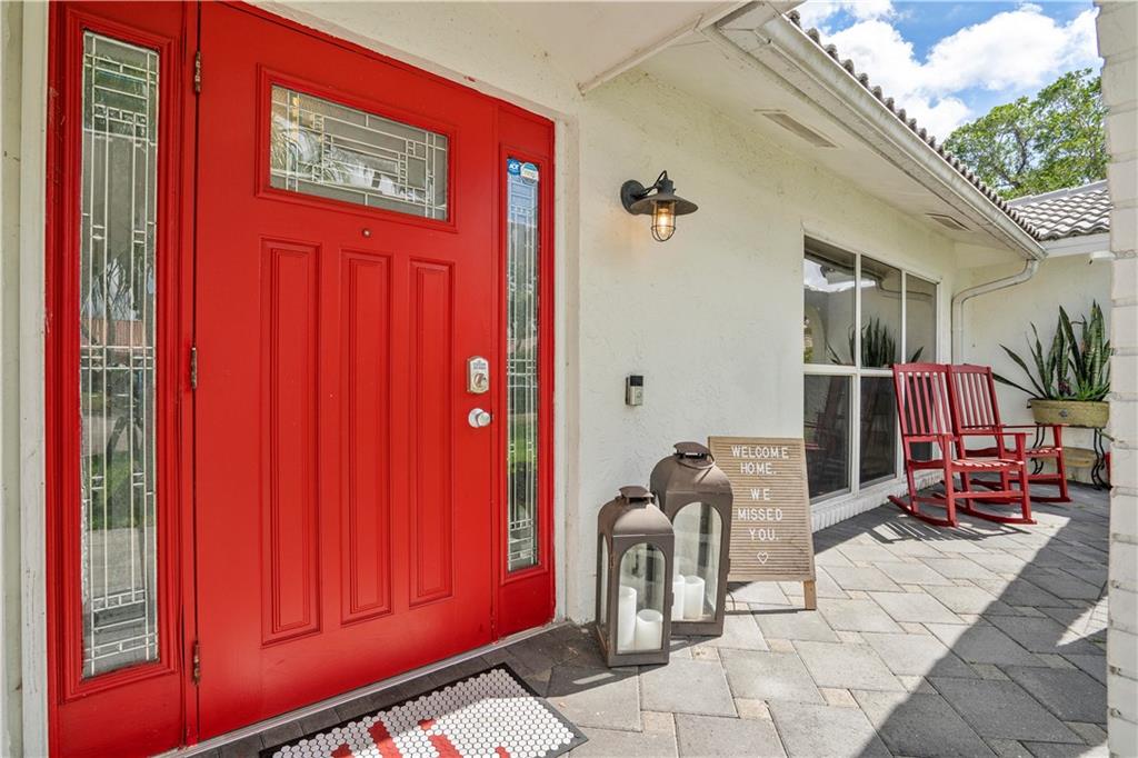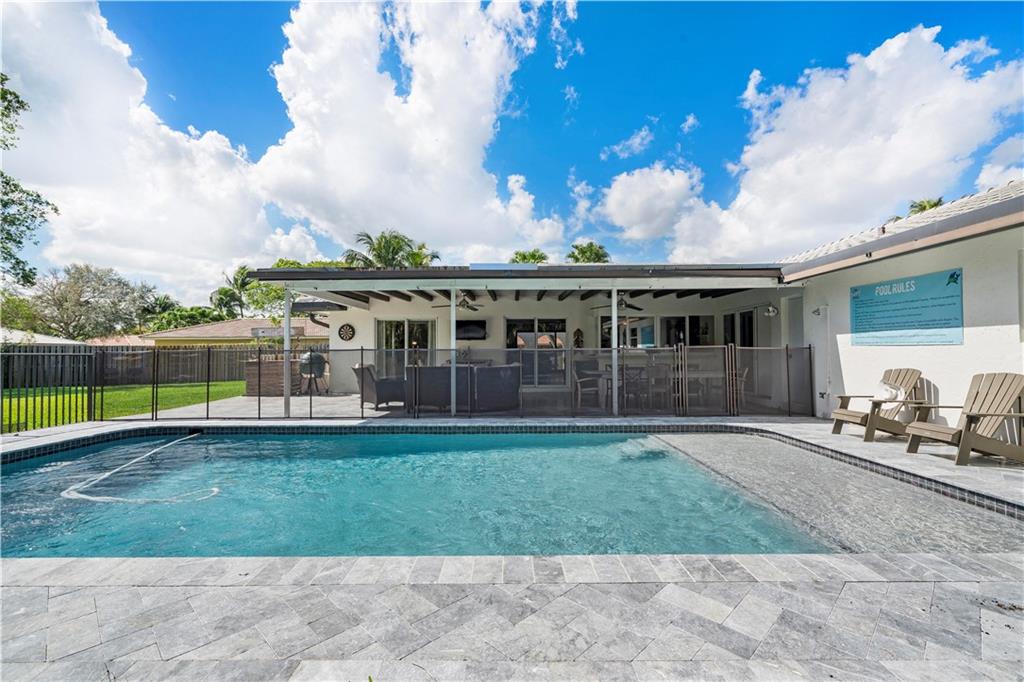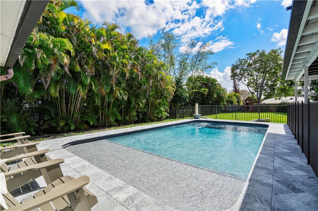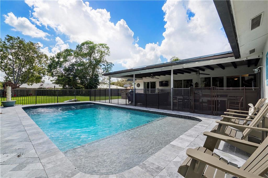 NO HOA! - great schools - cul-de-sac, turn-key 5 bedroom 3 full bath with a beautiful Southern Charm. This home is fully renovated with new flooring throughout, custom closets in all bedrooms, hurricane impact windows and doors throughout, 2015 ac unit, updated kitchen with wood cabinets, corian countertops with a pass through to the patio and stainless steel appliances, huge covered patio with a brand new heated salt water pool with sun shelf and expanded marble herringbone patterned deck, expanded 8 car paver driveway and front porch on nearly a half acre fully fenced and fully private lot! Use it for a wiffle ball field or any sport, a children's play area, etc... Storage shed, child pool gate, children's swing set and garage refrigerator are included in the sale. See Broker Remarks