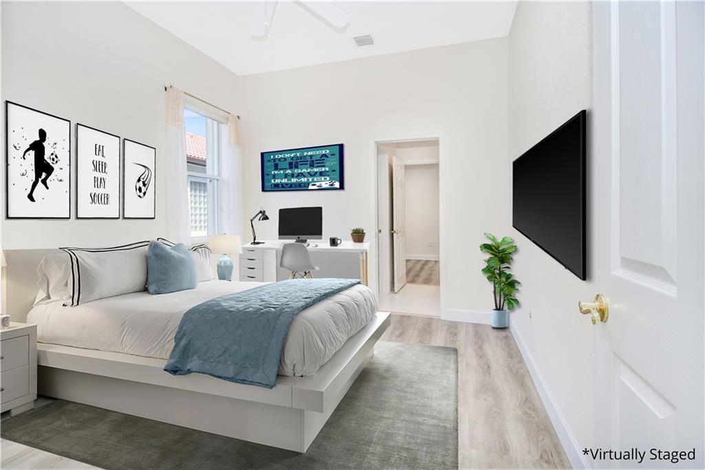 Enjoy privacy & breathtaking sunset views from this waterfront home bordering a peaceful preserve. This gated community home boasts an abundance of natural light, vaulted ceilings, a pool, and five walk-in closets! This 5/3 split floor plan Ruben model was converted to a 4/3 to create two huge master suites, perfect for multi-generational living, or it can be easily converted back to a 5/3. New flooring installed in all bedrooms 2019. New A/C system, & mini split A/C for the garage, installed 2015. Home comes with Accordion Shutters & whole house generator (requires servicing). Low HOA ($219/mo) includes cable, resort style pool, gym, clubhouse, tennis courts, basketball courts, volleyball courts, playground, & ADT Security. Furniture negotiable. Top Rated Schools!