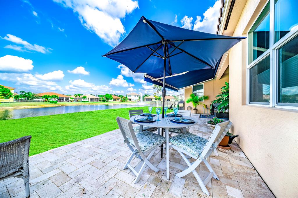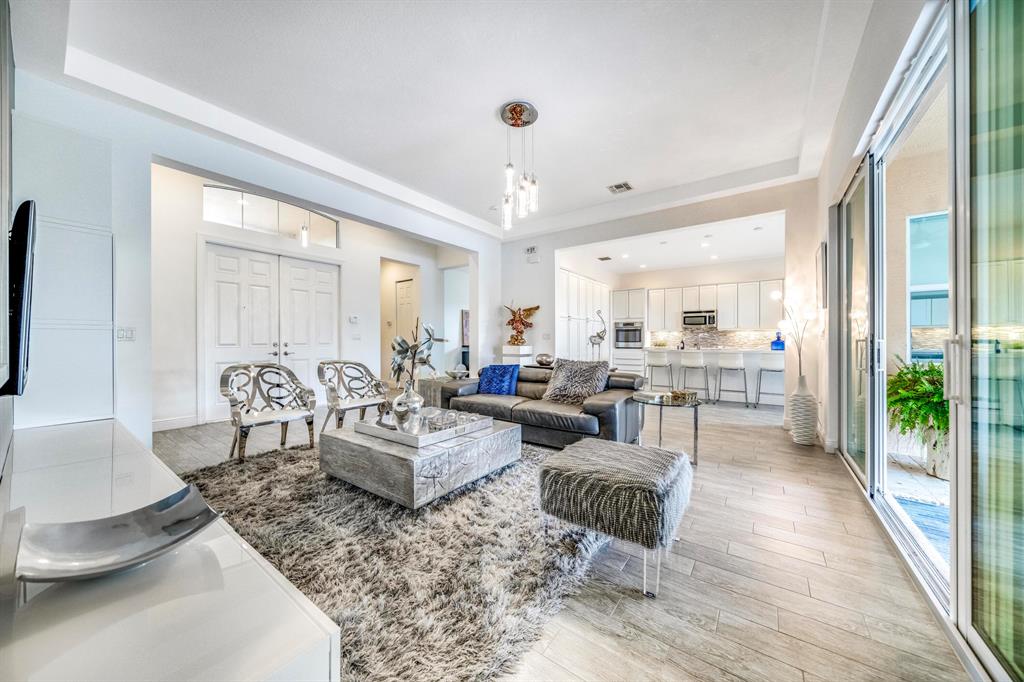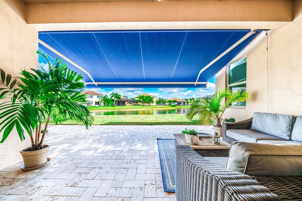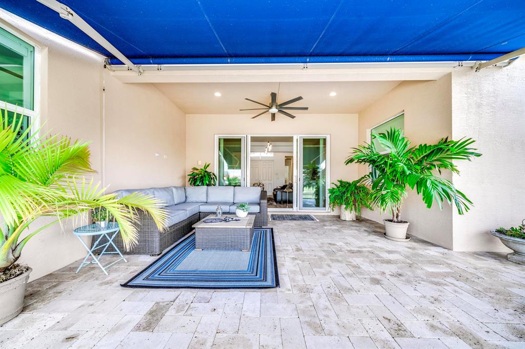 Do not miss this Gorgeous, 1 story 3/3/2 + Den, Cul de sac home located in Portosol. This open concept home looks like a model home. It is set up perfectly for entertaining with a large family room with its high ceiling, wood- porcelain tile floor and custom entertainment center, that flows right into the designer kitchen. Features include large island, white cabinets, stainless steel appliances, Quartz countertops, tile backsplash, next formal dining room. Master Bedroom features a on suite bathroom with dual sinks, Quartz Countertop, updated tiled walk-in shower, and a large soaking tub. The back patio includes travertine pavers, automatic retractable awning with motion sensors. Do not miss out on this spectacular home boasting, impact windows and even a water view and so much more!!