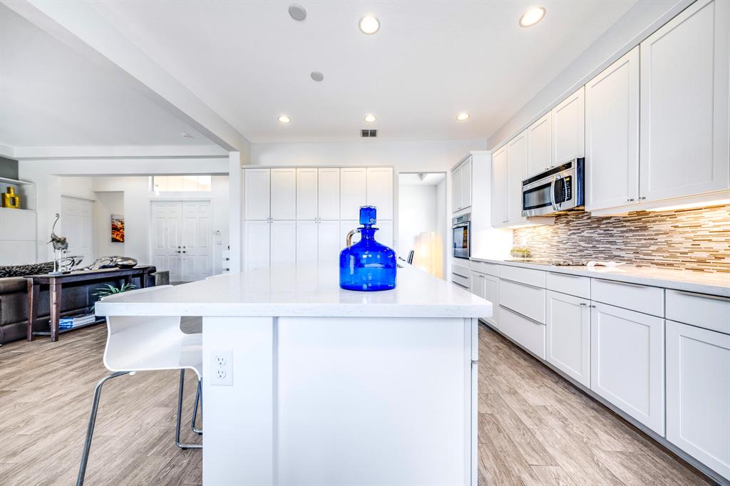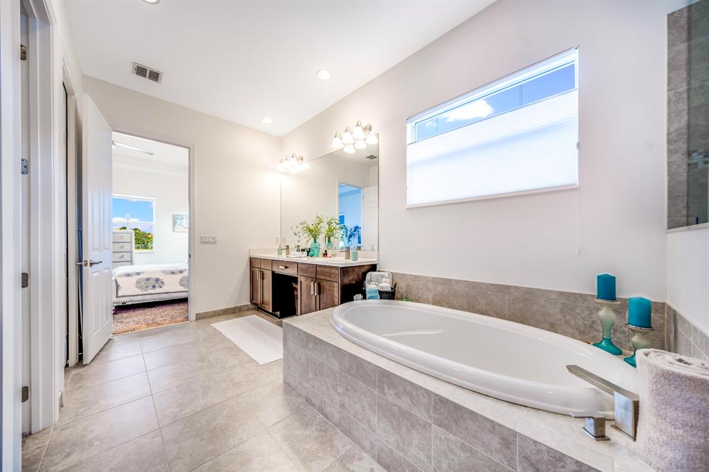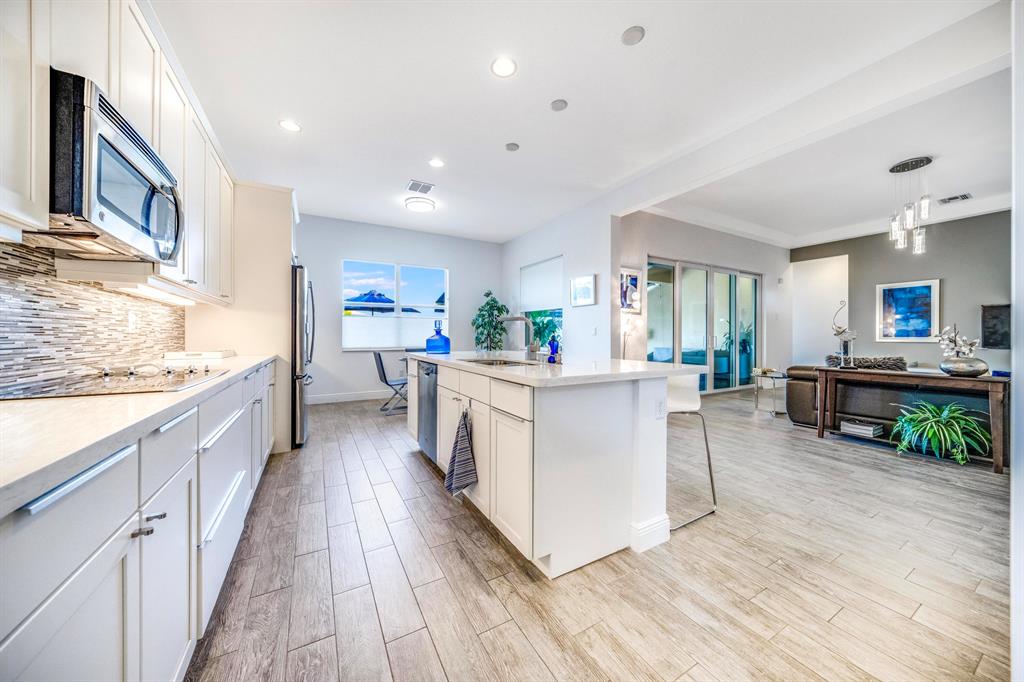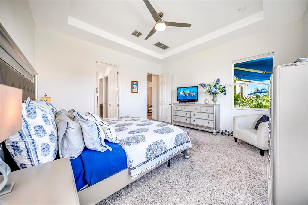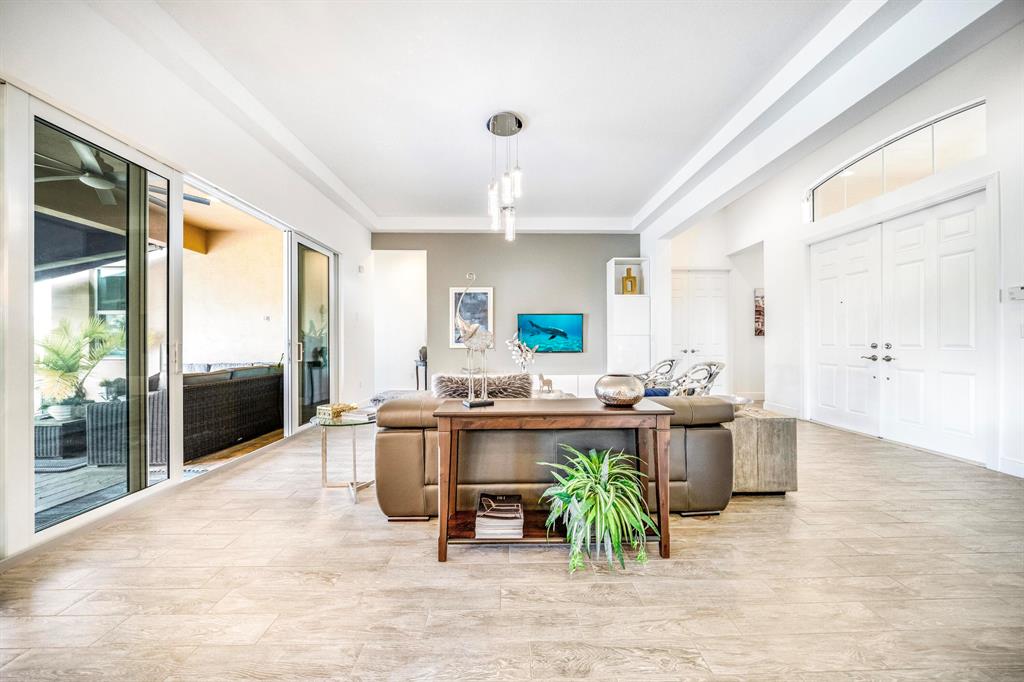 Do not miss this Gorgeous, 1 story 3/3/2 + Den, Cul de sac home located in Portosol. This open concept home looks like a model home. It is set up perfectly for entertaining with a large family room with its high ceiling, wood- porcelain tile floor and custom entertainment center, that flows right into the designer kitchen. Features include large island, white cabinets, stainless steel appliances, Quartz countertops, tile backsplash, next formal dining room. Master Bedroom features a on suite bathroom with dual sinks, Quartz Countertop, updated tiled walk-in shower, and a large soaking tub. The back patio includes travertine pavers, automatic retractable awning with motion sensors. Do not miss out on this spectacular home boasting, impact windows and even a water view and so much more!!