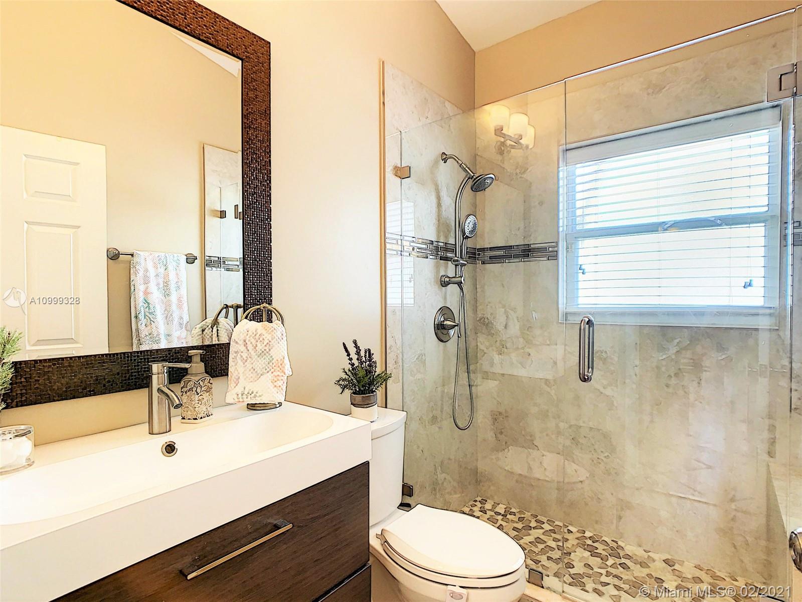 Charming yet spacious & elegant house in Grand Palms! Surrounded by peak vegetation, luxurious landscaping, walking paths, lakes, a canal and a Golf Course! House features ROOF 2013, NEW AC 2020, TITAN WATERHEATER, NEST, UPDATED KITCHEN & BATHROOMS WITH GRANITE COUNTERTOPS, WOOD CABINETS & STAINLESS STEEL MAYTAG APPLIANCES. EXTRA STORAGE IN MASTER BEDROOM: WALK IN CLOSET + 2 WALL TO WALL CLOSETS. ALSO FIND A BUILT IN CLOSET IN GARAGE! OVERSIZED DRIVEWAY; SPACE FOR 6 CARS! Enjoy Grand Palms Golf Resort lifestyle: Community offers gated entry, 24 hr security, beautiful palm lined streets, green spaces, children playground, biking/jogging paths. HOA includes cable, alarm, lawn service, exterior painting and pressure cleaning. Shopping and restaurants just outside community. Great location!
