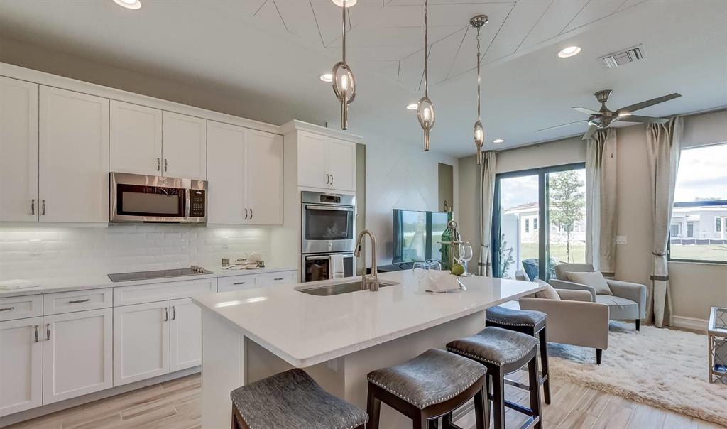Quick Move-in Professionally Decorated and Furnished Model - LARGE 2 STORY LUXURY TOWNHOME IN BOCA RATON, 3 BED, 2.5 BATH, 1 CAR GARAGE, 2 CAR DRIVEWAY, APPROX 1663 SF. Covered entry way into your spacious foyer with storage closet. Gourmet Kitchen with spacious island, upgraded cabinets, quartz countertops, double oven and appliances. Great room with access to patio ideal for outdoor living. Upgraded flooring downstairs with wood like tile 6 x 26. Owner's suite with walk-in closet and owner's spa bath. Spacious secondary bedrooms with roomy closets. Convenient second floor laundry room to keep your home tidy. Amenities include clubhouse, pool, spa, fitness center, tot lot & walking paths. Durable, storm ready CBS construction with Hurricane Impact Windows. All dimensions are approximate.