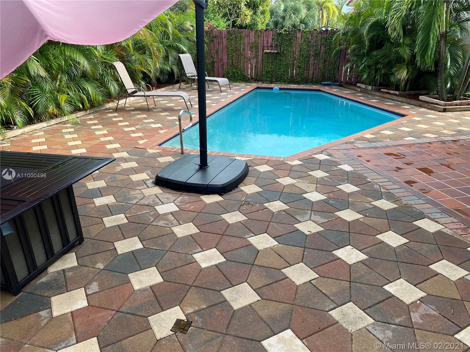 This is a beautiful and bright house. Located in the heart of Pembroke Pines, just steps from malls, shops, entertainment centers, and restaurants. Very private patio with its own pool. The current owners have made some improvements to their home that make it very cozy. The property has 3 bedrooms because one room was made in one part of the garage, (+132 sqft )leaving space in the other for the washing machine, dryer, and storage. You must see it.