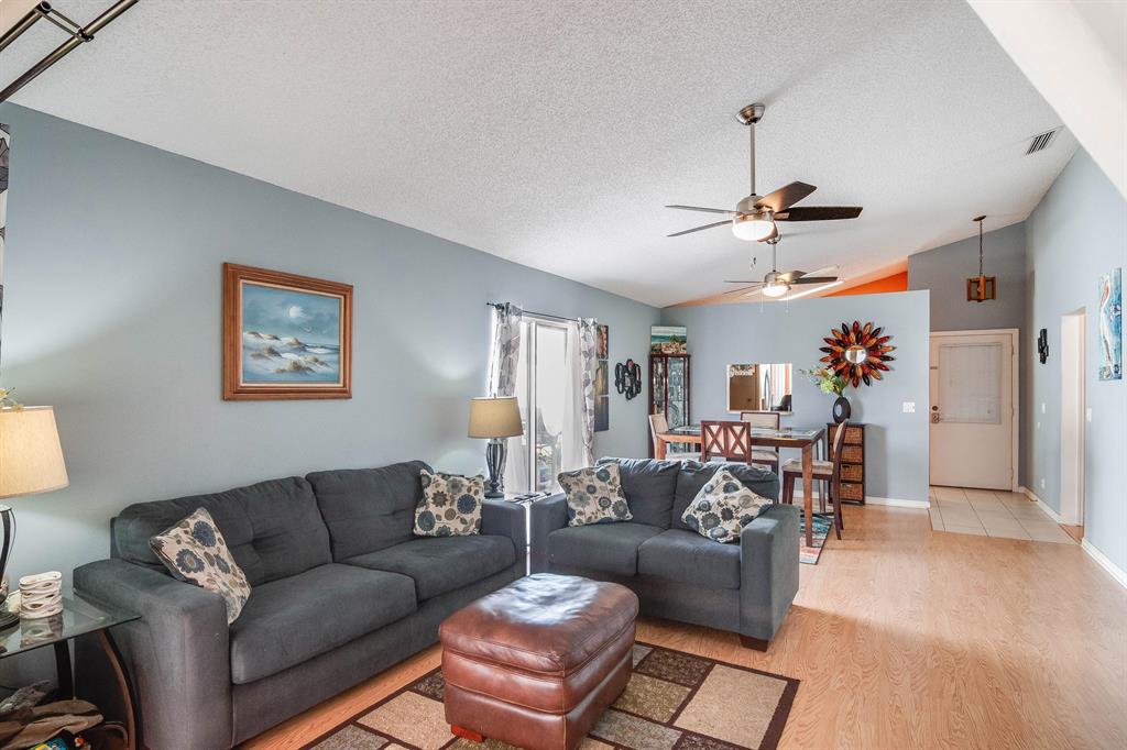 This spectacular single story home has a one car garage, huge master bedroom, wood flooring, enclosed patio with tile floor and outside area with brick pavers, low HOA dues, and low taxes. The roof, a/c , air handler and bathrooms have been updated. There are numerous beautiful community parks, great schools, and shopping nearby. Located with close proximity to I95 and the Florida Turnpike, travel and commute is a breeze.