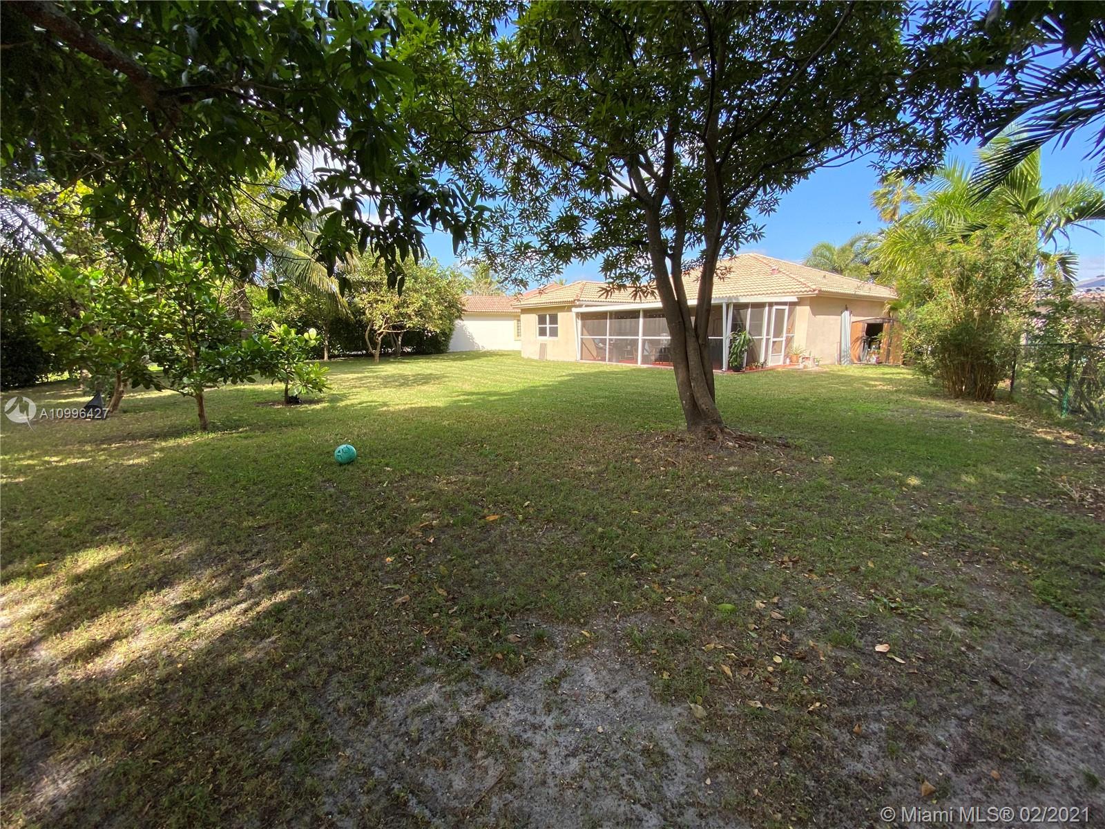Beautiful 3BR 2BA home located on an oversized corner lot in a cul-de-sac lot, in the gated community of Villages of Renaissance. Low HOA ($86 per month). Upgrades include hurricane impact windows throughout, wood floors in bedrooms and Calacatta tile 32 x 32 in living spaces, a large covered screened patio, stainless steel appliances and automatic garage door. There are several fruit trees on the property including 1 avocado trees, 3 mango trees, 2 guava trees, 1 custard apple and approximate space of 10.000 feet to grow much more.