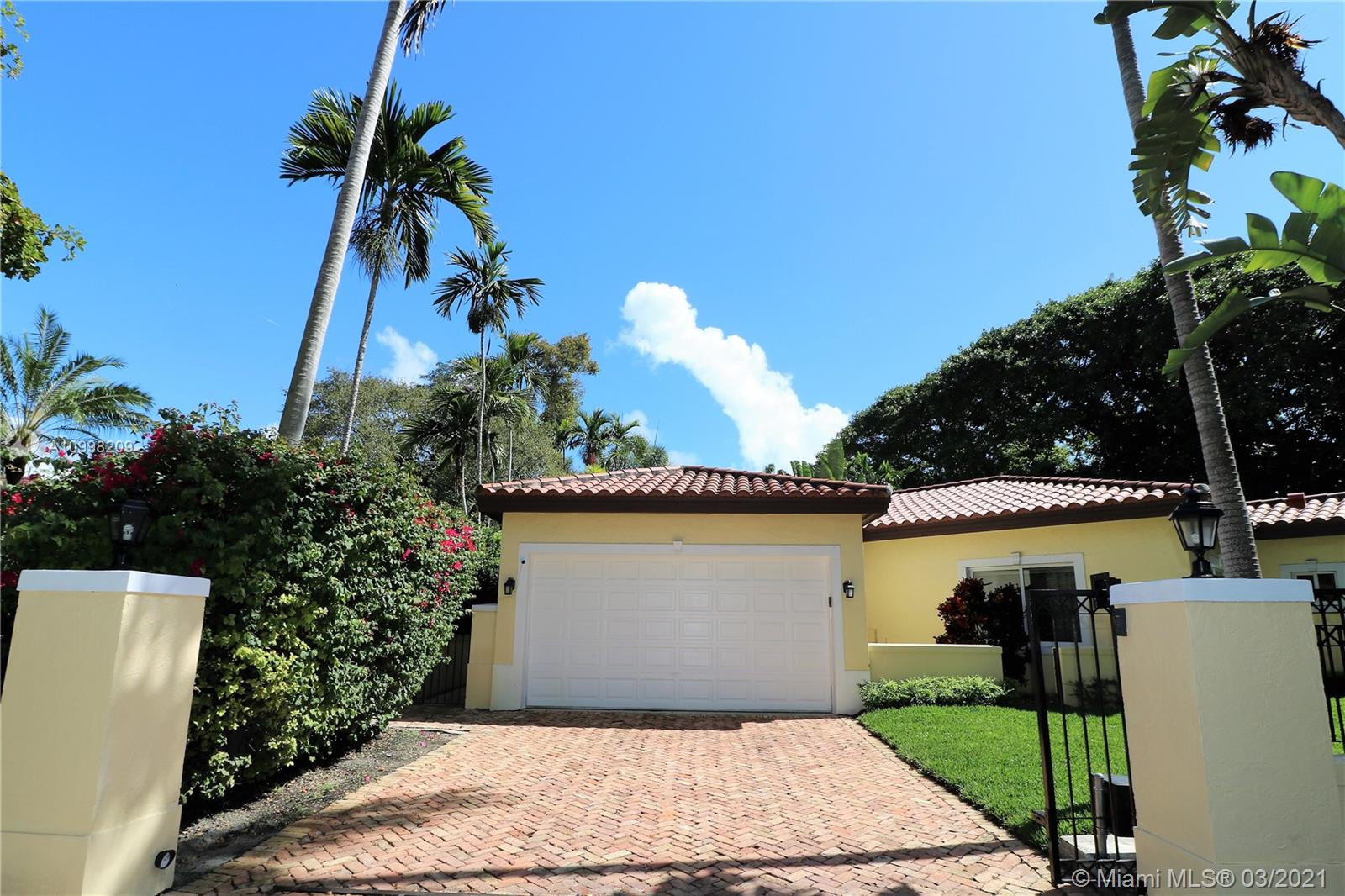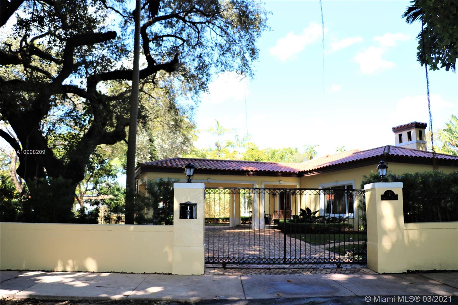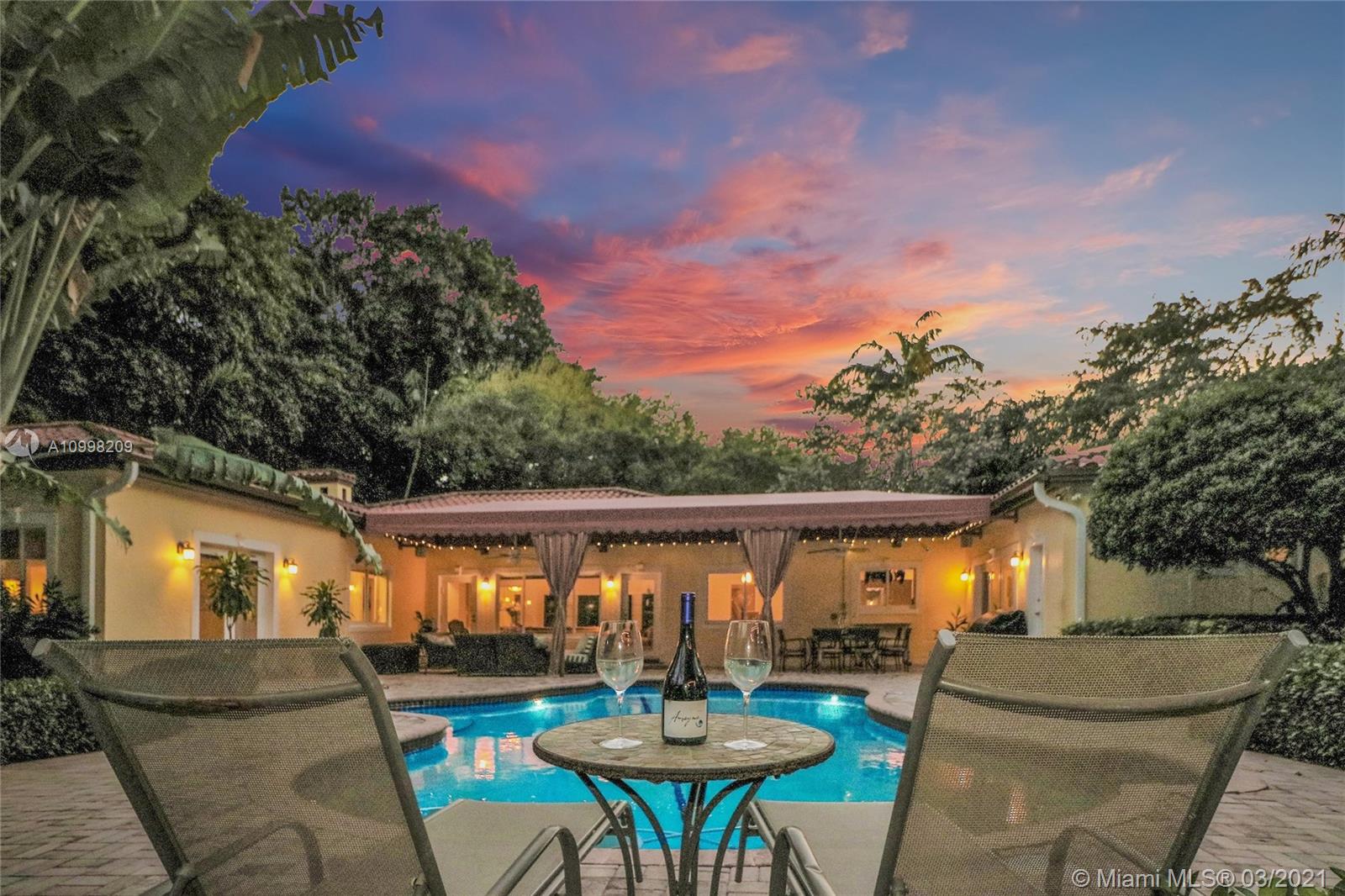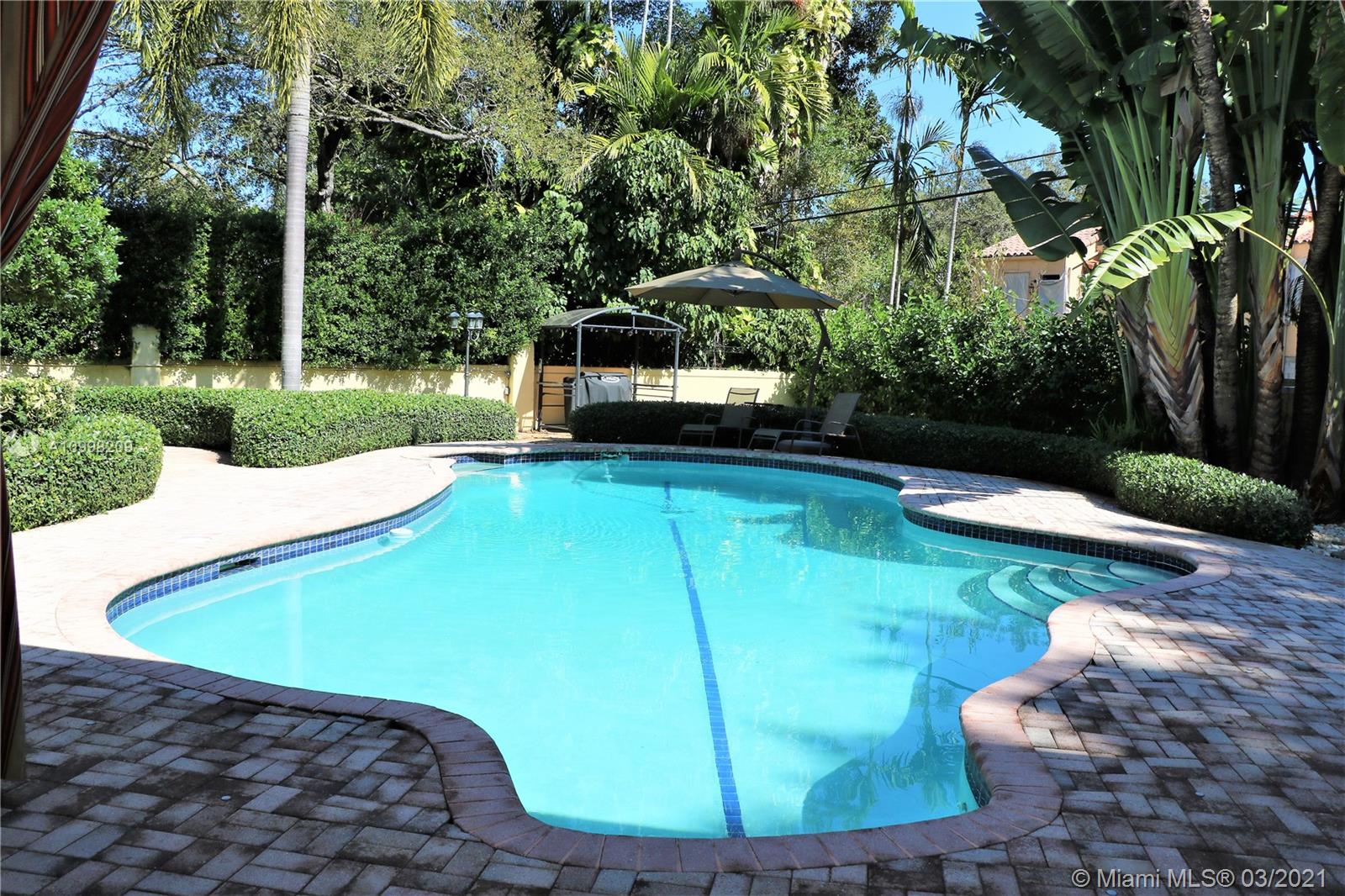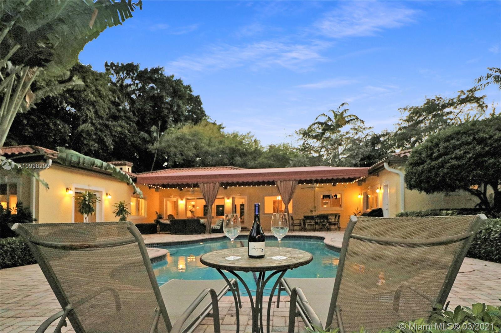 Immaculate 4 bedroom, 5.5 bath residence in the Golden Triangle section of Coral Gables known for its family friendly lifestyle, top rated schools, businesses, and entertainment venues. This retreat boasts over 5000 sq. feet of perfectly flowing living space. Impact windows/doors bathe the indoors with light and offer many views of the wonderful private gardens of this fully gated and enclosed property. This home is made for entertaining: billiards room, bar, laundry room & a 2-car air conditioned garage perfect for storage and gym. The private backyard has an impressive awning for all day shade, and a refreshing pool complete a perfect combination for outdoor parties. Majestic trees and a wonderful centerpiece courtyard make this meticulously maintained home a magical find in the gables.