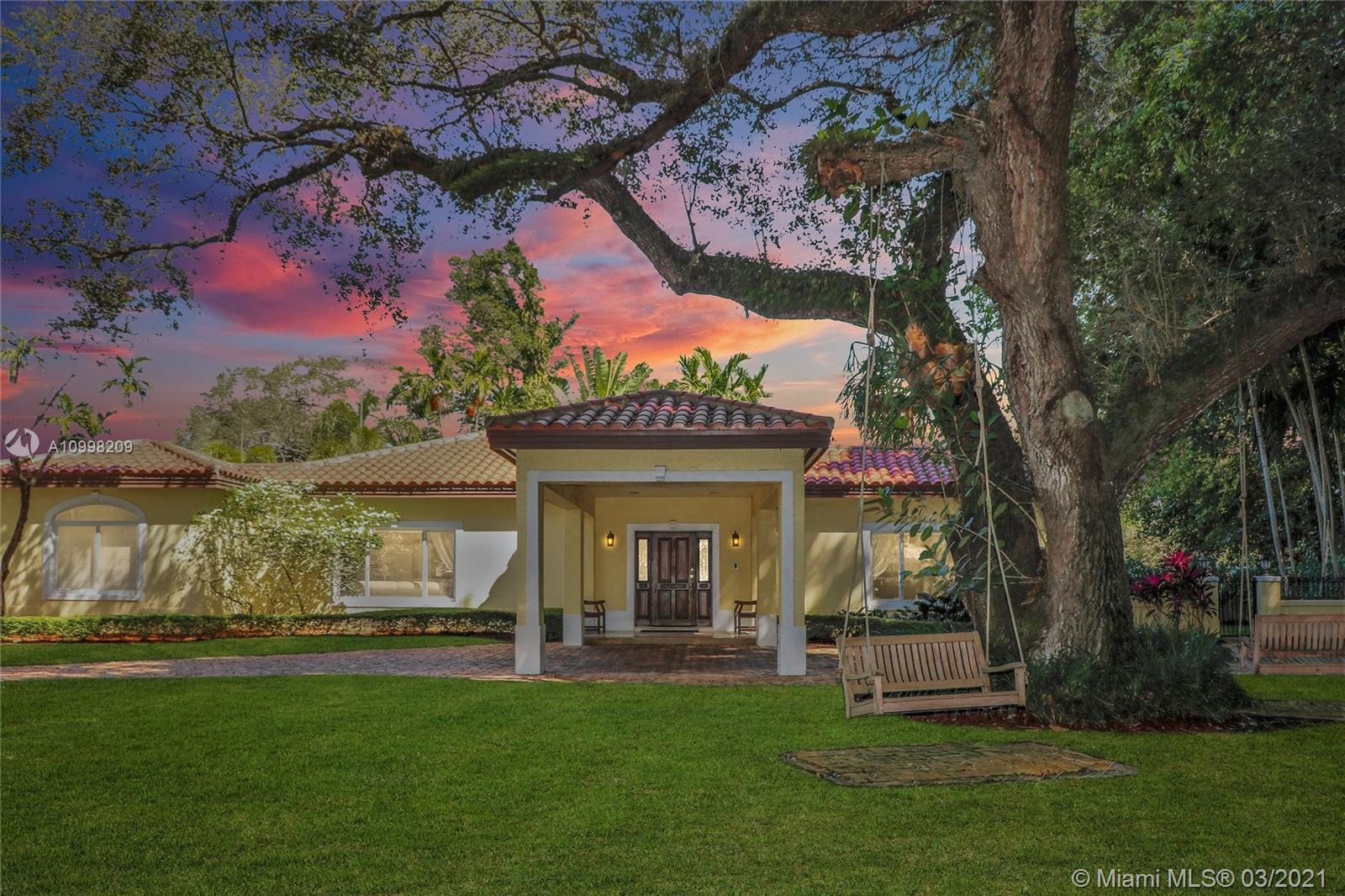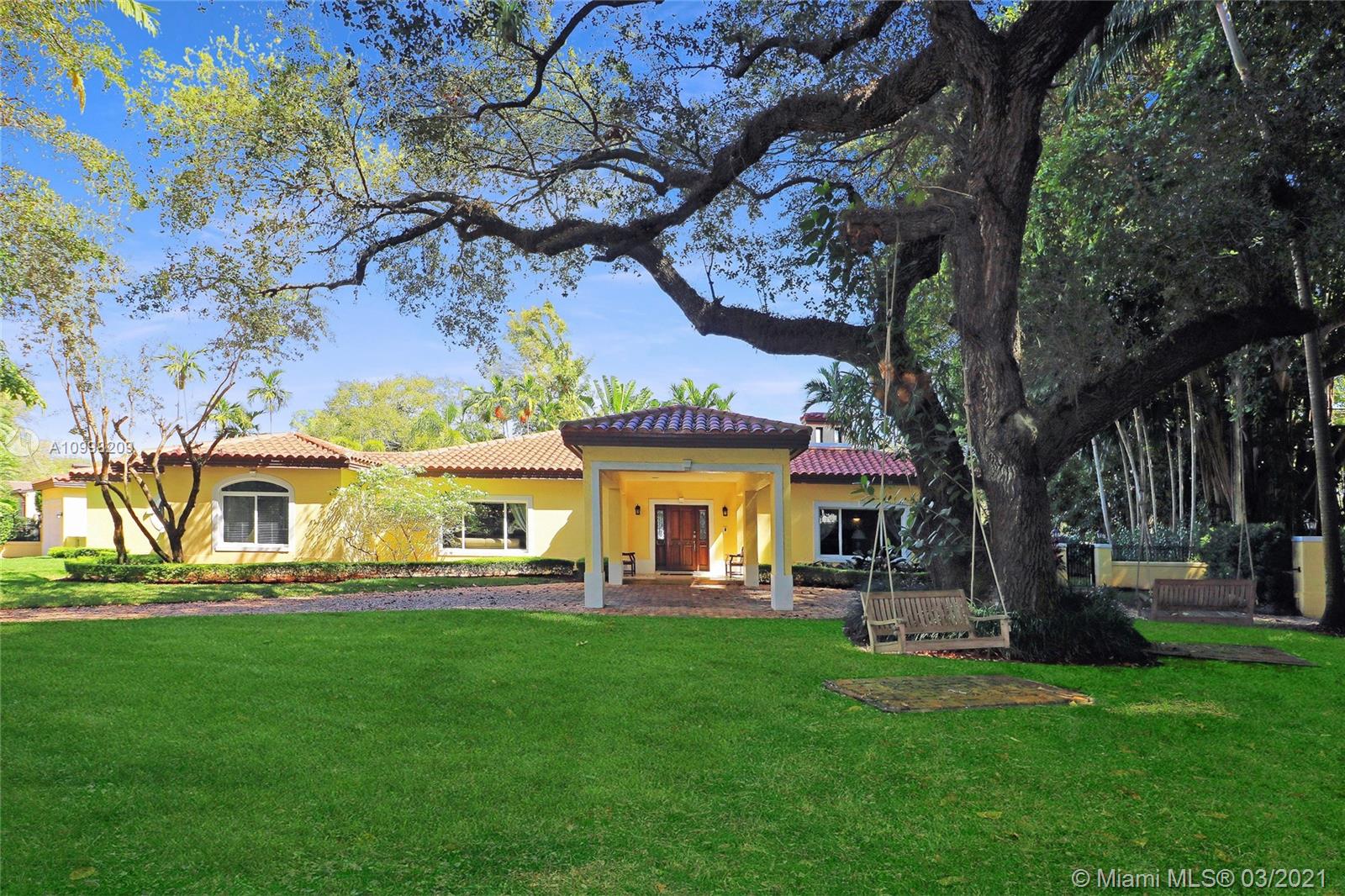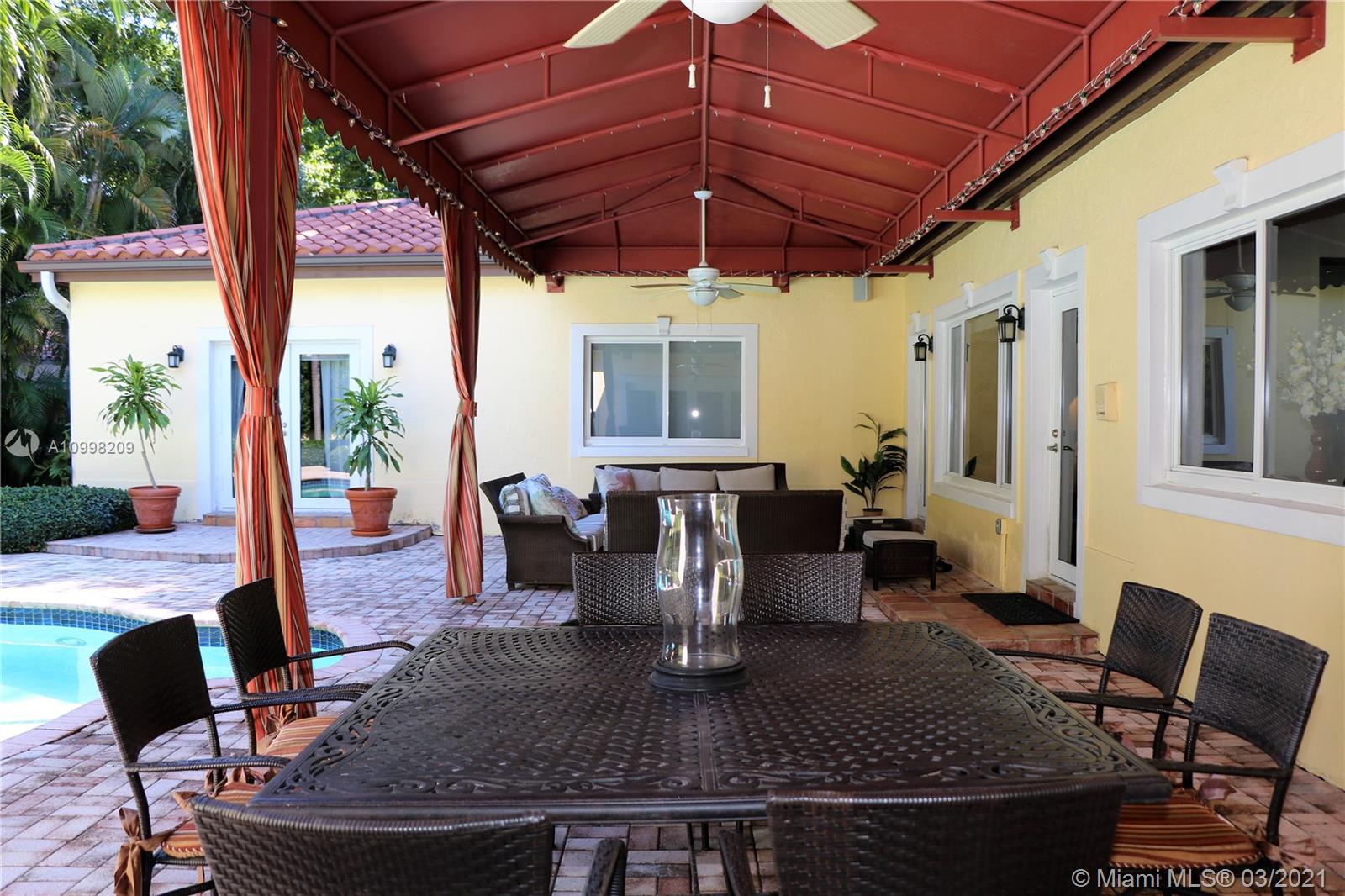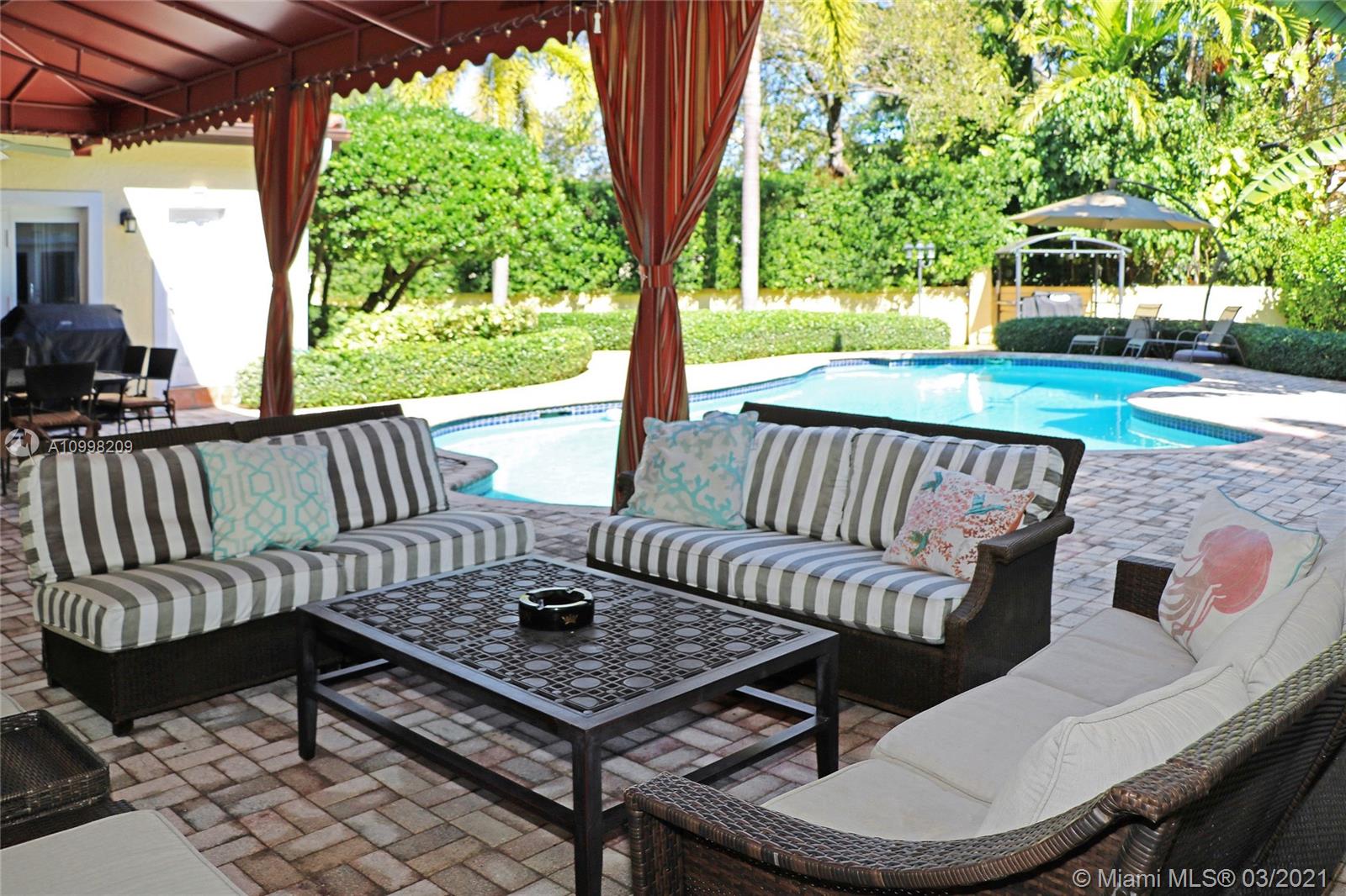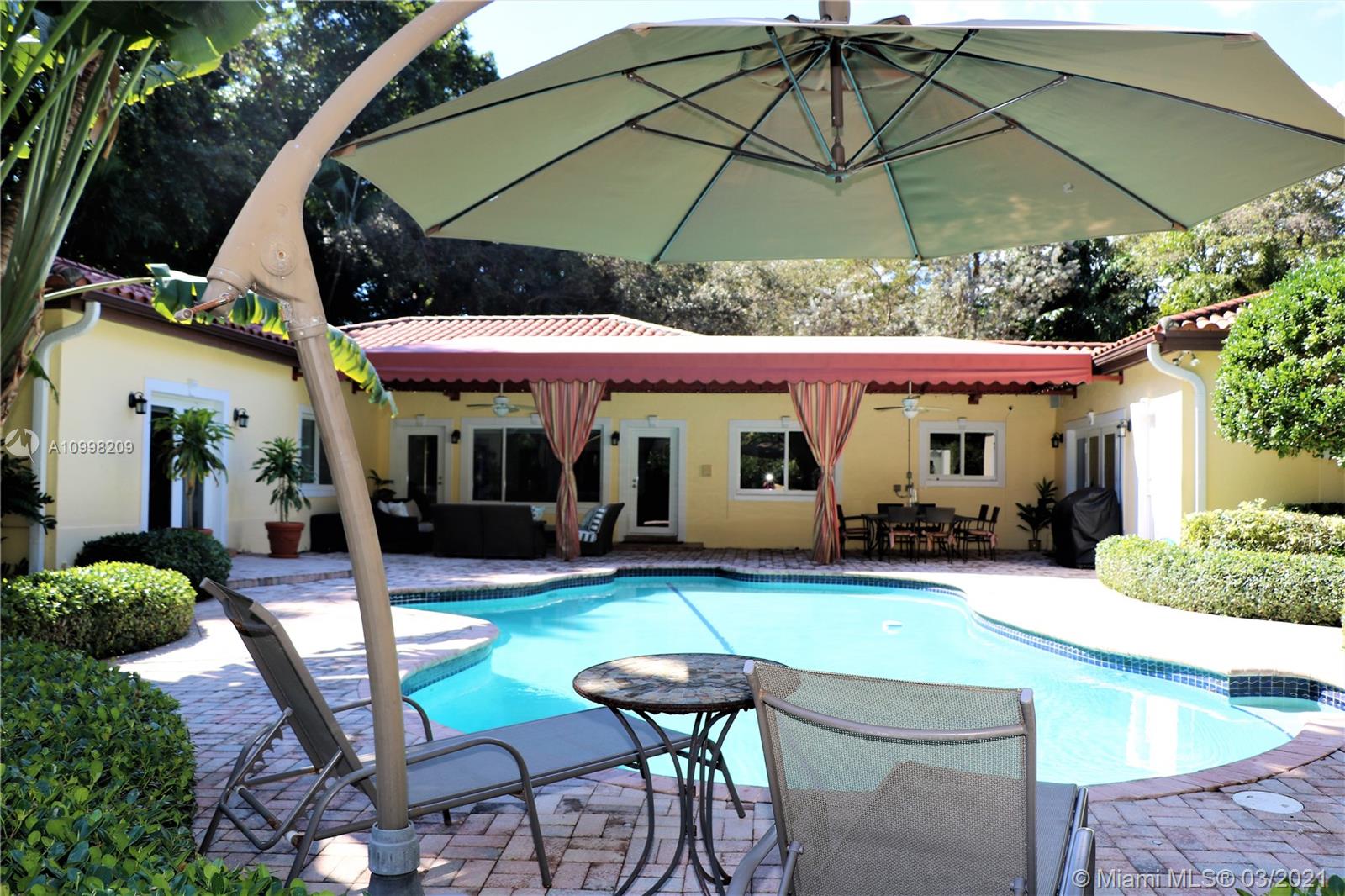 Immaculate 4 bedroom, 5.5 bath residence in the Golden Triangle section of Coral Gables known for its family friendly lifestyle, top rated schools, businesses, and entertainment venues. This retreat boasts over 5000 sq. feet of perfectly flowing living space. Impact windows/doors bathe the indoors with light and offer many views of the wonderful private gardens of this fully gated and enclosed property. This home is made for entertaining: billiards room, bar, laundry room & a 2-car air conditioned garage perfect for storage and gym. The private backyard has an impressive awning for all day shade, and a refreshing pool complete a perfect combination for outdoor parties. Majestic trees and a wonderful centerpiece courtyard make this meticulously maintained home a magical find in the gables.
