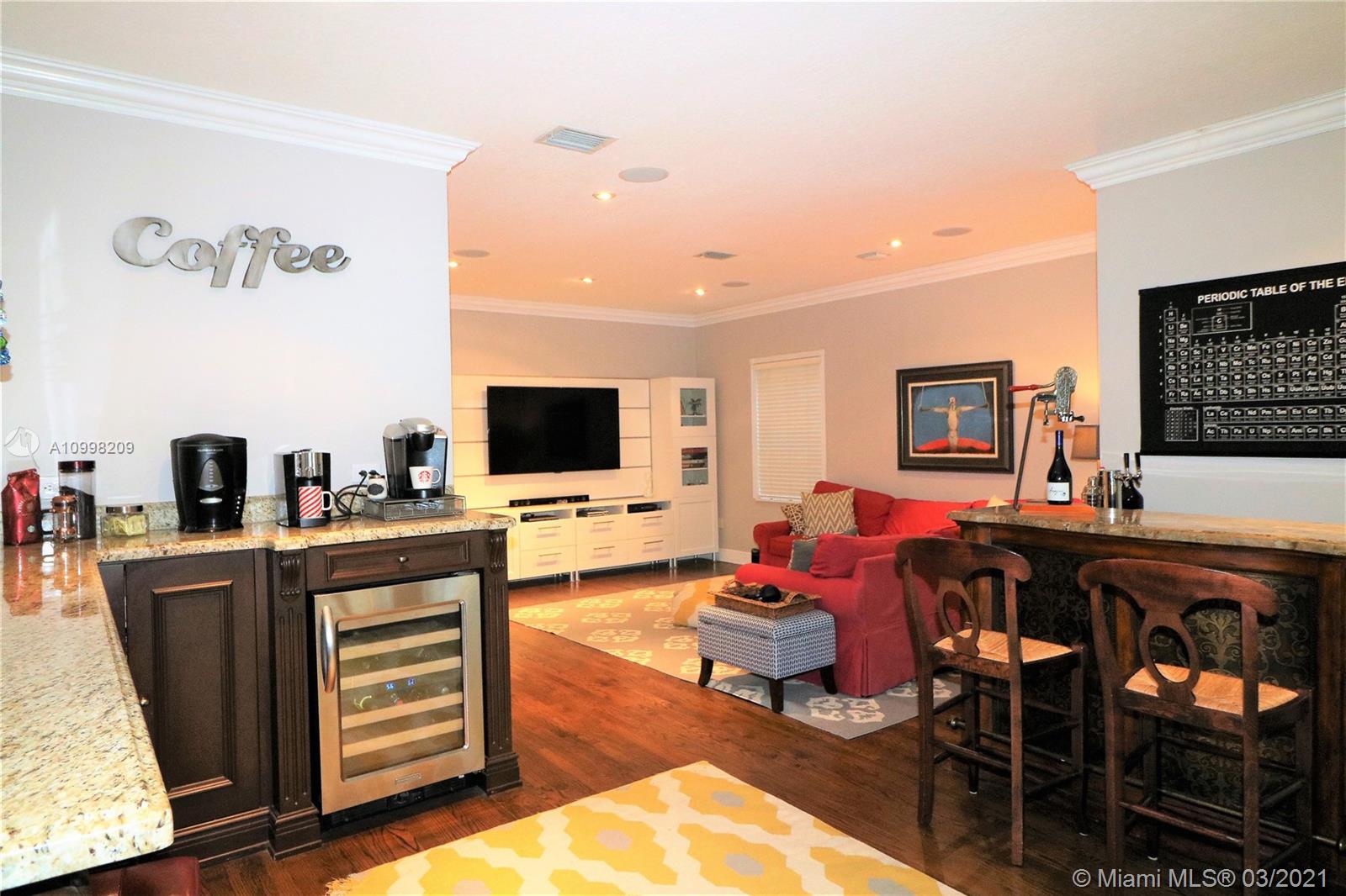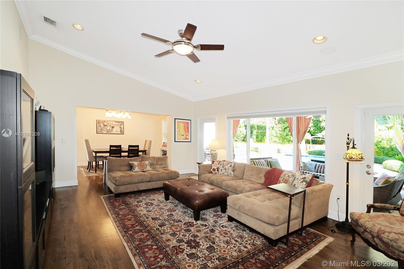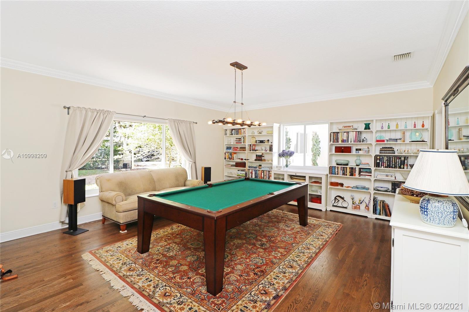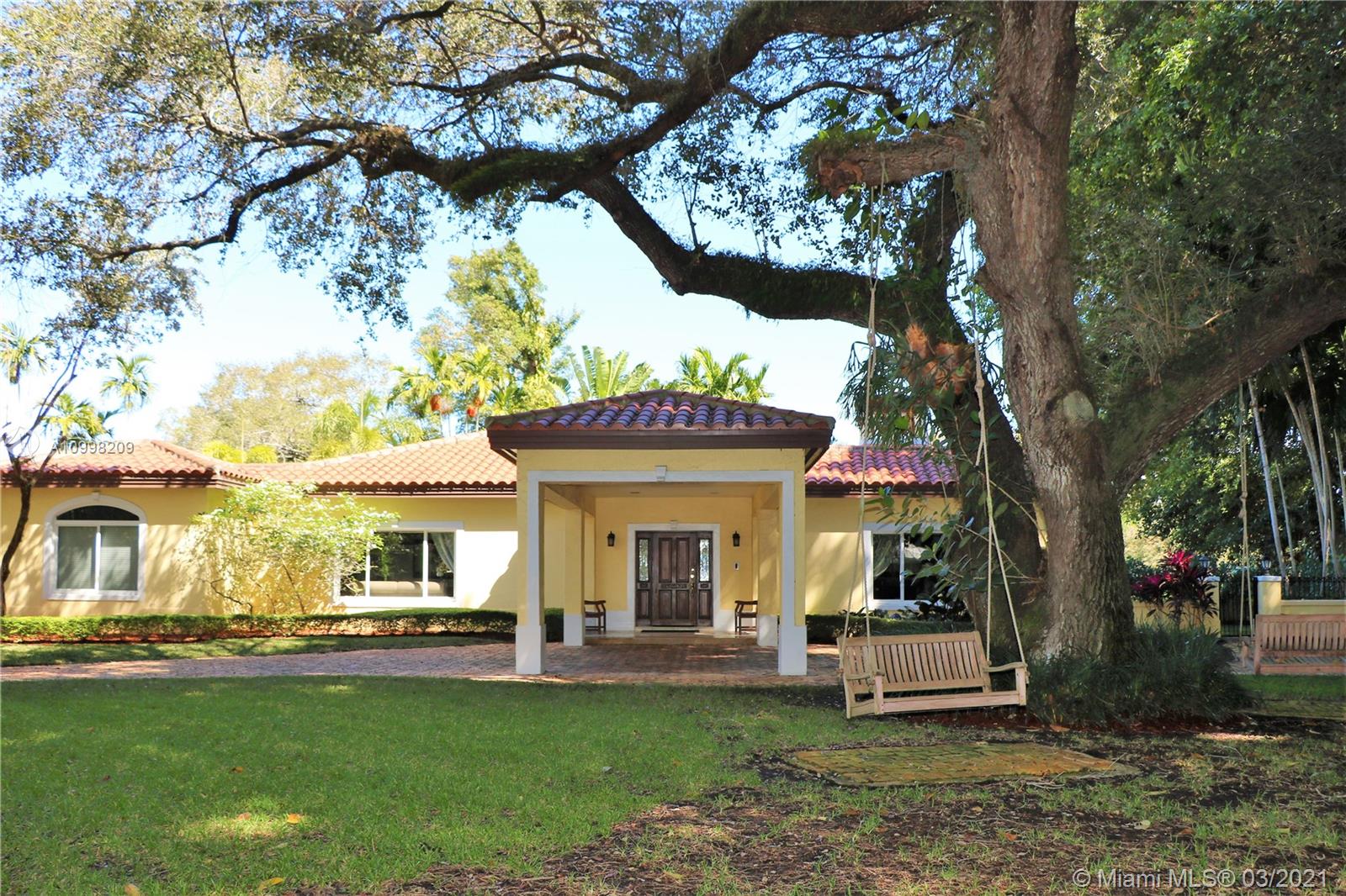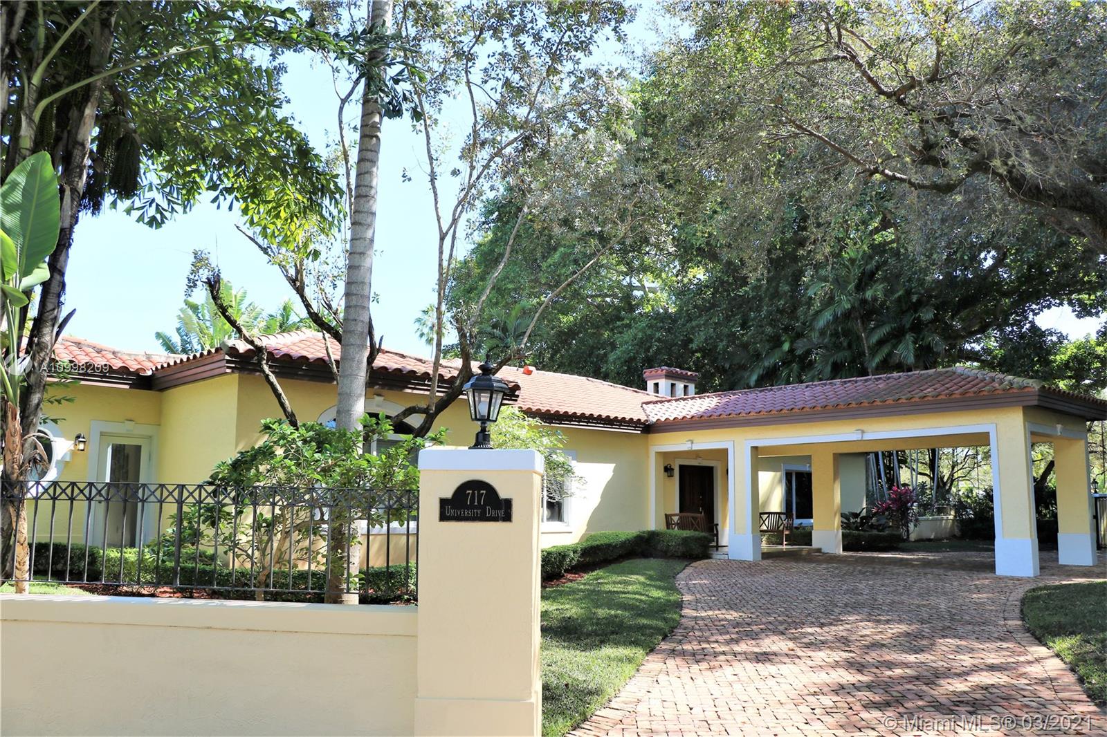 Immaculate 4 bedroom, 5.5 bath residence in the Golden Triangle section of Coral Gables known for its family friendly lifestyle, top rated schools, businesses, and entertainment venues. This retreat boasts over 5000 sq. feet of perfectly flowing living space. Impact windows/doors bathe the indoors with light and offer many views of the wonderful private gardens of this fully gated and enclosed property. This home is made for entertaining: billiards room, bar, laundry room & a 2-car air conditioned garage perfect for storage and gym. The private backyard has an impressive awning for all day shade, and a refreshing pool complete a perfect combination for outdoor parties. Majestic trees and a wonderful centerpiece courtyard make this meticulously maintained home a magical find in the gables.